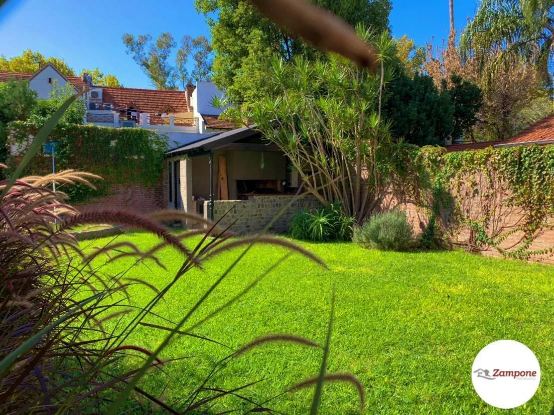 House on a plot of over 600 m², with covered garage for 3 cars and space for 1 more car outdoors. Ground floor includes an entry hall with a guest toilet, living-dining room with access to the garden, a lounge/office, and a full kitchen. The garden has a pool, grill and a covered quincho with a bar. Master suite has a double walk-in dressing area and garden views. Upstairs has a distributor hall, a playroom, 3 bedrooms sharing 2 full bathrooms, and an additional room that can be used as a 4th be