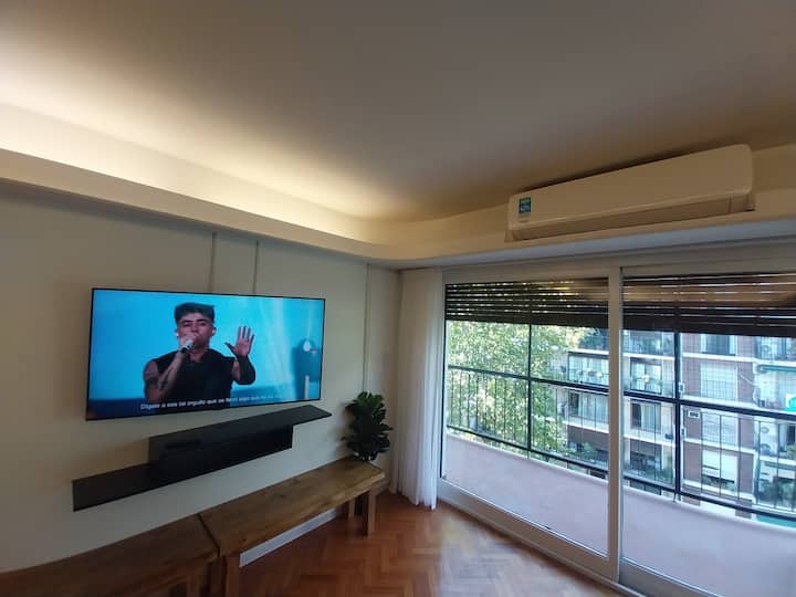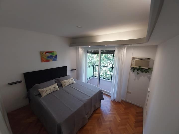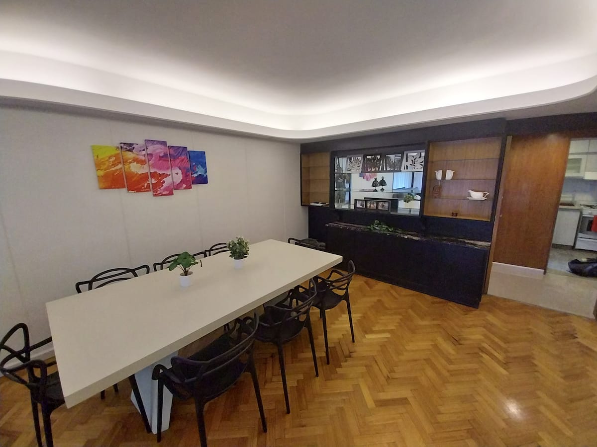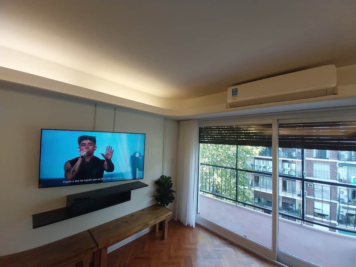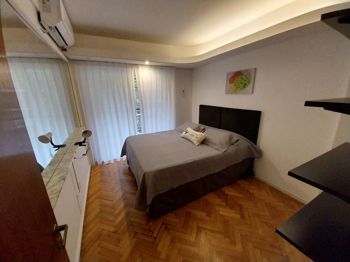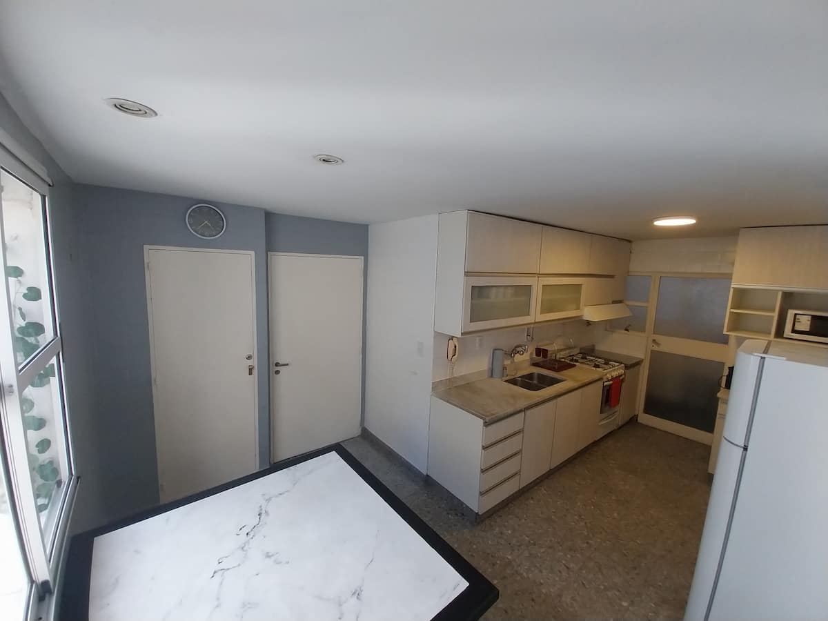 Remodelled apartment of 135 m² on Av. Santa Fe in Palermo, high floor with a balcony. It has 5 bedrooms with closets, 3 bathrooms, a large gas kitchen, and a living-dining room. The unit includes 4 air-conditioning units and central heating.