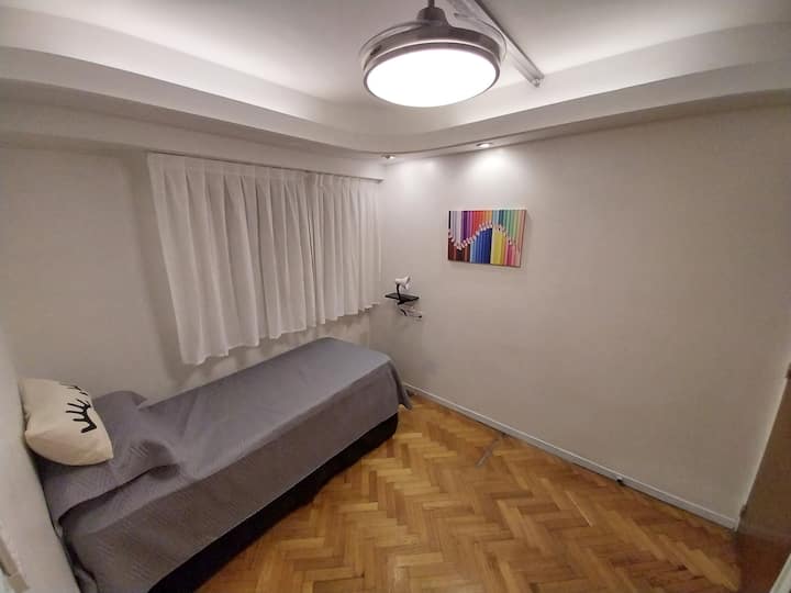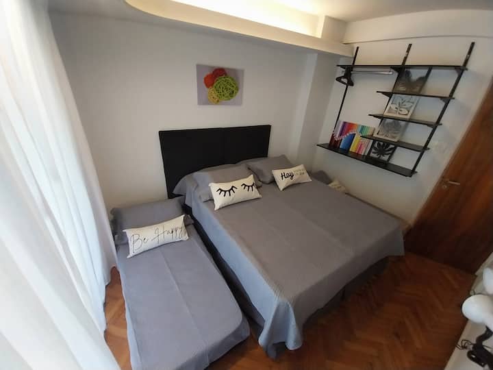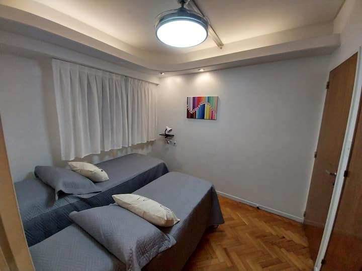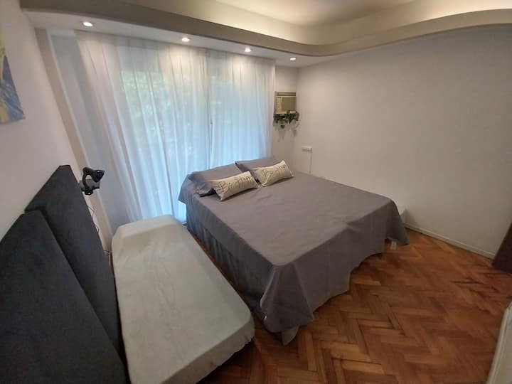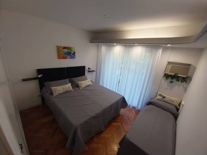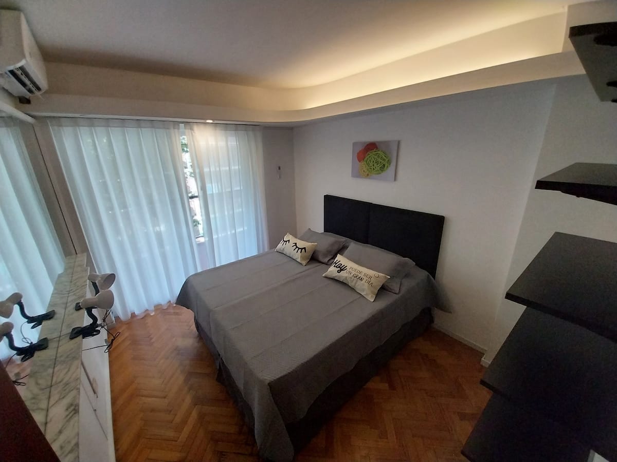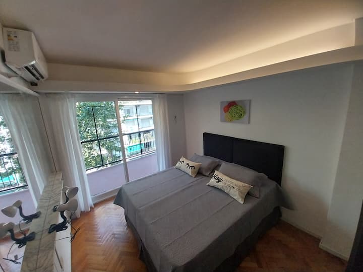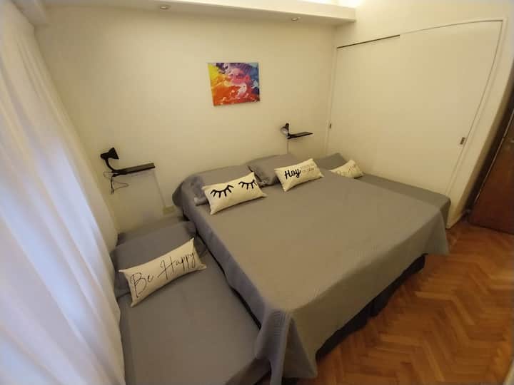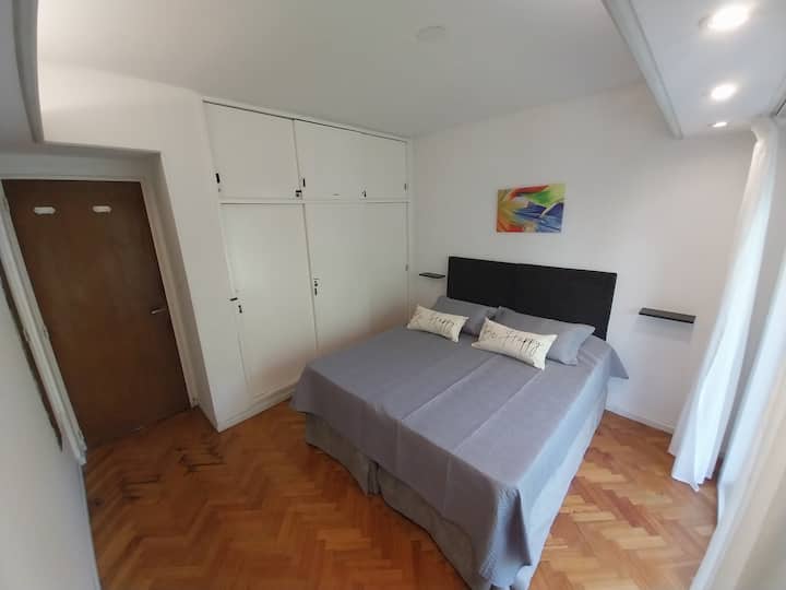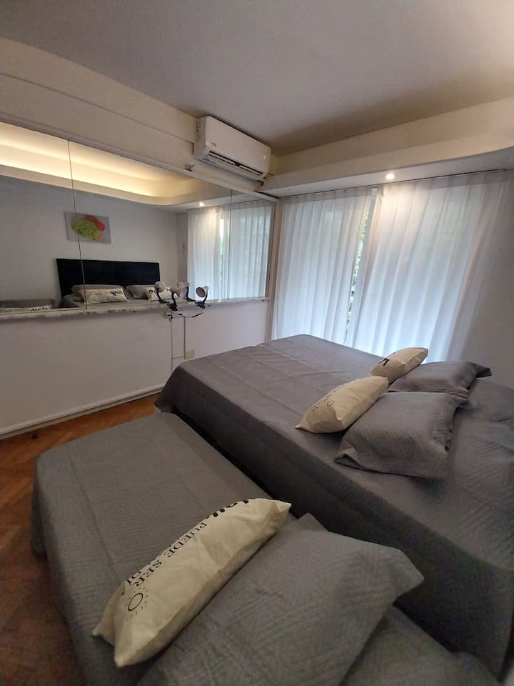 Remodelled apartment of 135 m² on Av. Santa Fe in Palermo, high floor with a balcony. It has 5 bedrooms with closets, 3 bathrooms, a large gas kitchen, and a living-dining room. The unit includes 4 air-conditioning units and central heating.