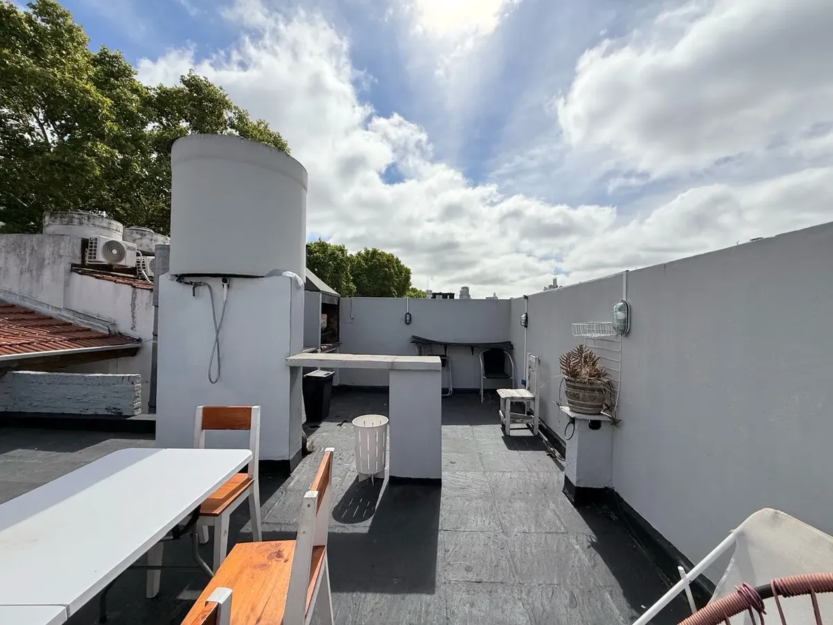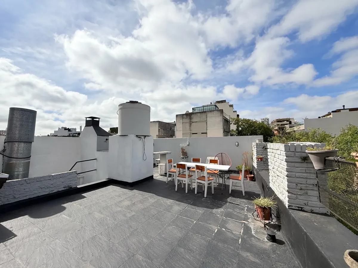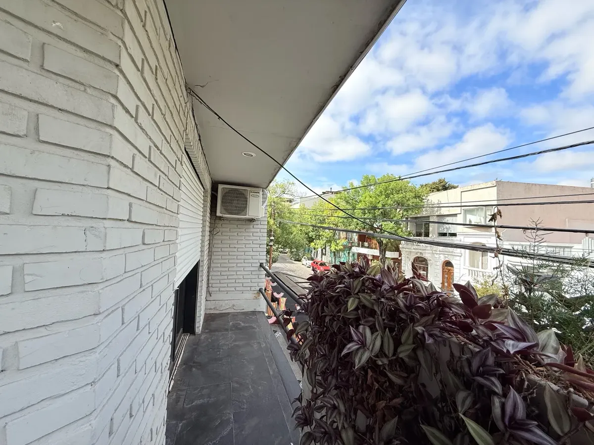 Corner house in Palermo for commercial or professional use. Approx. 200 m² total across two floors, with a small reception area, a large living-dining room with an integrated kitchen and access to a continuous balcony on the ground floor. Four bedrooms that can be configured as divisions and two full bathrooms. On the upper floor there is a private-access terrace with a grill and an additional bedroom with a vanity.
