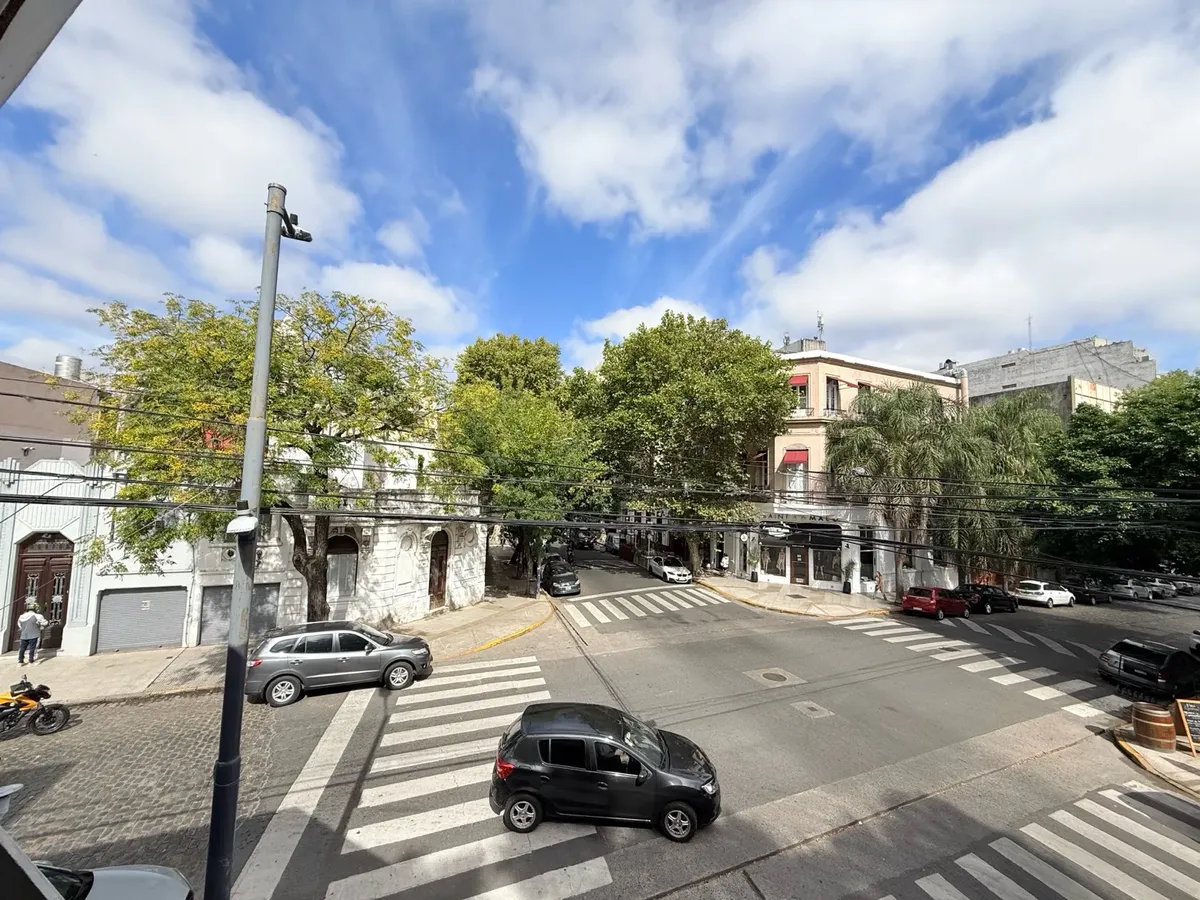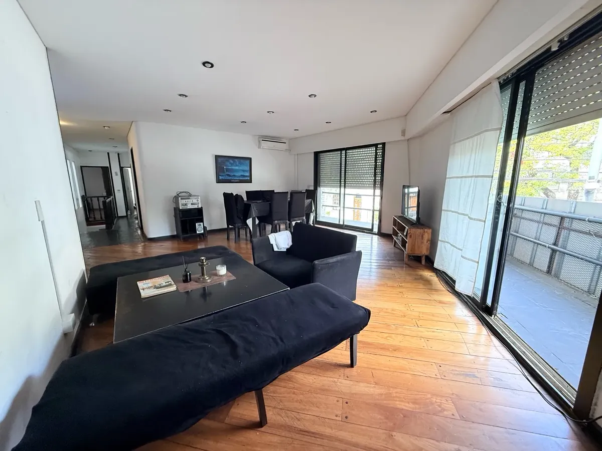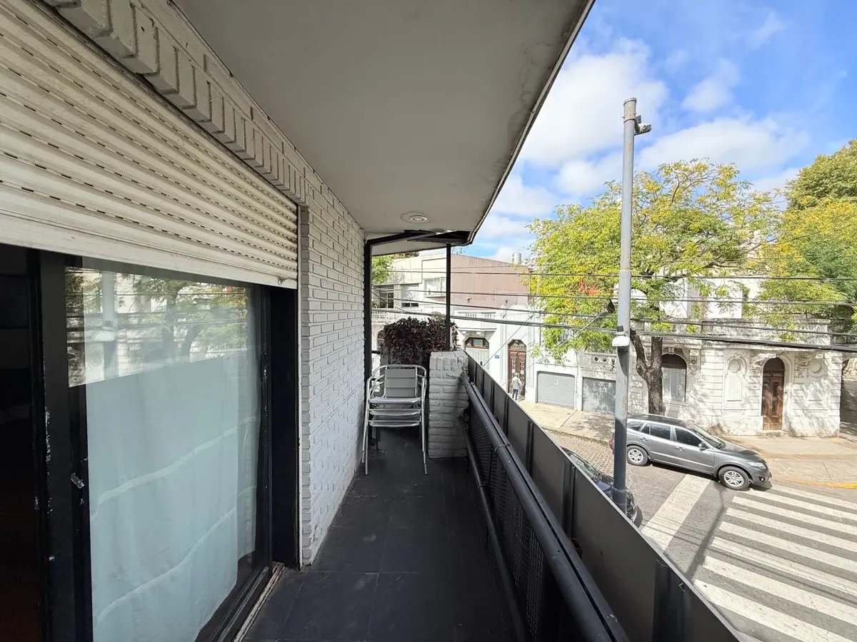 Corner house in Palermo for commercial or professional use. Approx. 200 m² total across two floors, with a small reception area, a large living-dining room with an integrated kitchen and access to a continuous balcony on the ground floor. Four bedrooms that can be configured as divisions and two full bathrooms. On the upper floor there is a private-access terrace with a grill and an additional bedroom with a vanity.