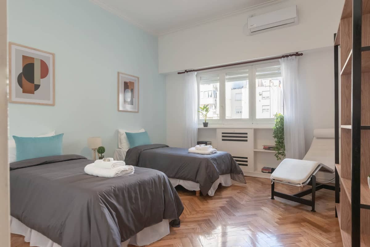 Apartment in Recoleta with 170 m², 5 bedrooms and 3 full bathrooms. Independent, fully equipped kitchen. Air conditioning is provided in all rooms, with high-speed internet available. Additional features include a storage space, a separate laundry room, and 2 single sofa beds; a new HOSPY app is used for virtual check-in and for paying a security deposit that is refunded 10 to 14 days after departure.