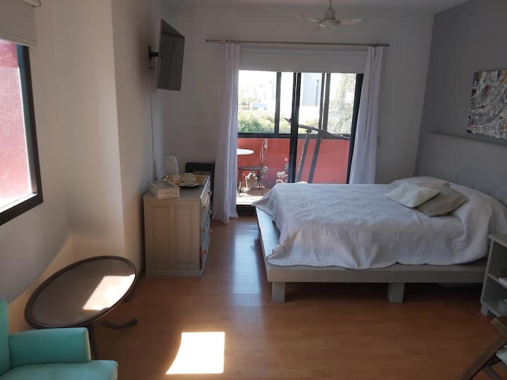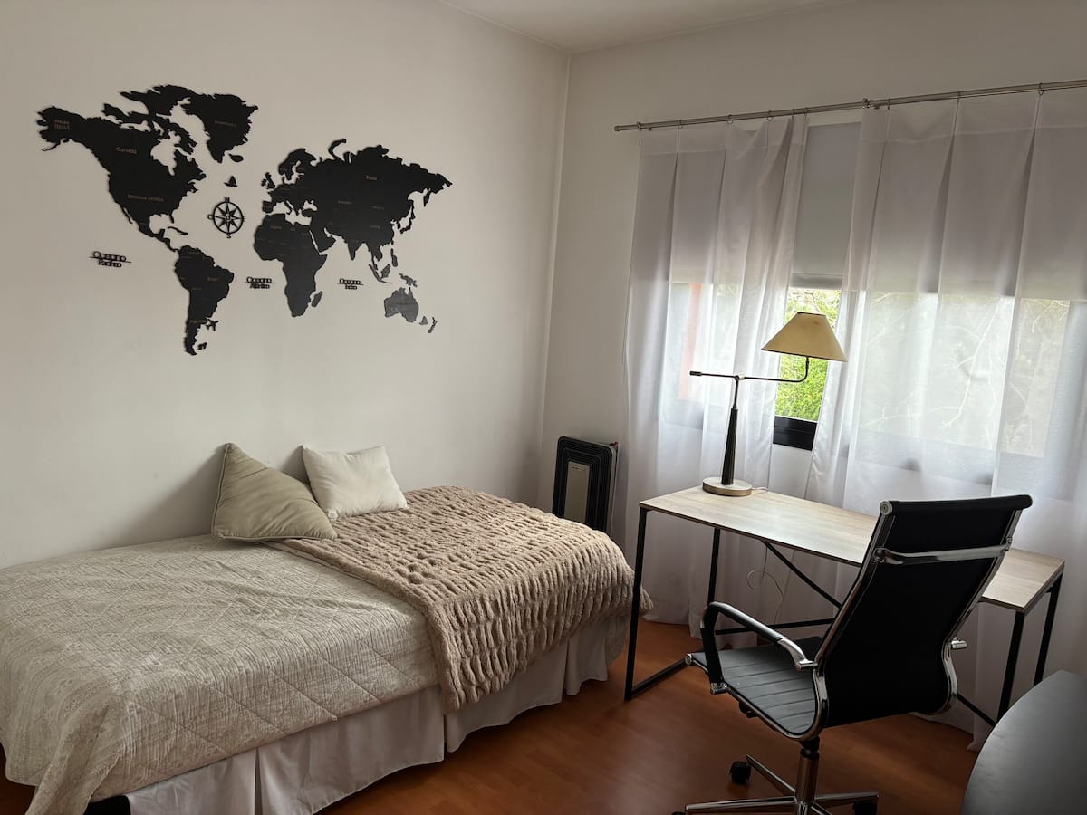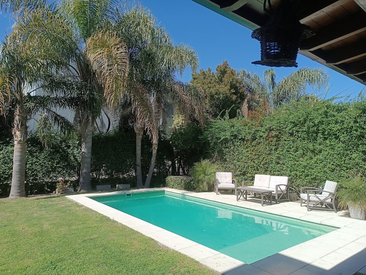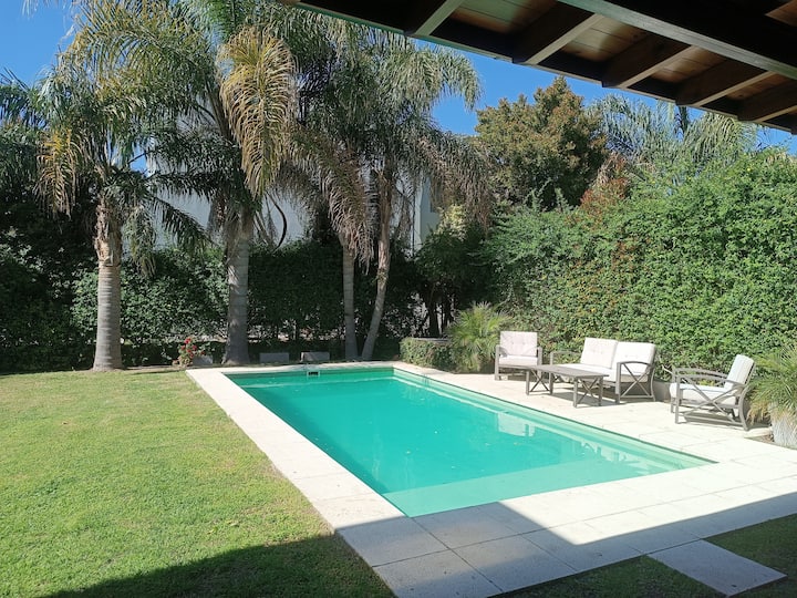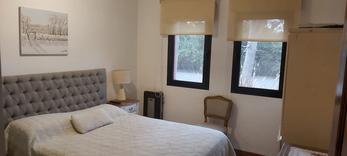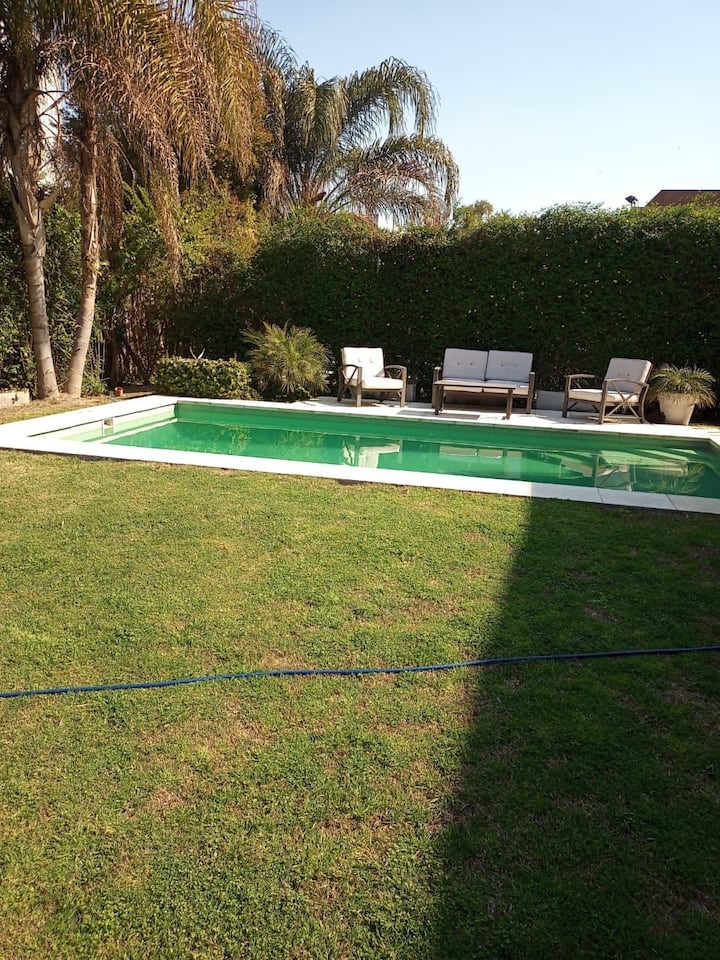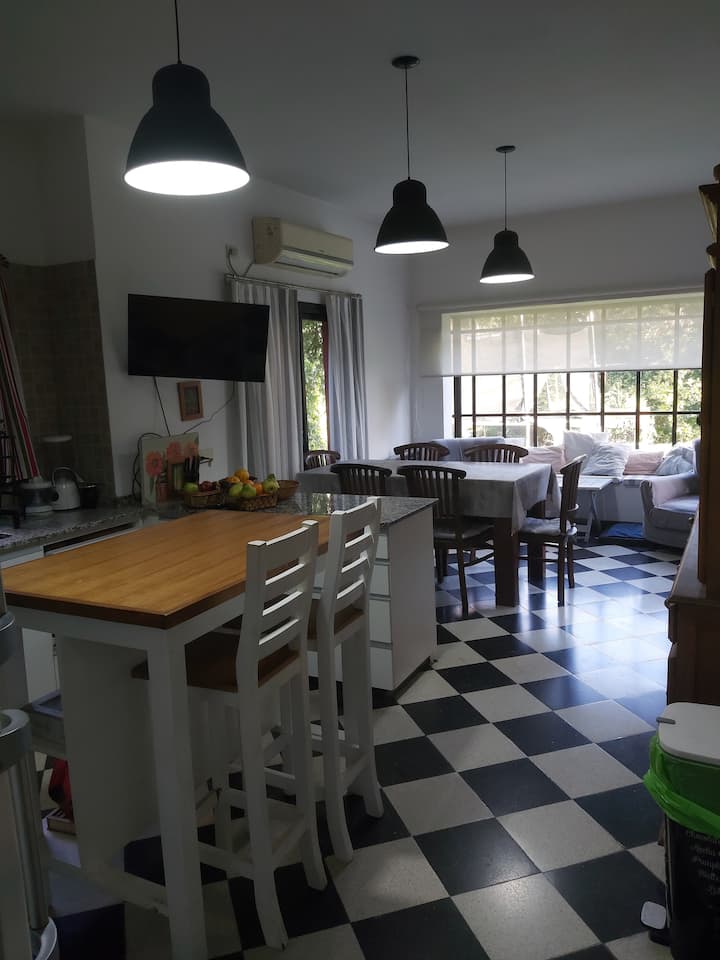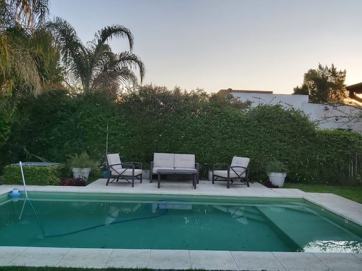 Apartment in San Fernando inside a gated community, about 30 minutes from CABA by highway. The property has 5 bedrooms, two en-suite bedrooms (one on the ground floor and one on the first floor), plus a pool, garden and a wood-burning oven. Smart TVs are listed for all bedrooms, the living room and the dining-kitchen. The complex includes a clubhouse with children’s games.