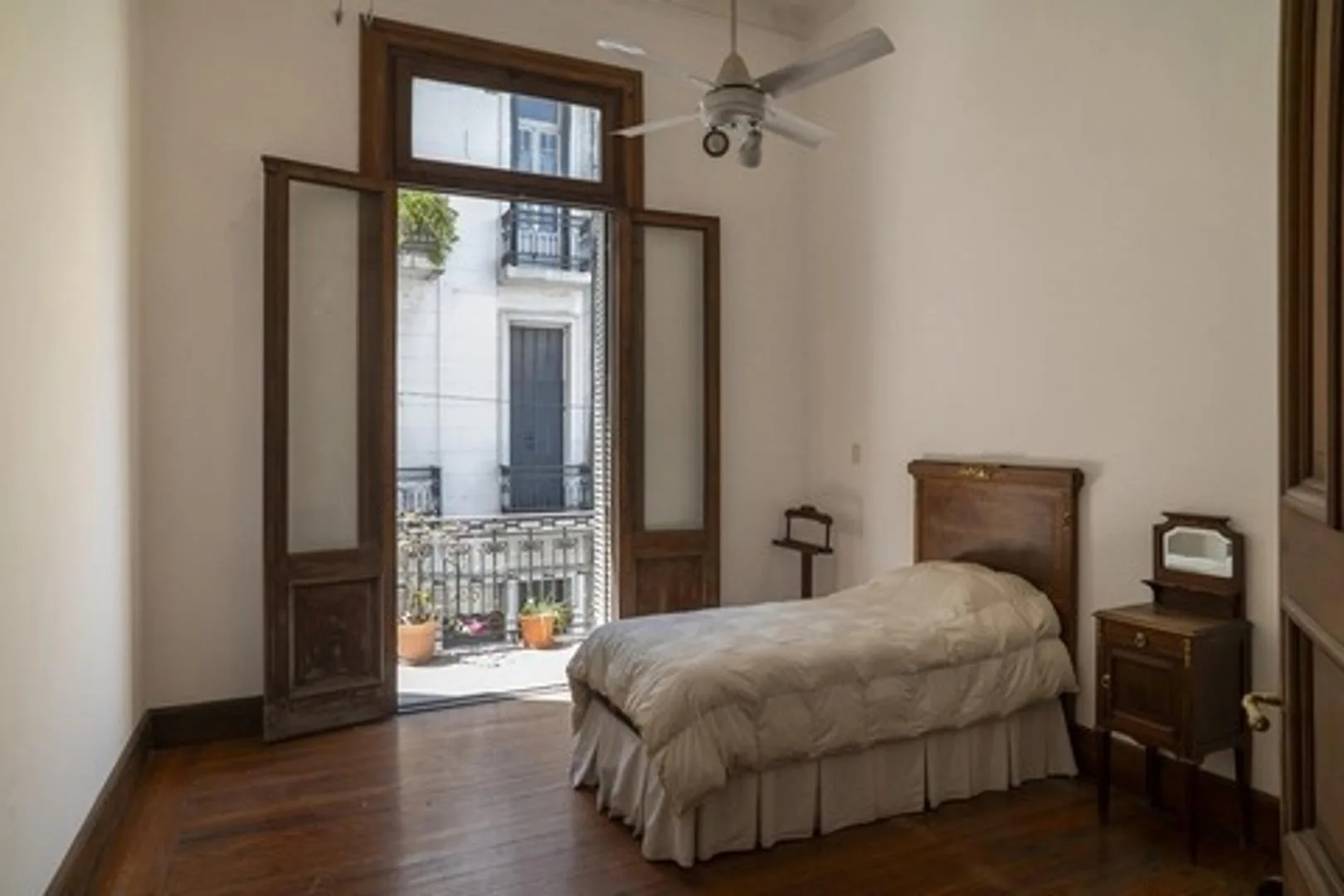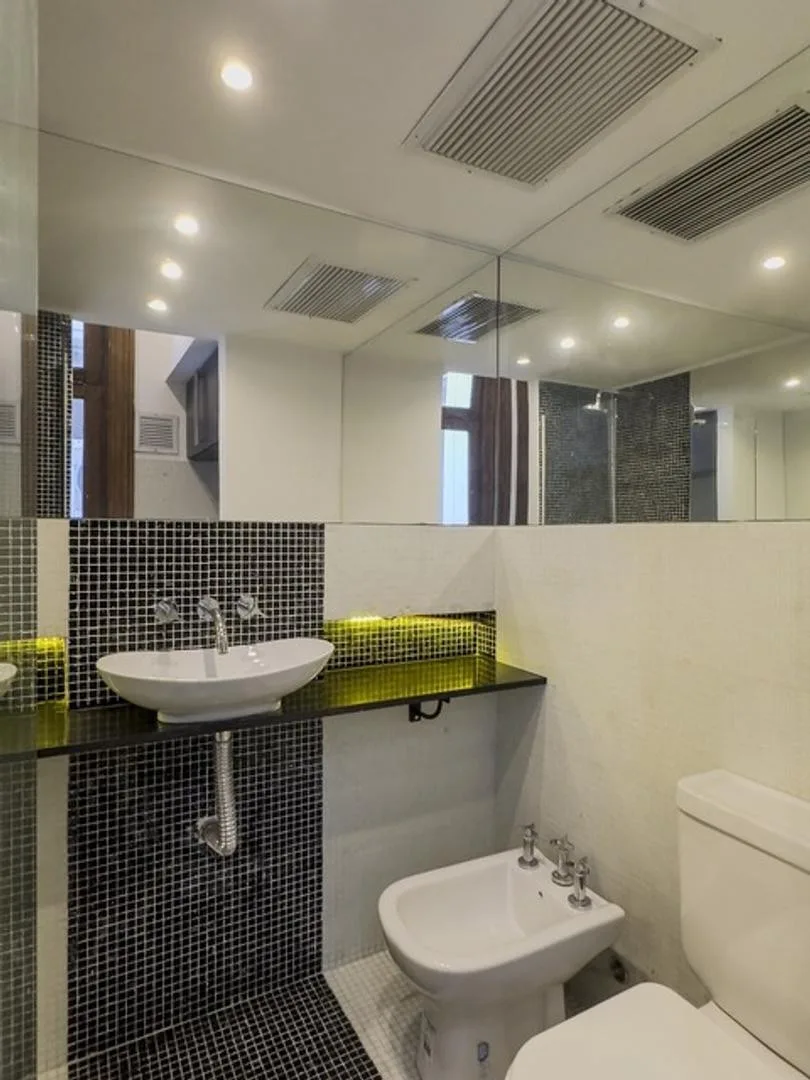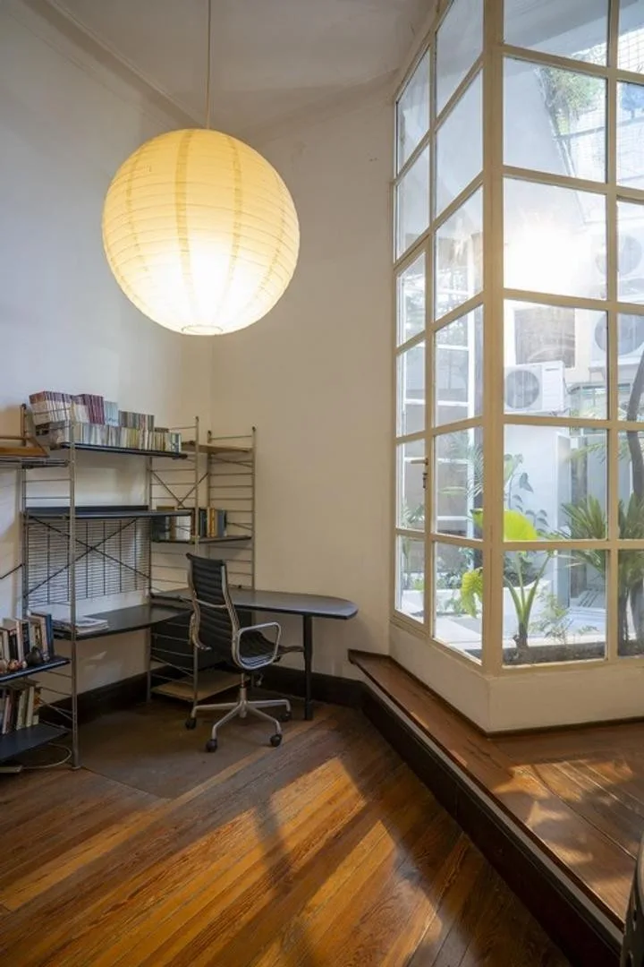 Apartment for rent in San Telmo with 5 bedrooms across 2 floors. It includes a courtyard patio, a balcony, a living room and living-dining area, a separate dining room, an office, a kitchen, and a laundry area, plus a staff room. The unit has air conditioning and heating. Set in a historic building with original structure preserved, with 2 apartments per floor and 1 lift. Building fees are approximately $350,000.