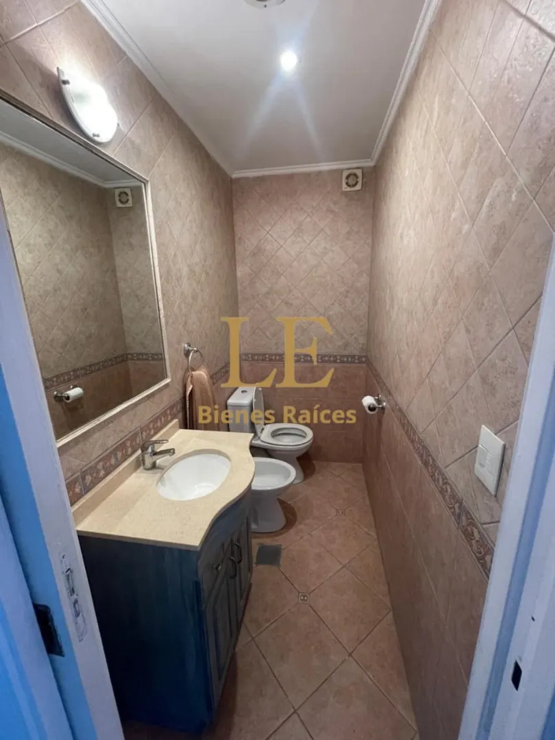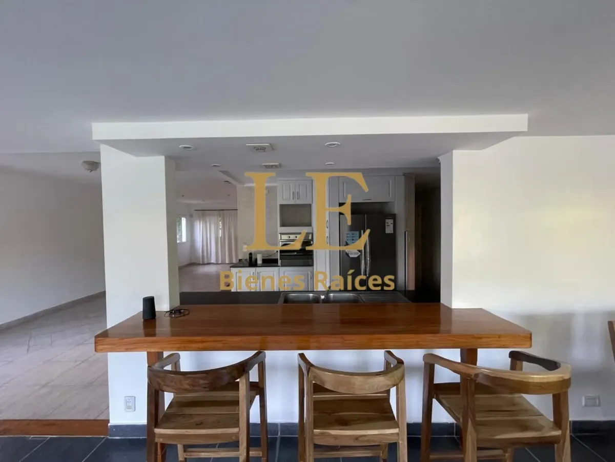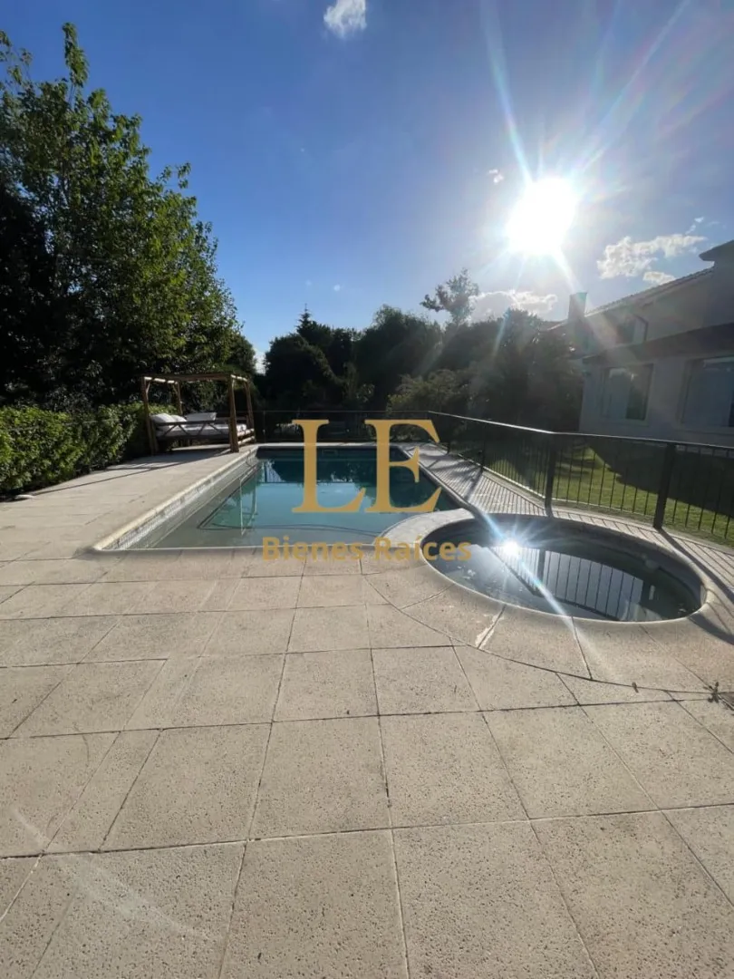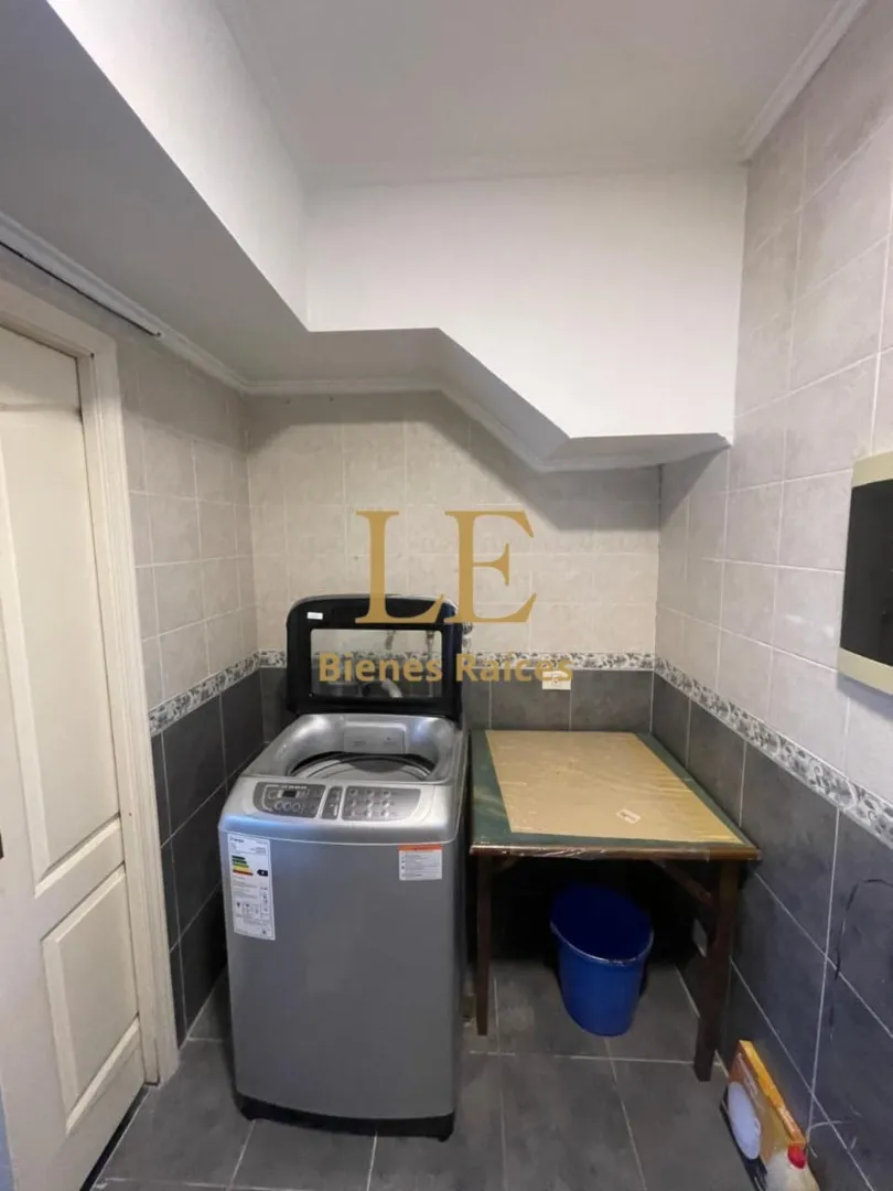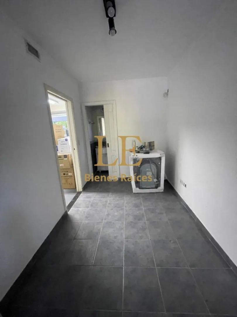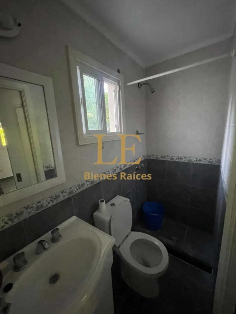 Two-storey house in Lomas de Benavídez private neighbourhood in Tigre, available from May. Ground floor includes a living-dining room with garden views, a kitchen with breakfast bar, built-in kitchen units and countertop, a covered gallery with a grill, a guest toilet and a service unit, plus a separate laundry area. Upper floor has 4 bedrooms, one en suite with a walk-in dressing room, and a full bathroom.