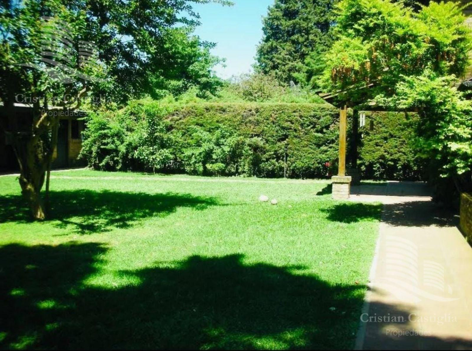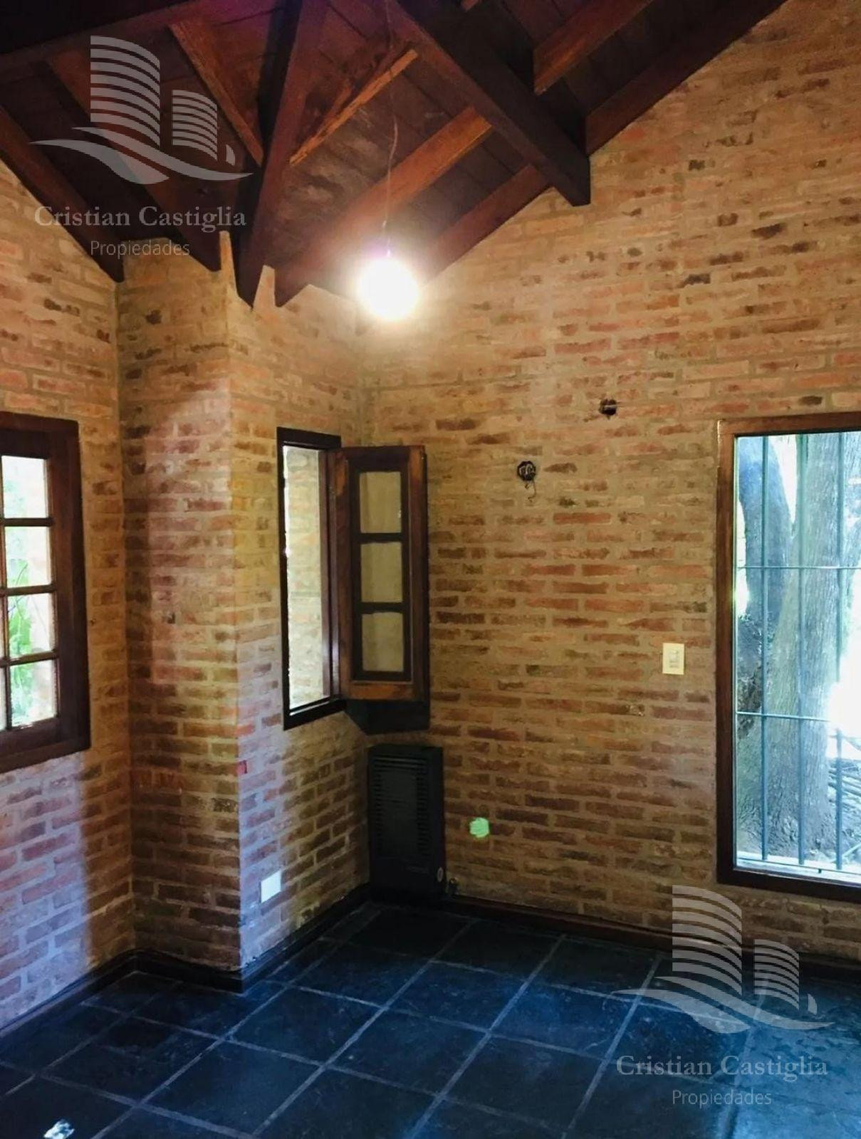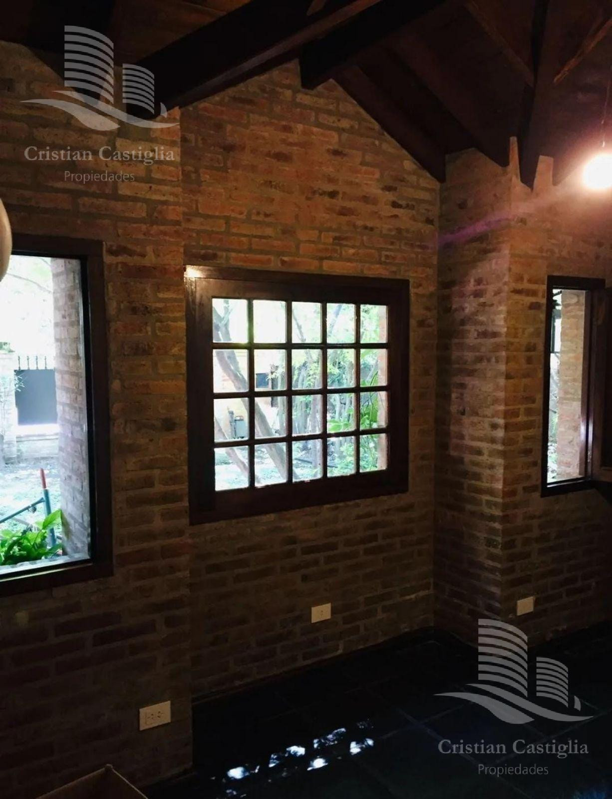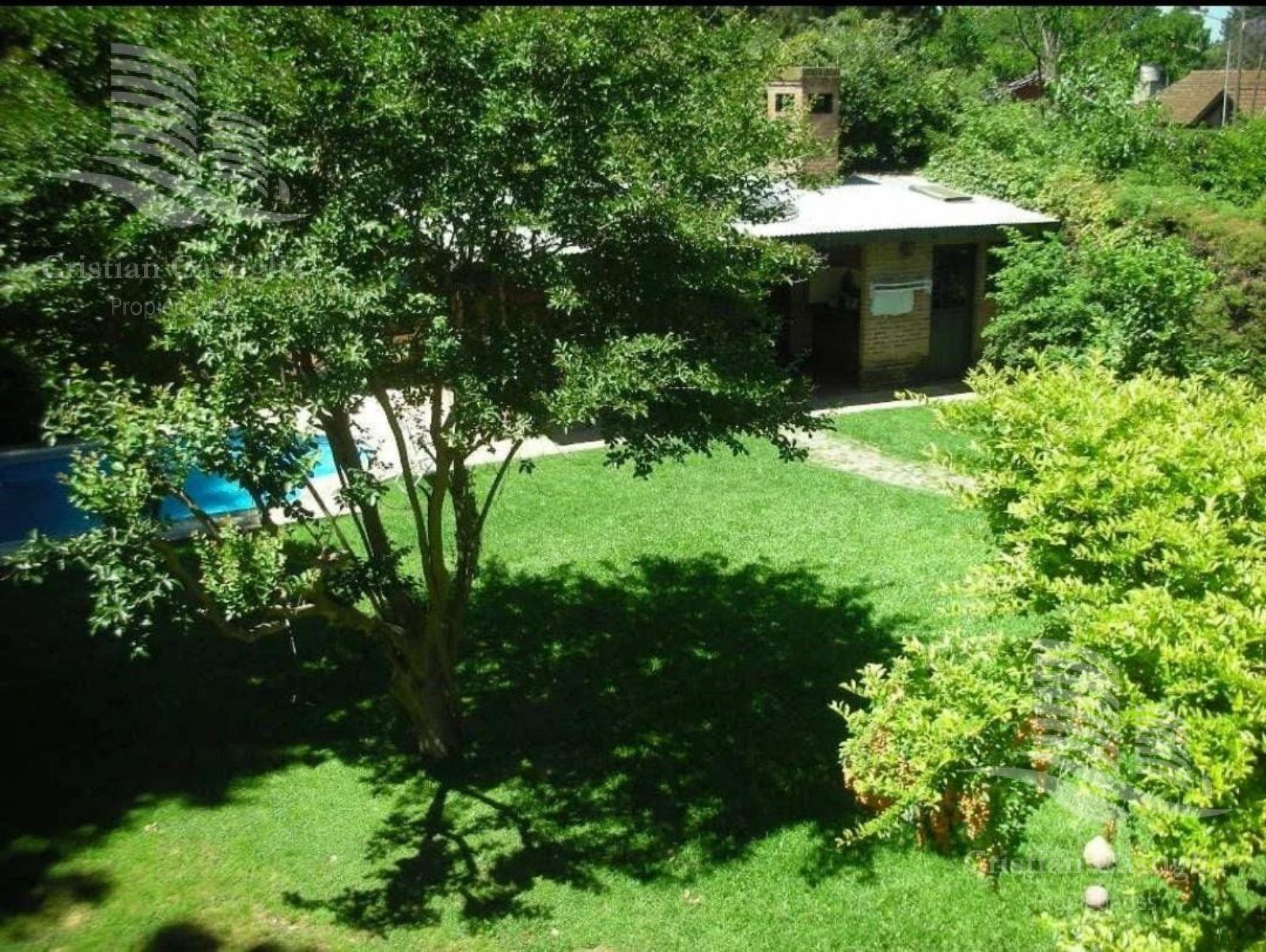 House for rent in Don Torcuato, Tigre, with 300 m² covered area on an 800 m² plot. Built with double brick walls and an internal air chamber. The layout spans two floors plus an attic/technical access, with a rear park of 400 m², a 3.5 x 7.5 m pool, and a covered BBQ area (quincho). The ground floor has an independent kitchen with daily dining and lateral access to the rear park, a separate laundry with connections for two washing machines, a living-dining room with a large window to the park, a