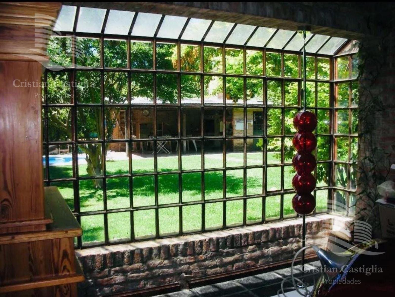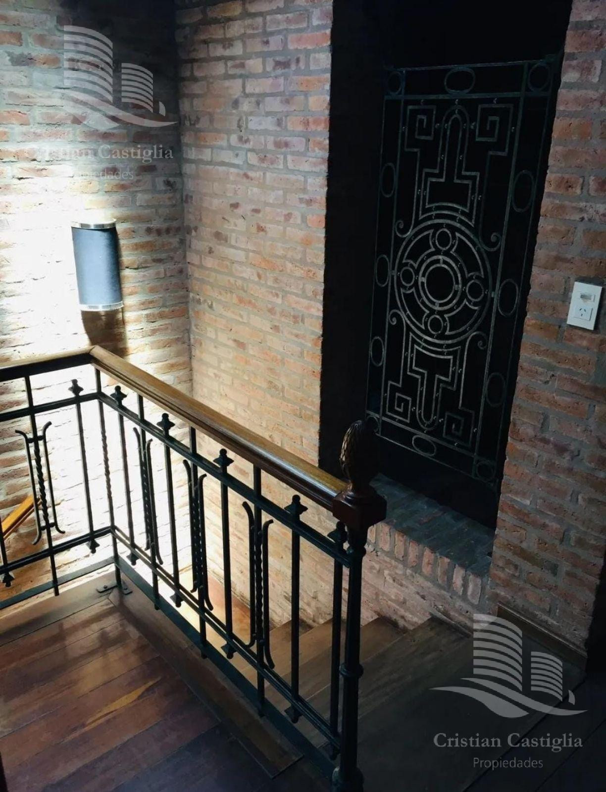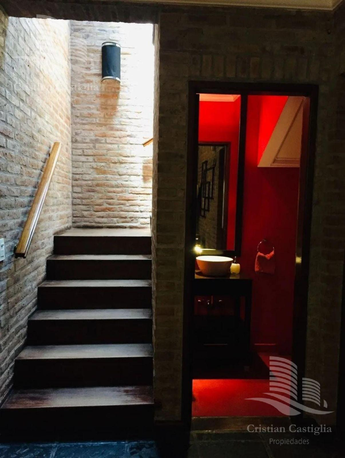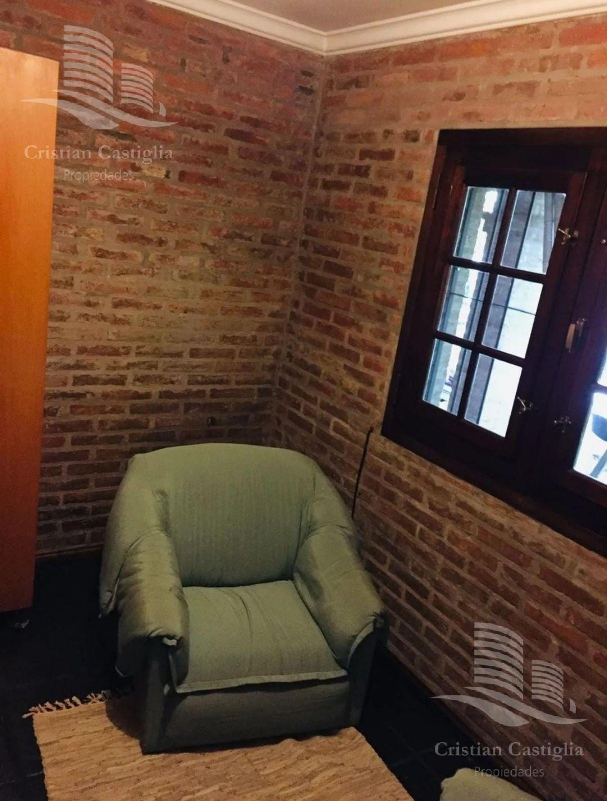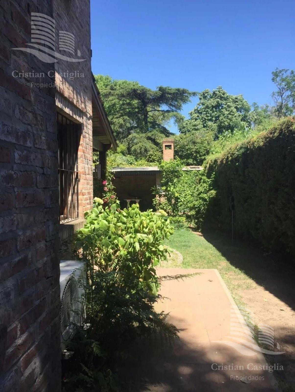 House for rent in Don Torcuato, Tigre, with 300 m² covered area on an 800 m² plot. Built with double brick walls and an internal air chamber. The layout spans two floors plus an attic/technical access, with a rear park of 400 m², a 3.5 x 7.5 m pool, and a covered BBQ area (quincho). The ground floor has an independent kitchen with daily dining and lateral access to the rear park, a separate laundry with connections for two washing machines, a living-dining room with a large window to the park, a