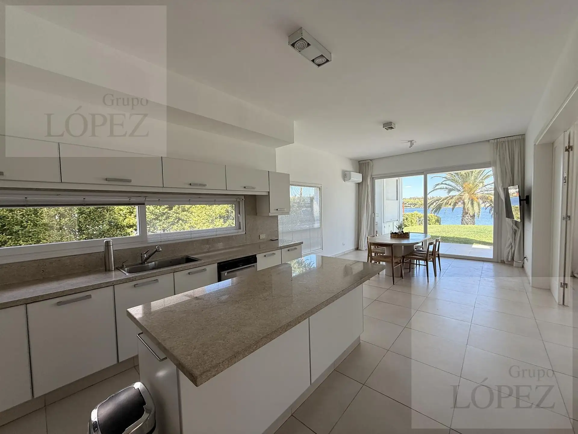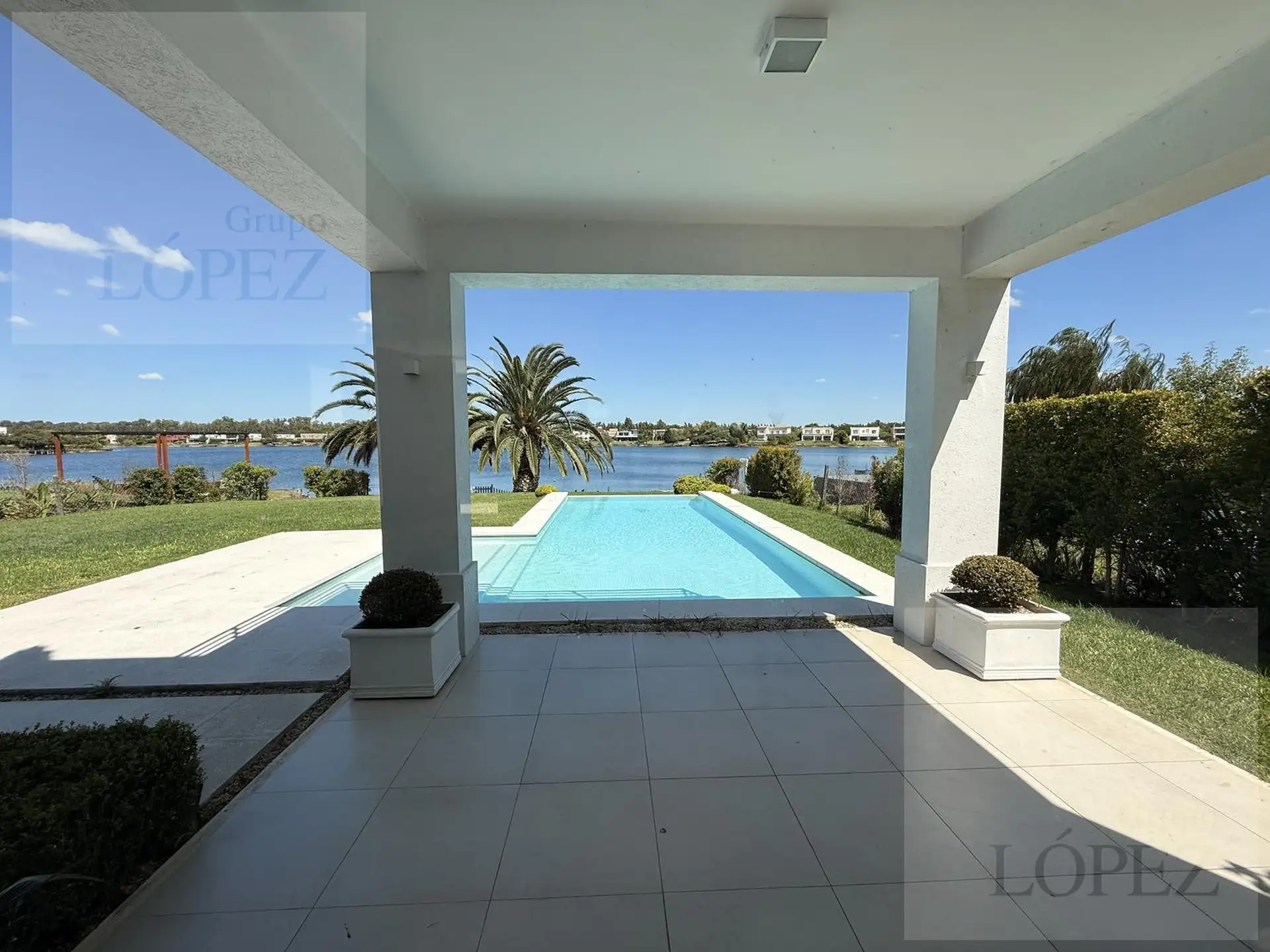 Fully furnished two-storey house in the private gated community Santa Rosa, Villanueva, Tigre, with direct access to the lake. It has 5 bedrooms and views over the lake, with 2 covered and 2 uncovered parking spaces. The ground floor includes a 10 x 5.70 m living room with wood-burning fireplace, hot/cold air conditioning, large windows, and direct access to the garden and the 4.30 x 10 m pool; a 9 x 4.10 m equipped kitchen with embedded oven and 4-burner gas cooktop; a dining room with lake vie