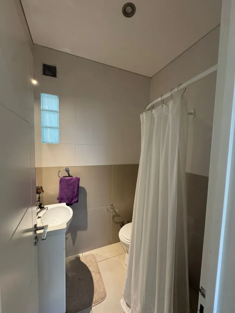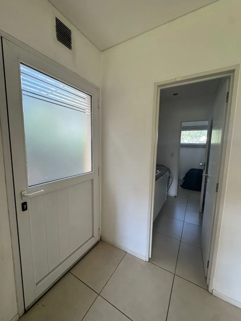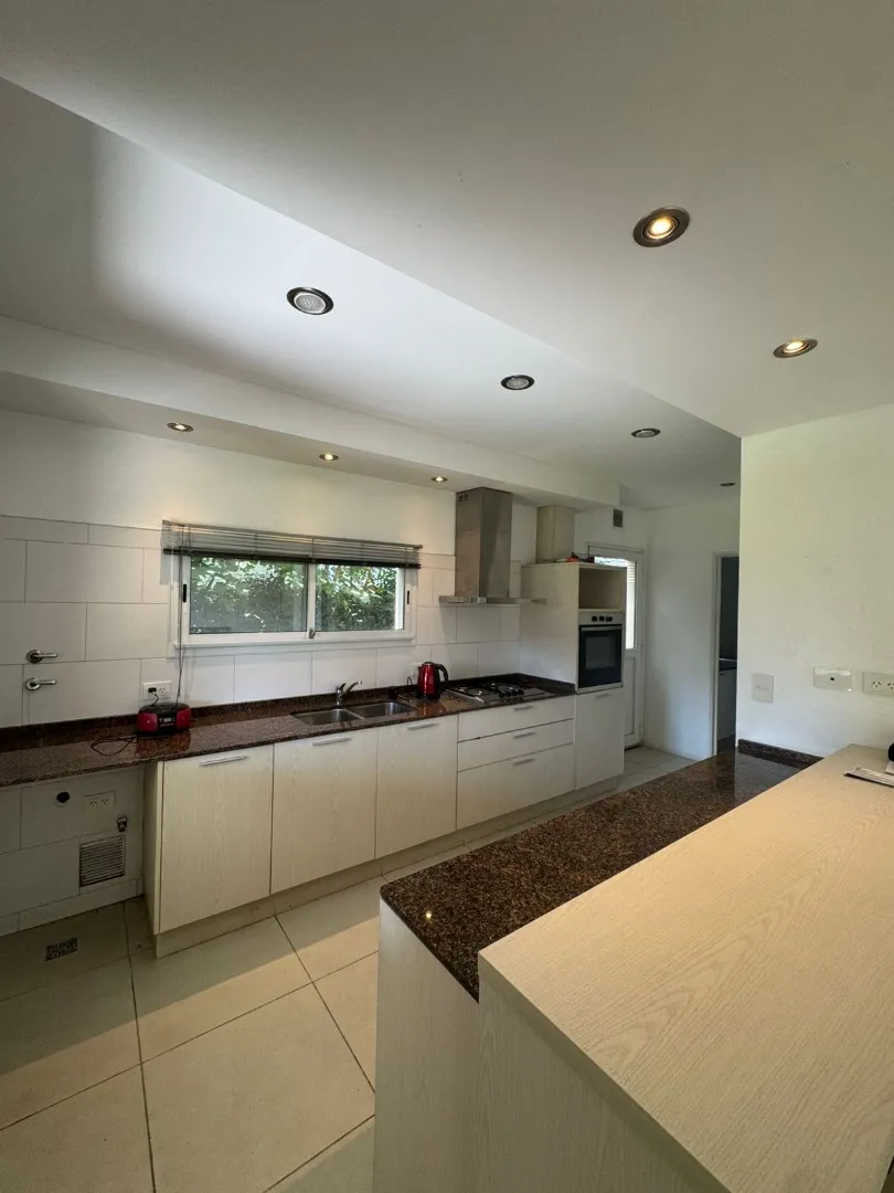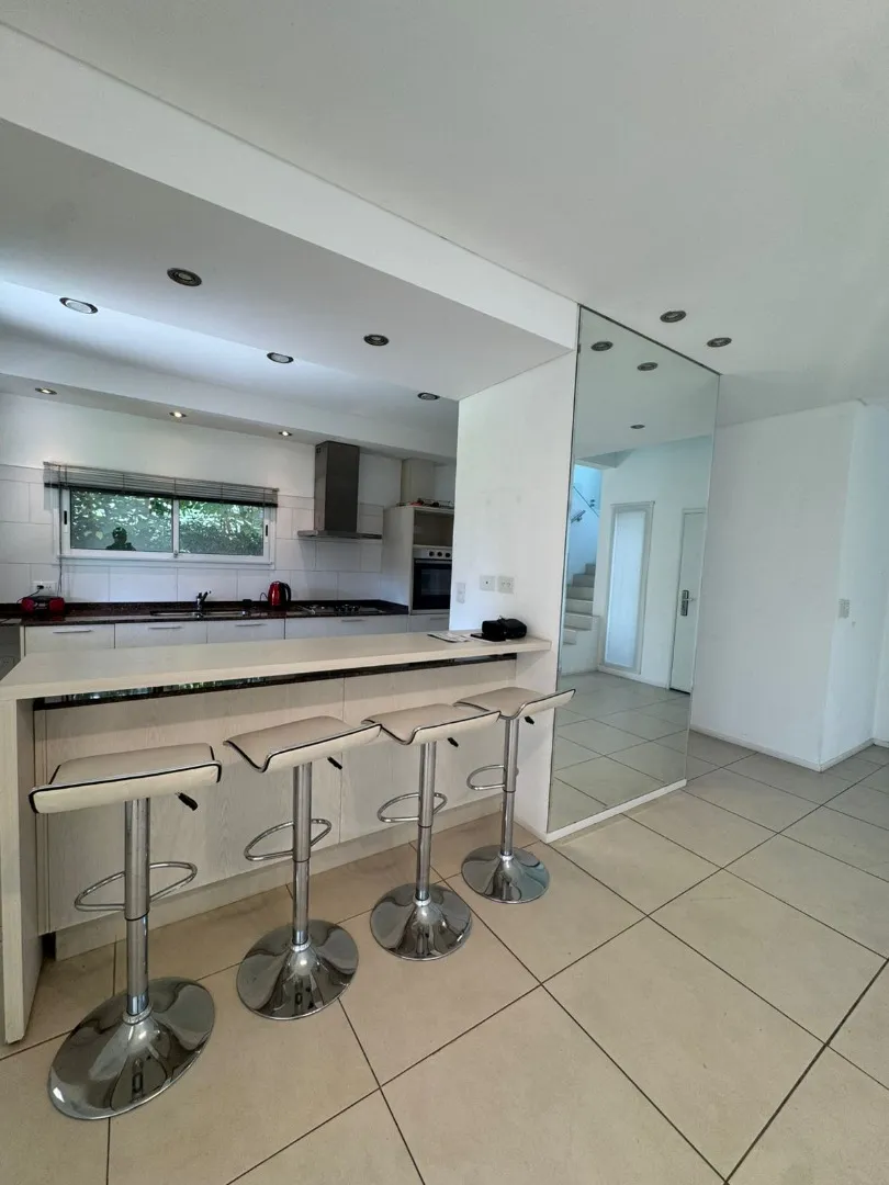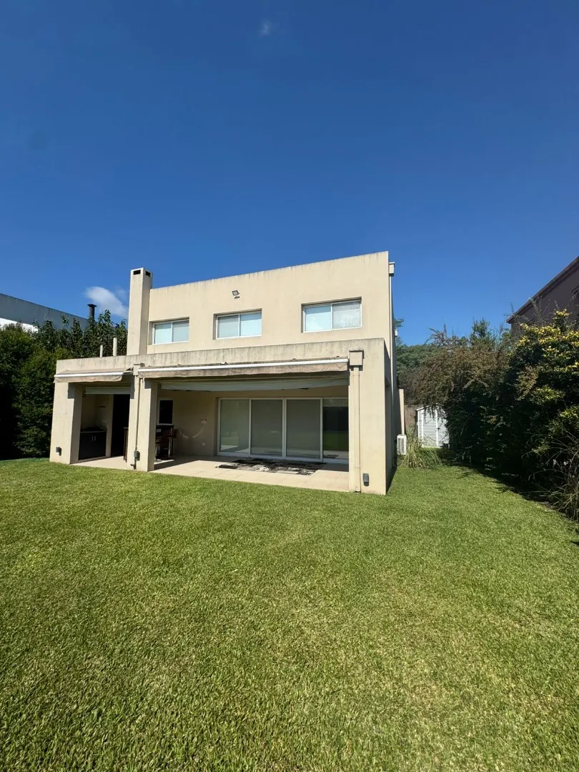 Modern two-storey house in Los Lagos, Nordelta, in Tigre. It has 5 bedrooms, 2 bathrooms and 210 m² semi-covered area. The ground floor includes a large living room with direct access to a covered gallery with a grill, plus a dining kitchen with a breakfast bar for four, a guest toilet, a service room with bathroom and a flexible family area. The garden has a pool, Bahia grass and an automated irrigation system. The upper floor has five bedrooms, including a master suite with a walk-in wardrobe.