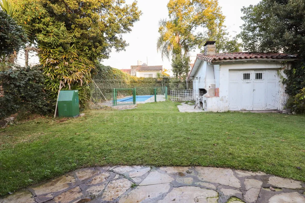 Chalet house in Victoria with 6 rooms (6 ambientes), close to Av. Libertador. Three bedrooms are on the ground floor and two on the upper floor, with 2 bathrooms plus a powder room. Living-dining room with parquet flooring, off-street parking with garage, and a laundry area. The property includes a covered gallery, a garden with a pool, a tool room, and security patrol in the area.