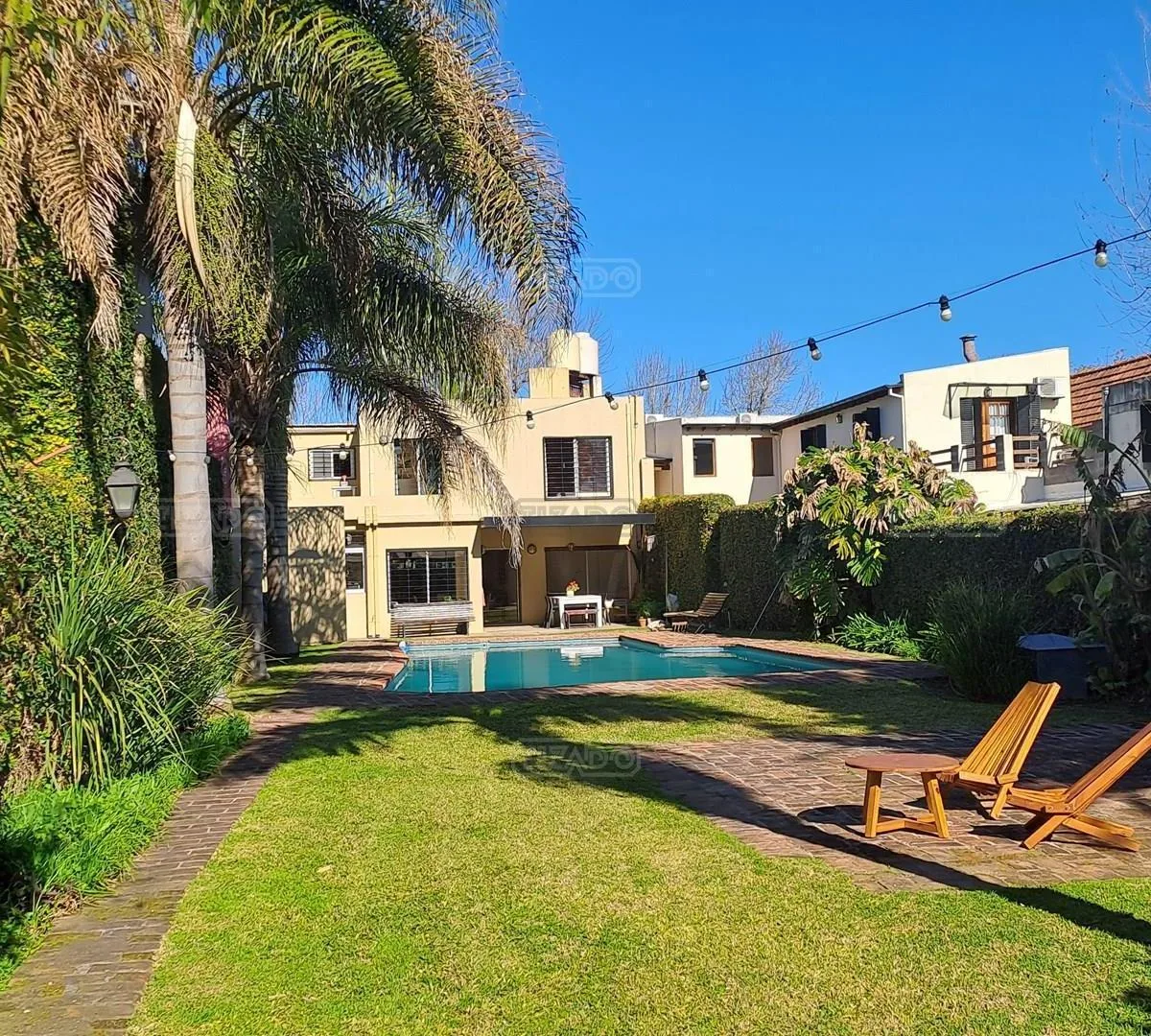 House in Victoria, between major avenues. On the ground floor it has a living-dining room with front and garden views, access to a gallery, a kitchen with high and low cabinets, 2 en-suite bedrooms (one with independent entrance, suitable as an office), and a guest toilet. On the upper floor there are 4 en-suite bedrooms. The property includes a garage for 1 car, an uncovered driveway space for 1 car, a laundry area, a gallery, a garden with a pool, and a quincho with a covered grill. There is a