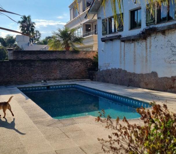 Historic house set on Barranca de Perú in Acassuso with views over the river. The property occupies two lots totalling approximately 4,000 m², with 1,034 m² covered across several constructions: a main house, a communal room, and a sports area with a covered grill (quincho) and changing rooms. The main house is spread over two floors with stone front and slate-tiled roofs, featuring an entry hall with a marble staircase, reception room, a separate gym space, an independent one-bedroom unit with