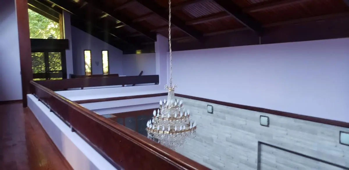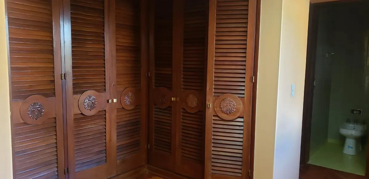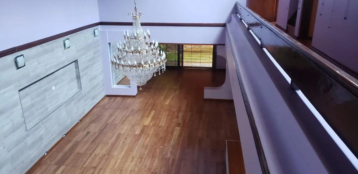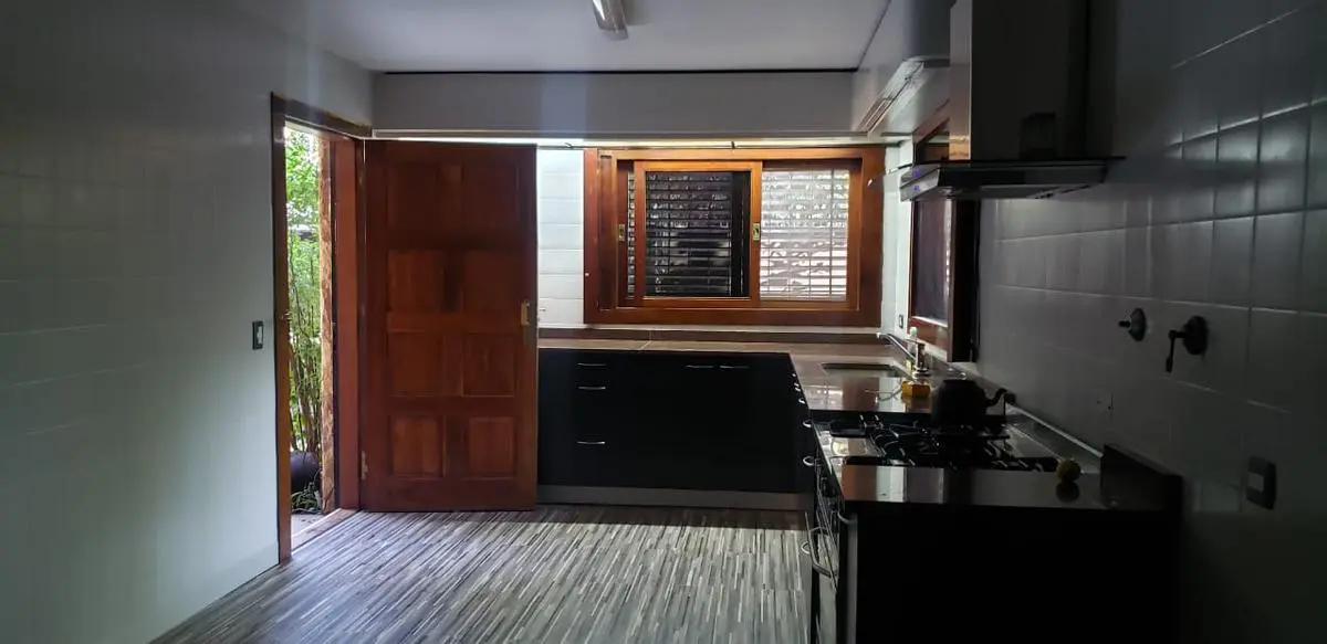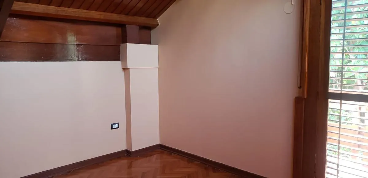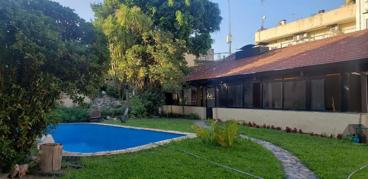House for rent in Martínez with 7 rooms. Ground floor includes a reception hall, cloakroom with anteroom, a living room measuring 7.5 x 9 m with parquet floors, a split-level dining room (7.5 x 4.5 m), an integrated playroom (4.5 x 7 m) with windows to the garden, a 4 x 4 m study, and an eat-in kitchen with an independent entrance. A covered garage for 2 cars, separate laundry, and a service bedroom with a bathroom are included. Upstairs has a front en-suite bedroom with mezzanine, a main en-sui
