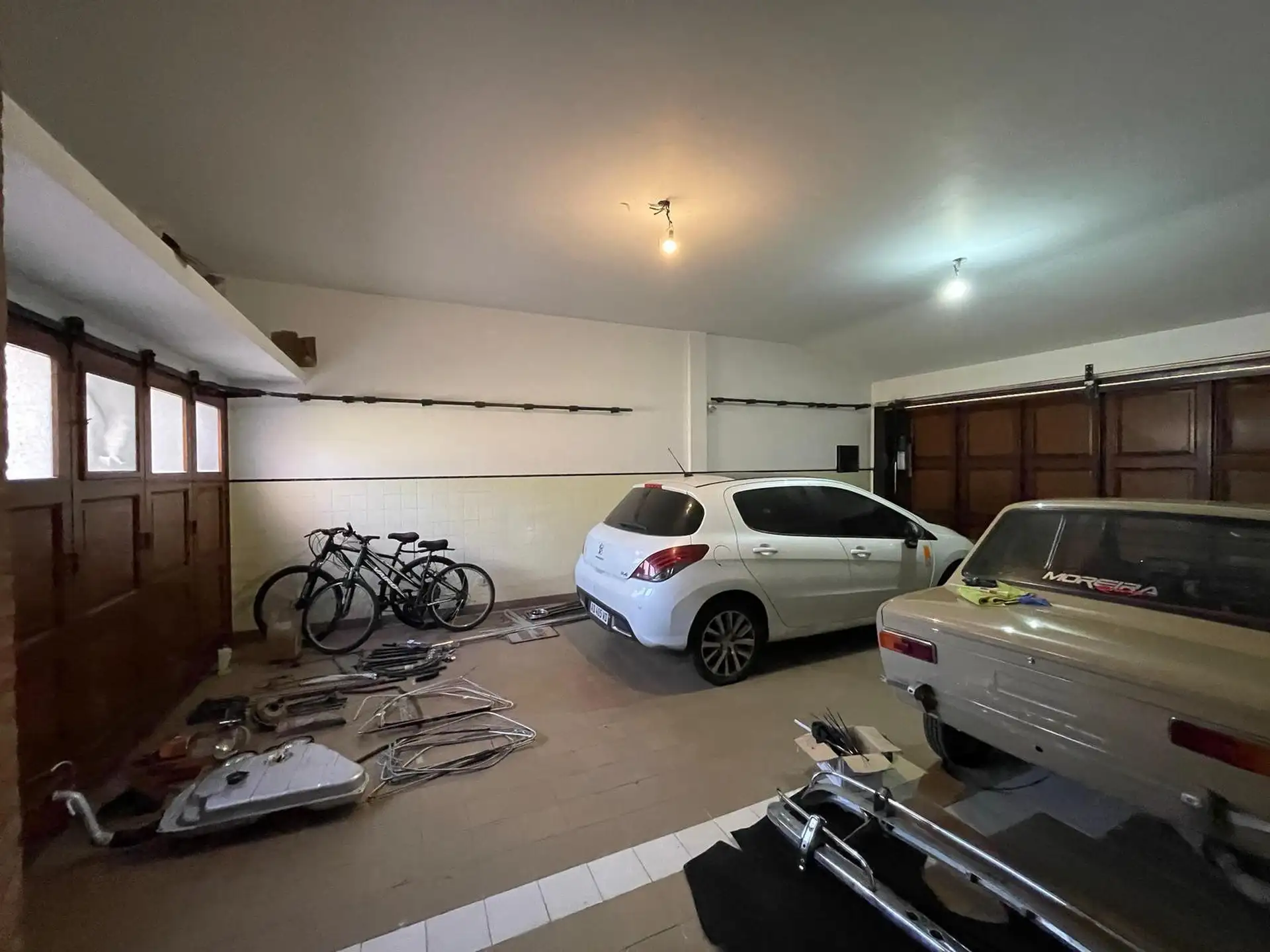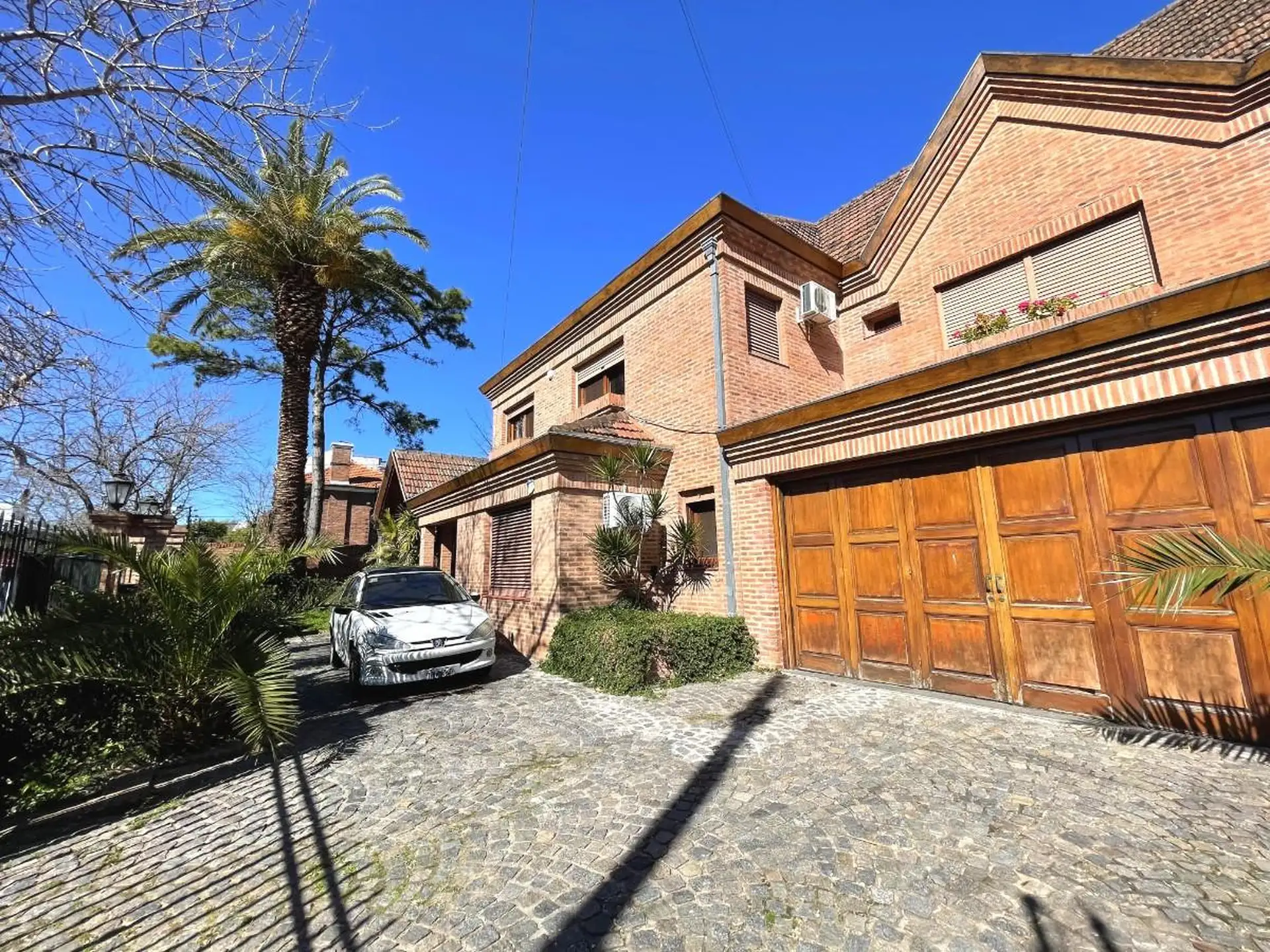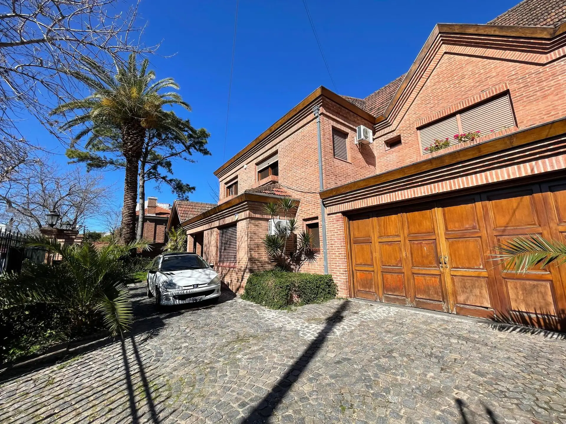 House for rent in Martínez, 20 metres of frontage by 40 metres deep, arranged over two storeys plus basement, attic and a quincho. The ground floor has a main entry with double-leaf door, reception hall, living room with access to the front and rear gardens, integrated dining, a large eat-in kitchen with separate laundry and service entrance, a 4 x 4 m bedroom, full bathroom with anteroom, and an enclosed garage measuring 8.40 x 7.76 m, plus a storage cellar. The upper floor includes a distribut
