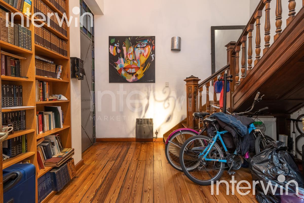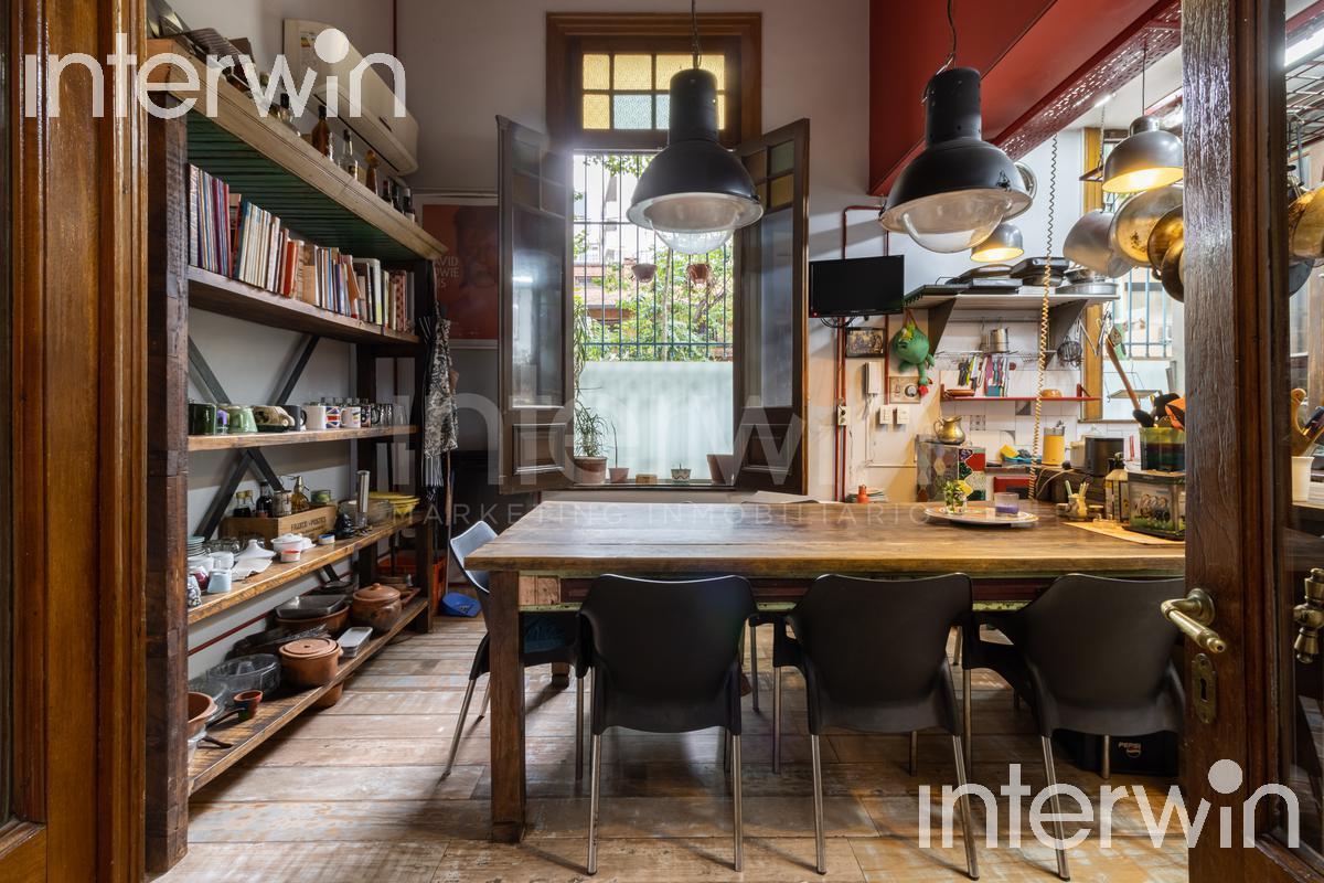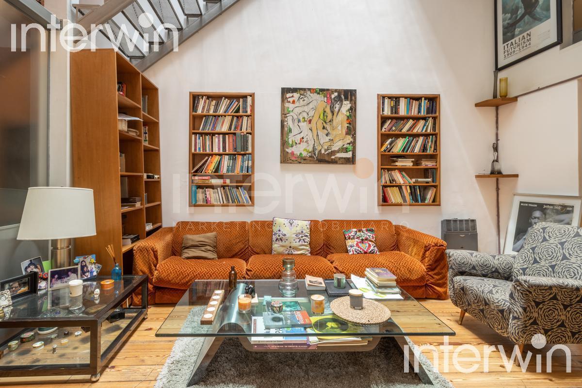 Three-storey house in Palermo Hollywood with two mezzanines and a large terrace, on a corner at Guatemala and Arévalo. Triple-height living room with a triple-height glass roof, wood openings and multi-colour leaded-glass windows. Split air-conditioning in all rooms. On the ground floor there is a distribution hall with stairs to the first floor, a triple-height living room with wooden floors and office, one bedroom, a full bathroom, and a kitchen with a dining area; a spiral staircase leads to