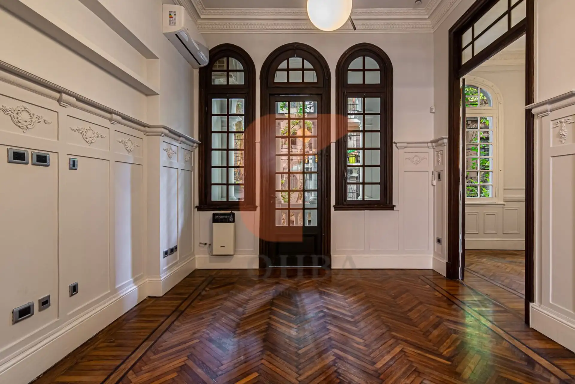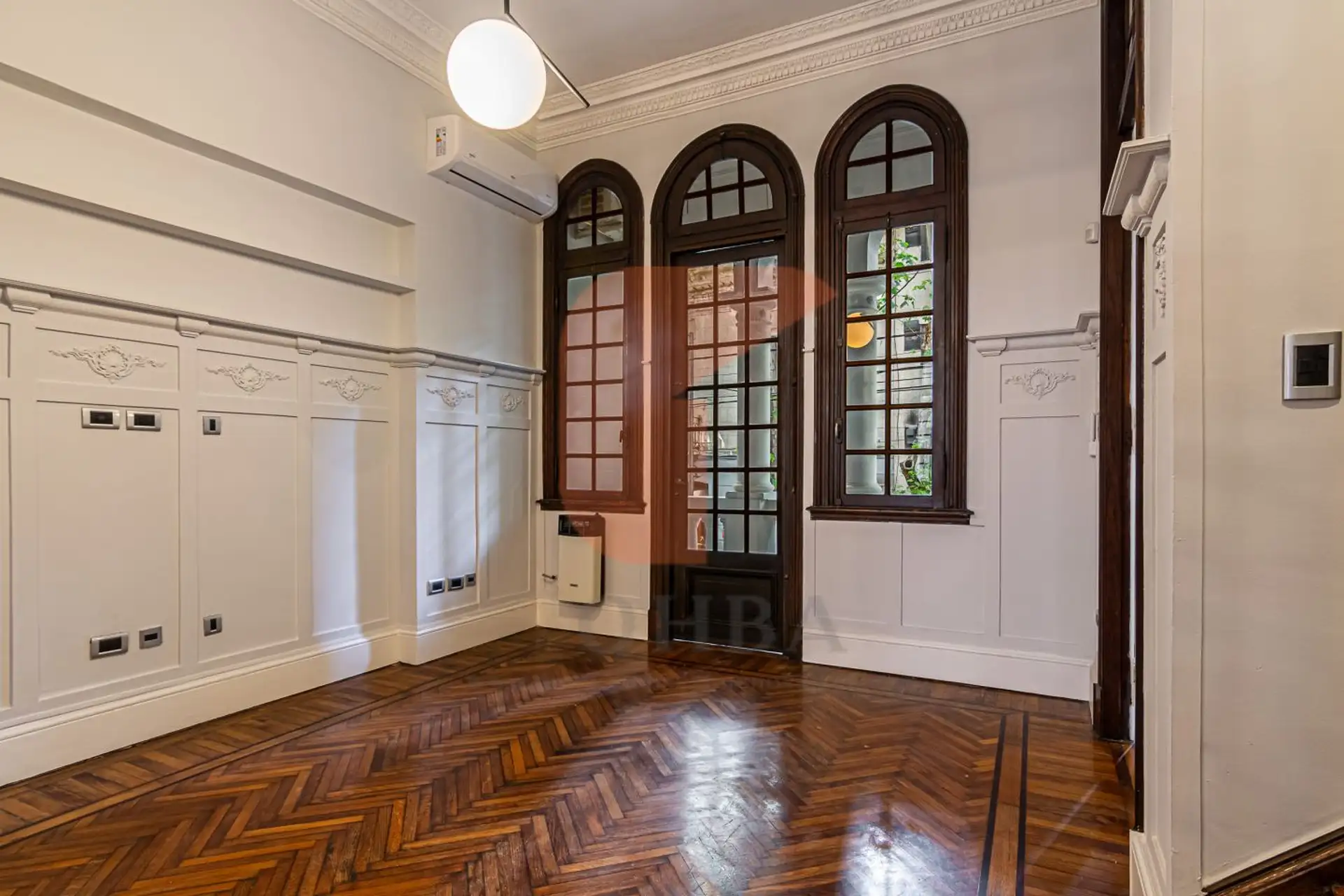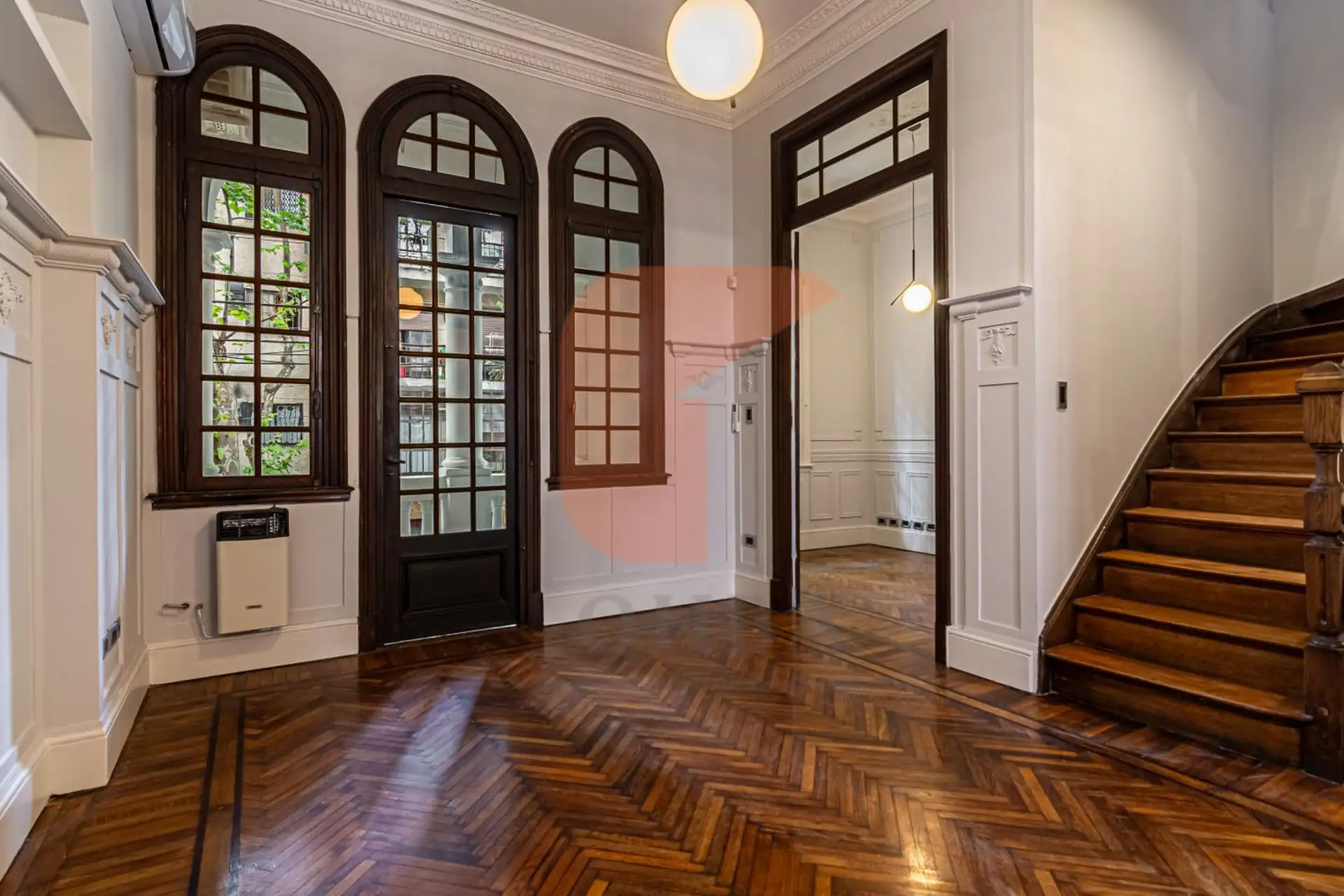 Petit hotel-style house in Palermo Soho across four floors, renovated in 2005 and updated in 2025. Six bedrooms including a ground-floor independent bedroom with en-suite bathroom, plus additional spaces on the first floor with a living room, study or library, and a kitchen-dining area with a toilet. Split inverter air-conditioning and balance-flue stoves are installed in all rooms, with European-design lighting and smoke and carbon-monoxide detectors. A garage with room to park a car and a smal