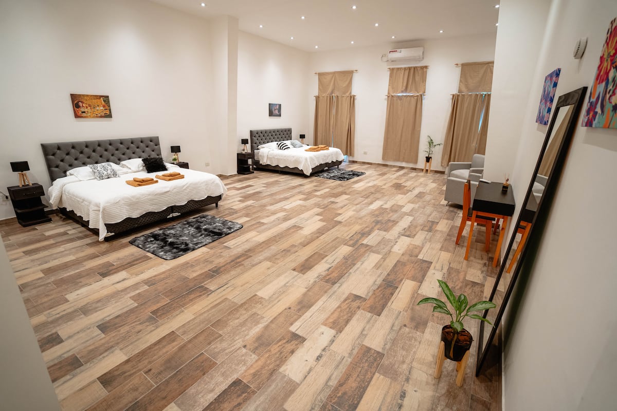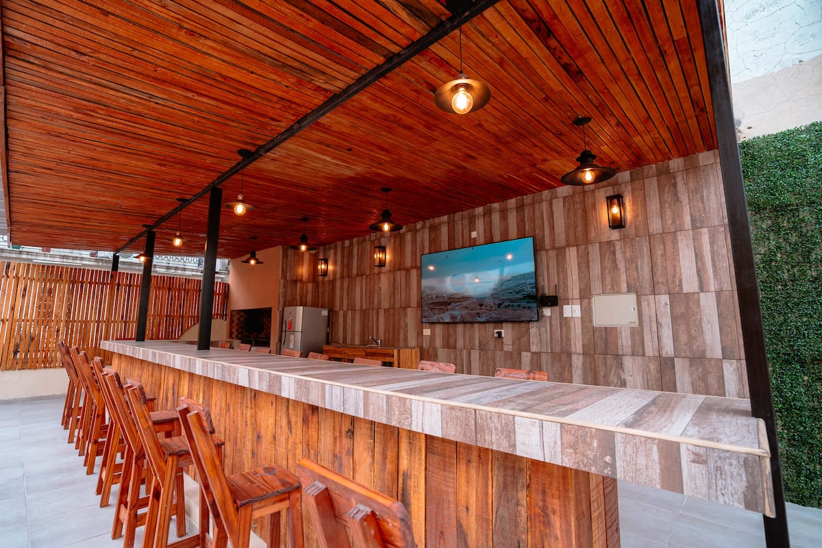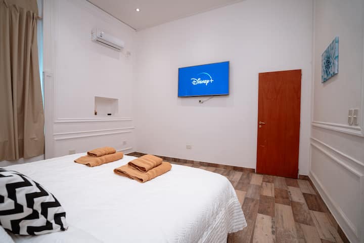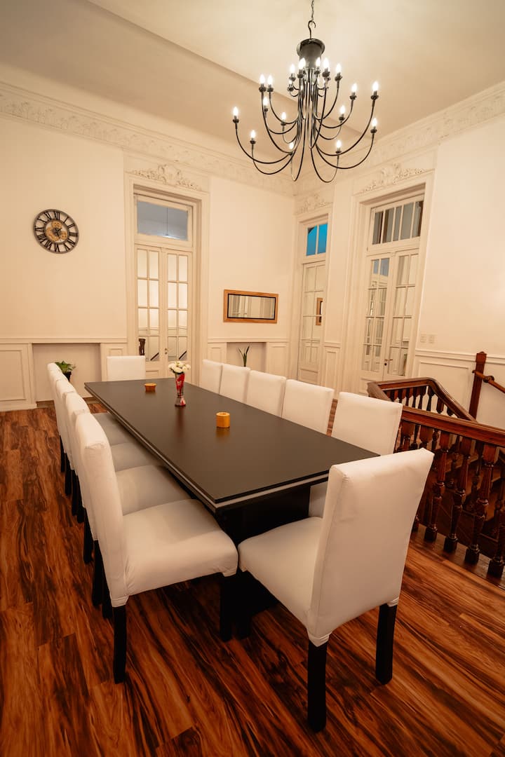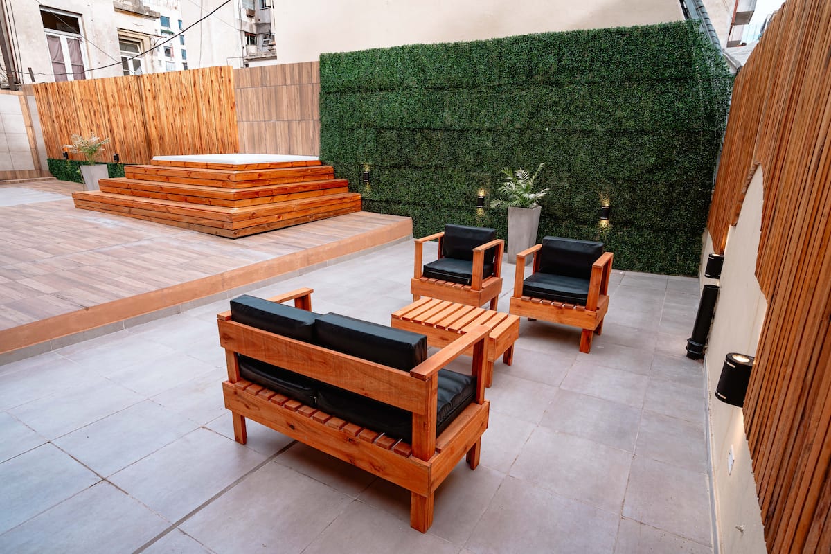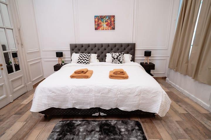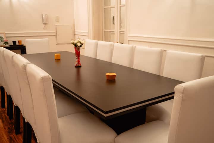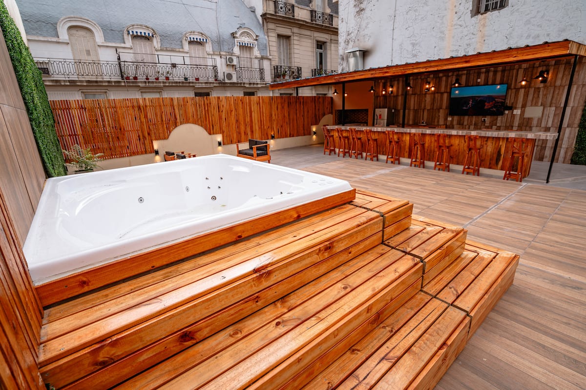Renovated apartment with 700 m², configured as a six-bedroom mansion in Retiro. Each of the 6 bedrooms has an en-suite bathroom, with sleeping capacity for up to 19 people. Entertainment and connectivity include LED TVs with Netflix and Amazon in each bedroom, 75" Samsung TVs in the living room and on the rooftop terrace, and high-speed internet with a router on each floor. The rooftop terrace has a jacuzzi, outdoor shower, grill, covered bar area and a half bathroom.