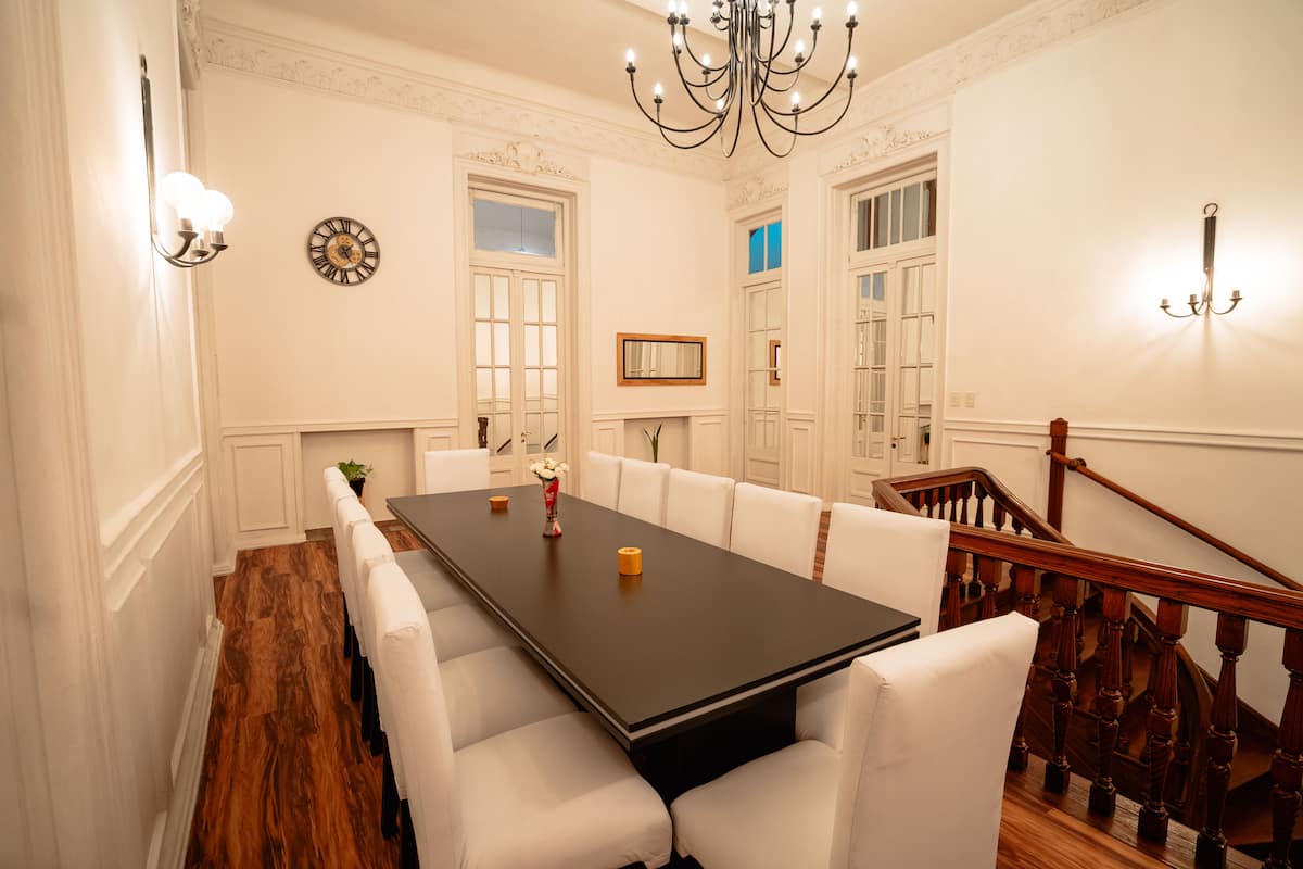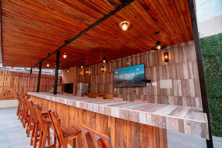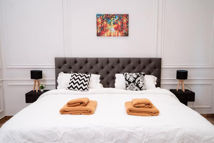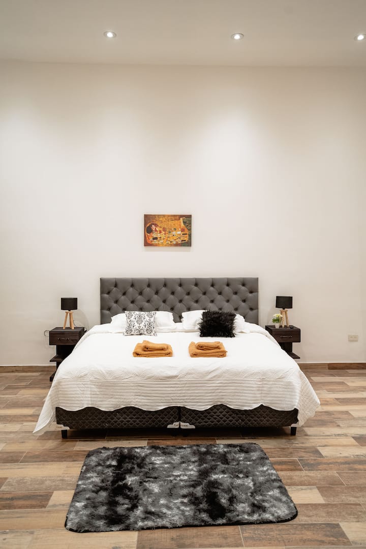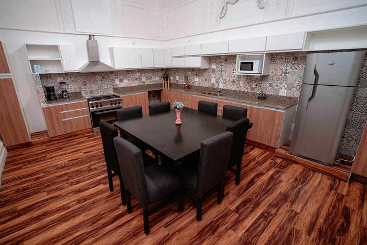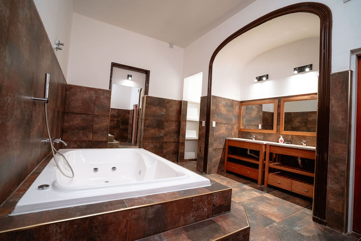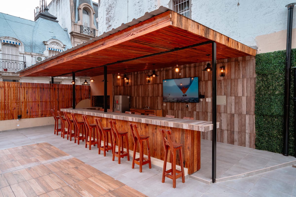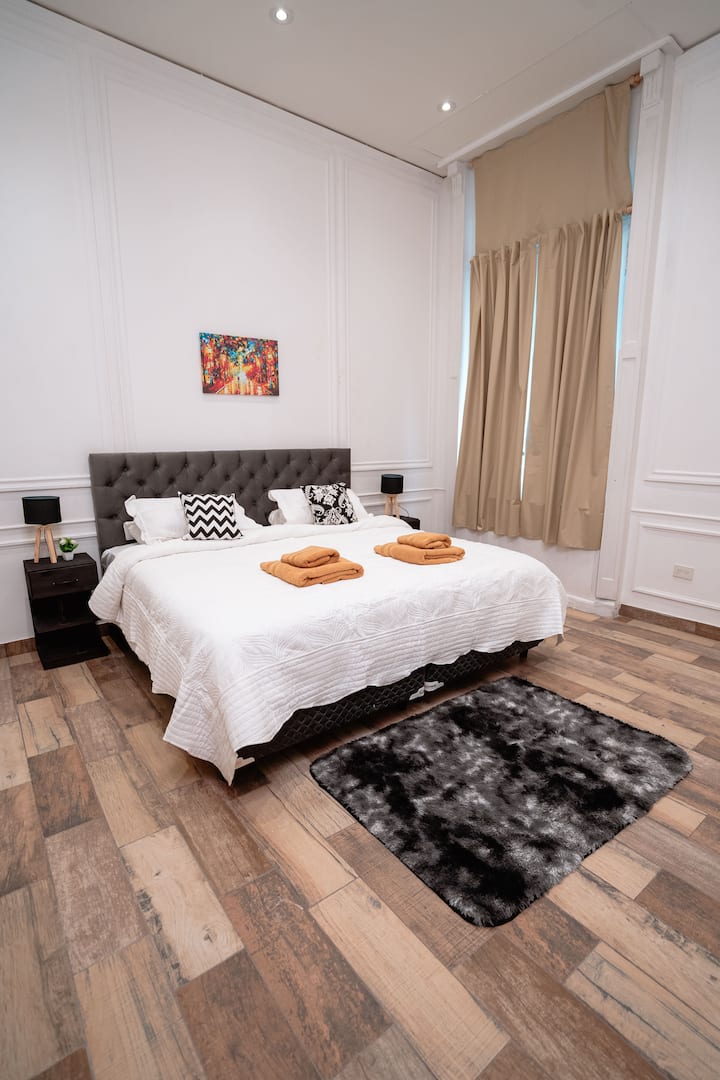 Renovated apartment with 700 m², configured as a six-bedroom mansion in Retiro. Each of the 6 bedrooms has an en-suite bathroom, with sleeping capacity for up to 19 people. Entertainment and connectivity include LED TVs with Netflix and Amazon in each bedroom, 75" Samsung TVs in the living room and on the rooftop terrace, and high-speed internet with a router on each floor. The rooftop terrace has a jacuzzi, outdoor shower, grill, covered bar area and a half bathroom.