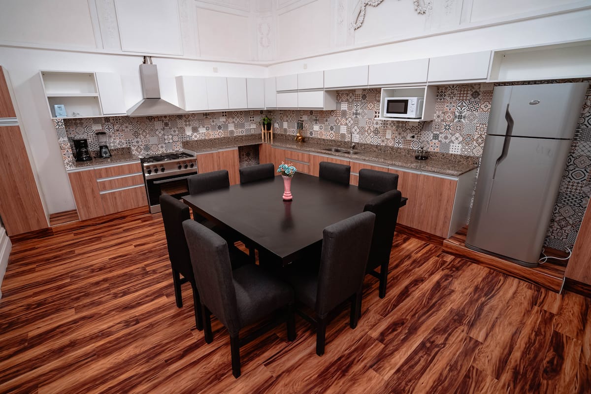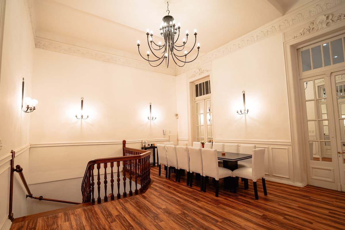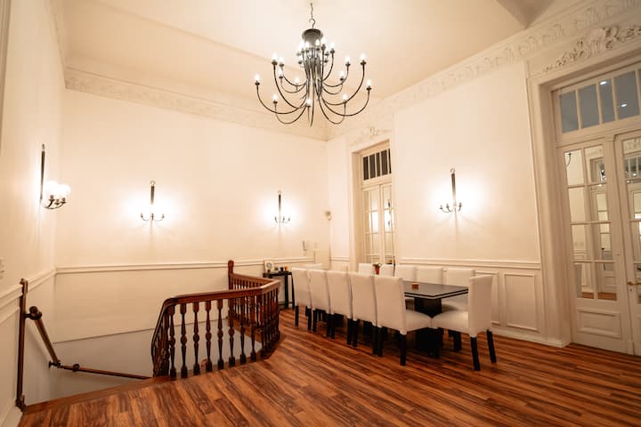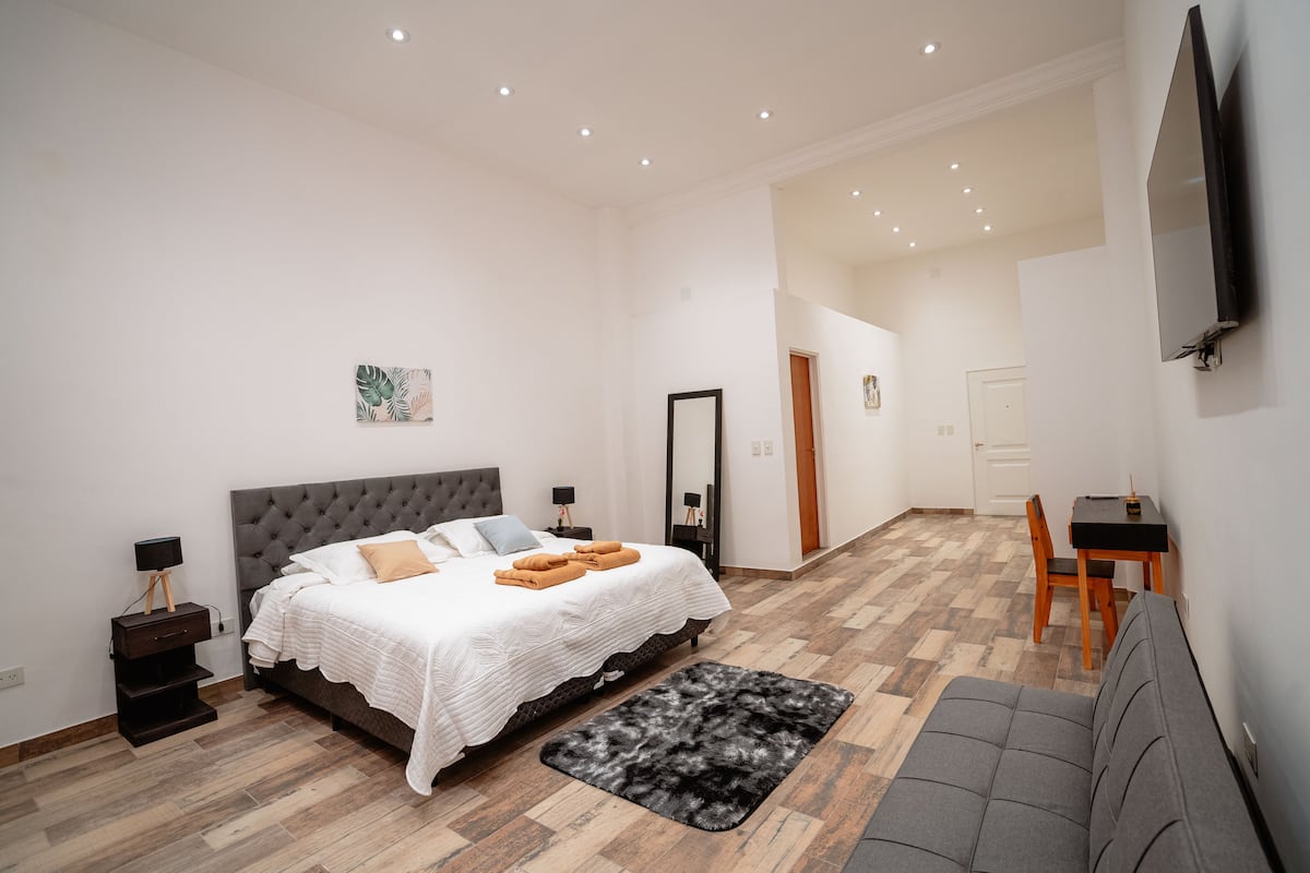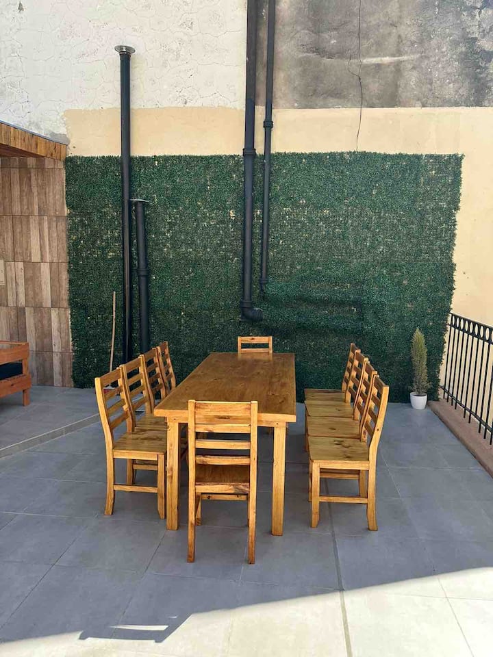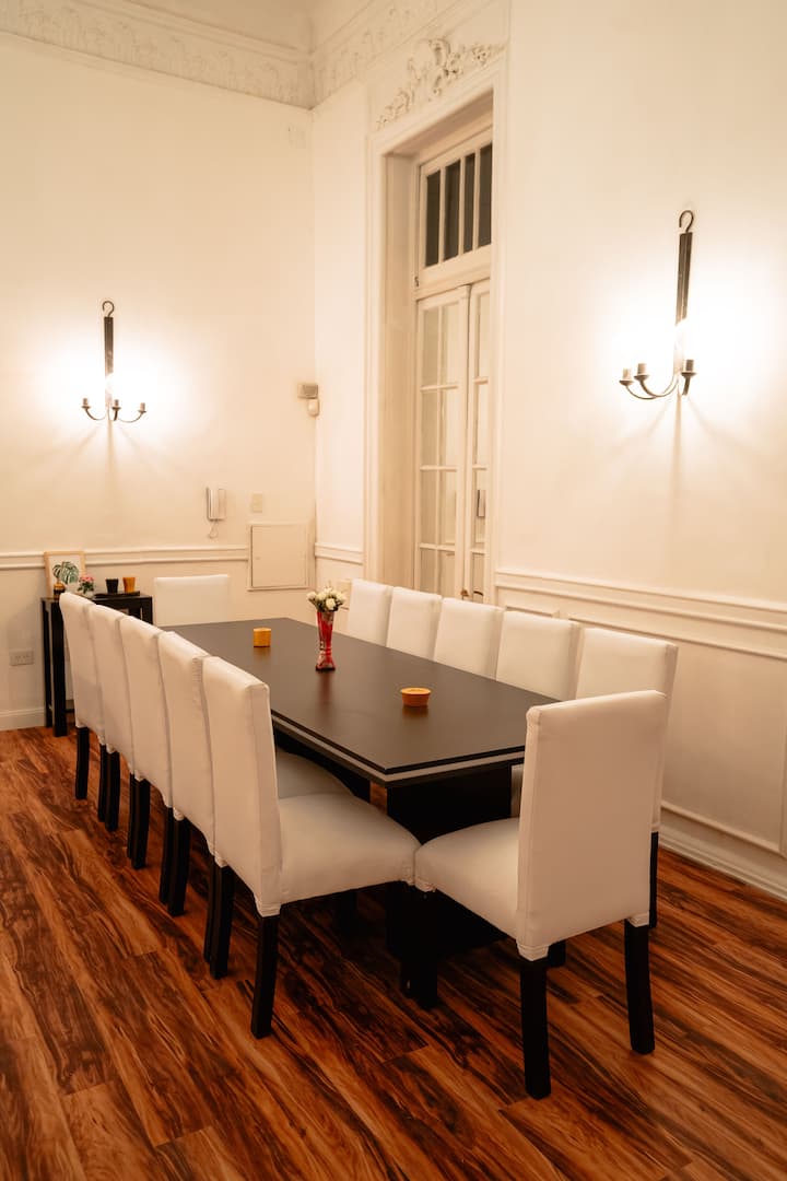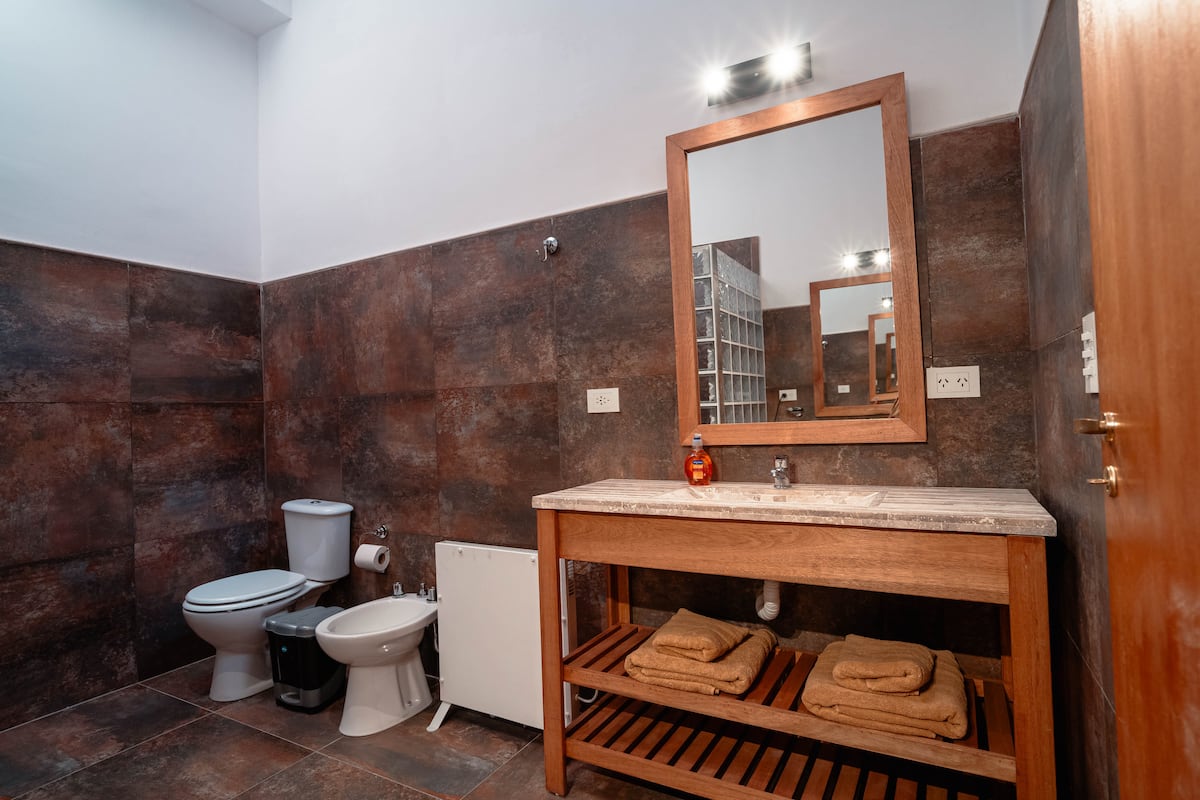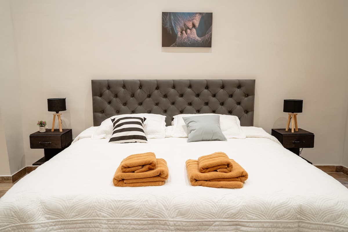 Renovated apartment with 700 m², configured as a six-bedroom mansion in Retiro. Each of the 6 bedrooms has an en-suite bathroom, with sleeping capacity for up to 19 people. Entertainment and connectivity include LED TVs with Netflix and Amazon in each bedroom, 75" Samsung TVs in the living room and on the rooftop terrace, and high-speed internet with a router on each floor. The rooftop terrace has a jacuzzi, outdoor shower, grill, covered bar area and a half bathroom.