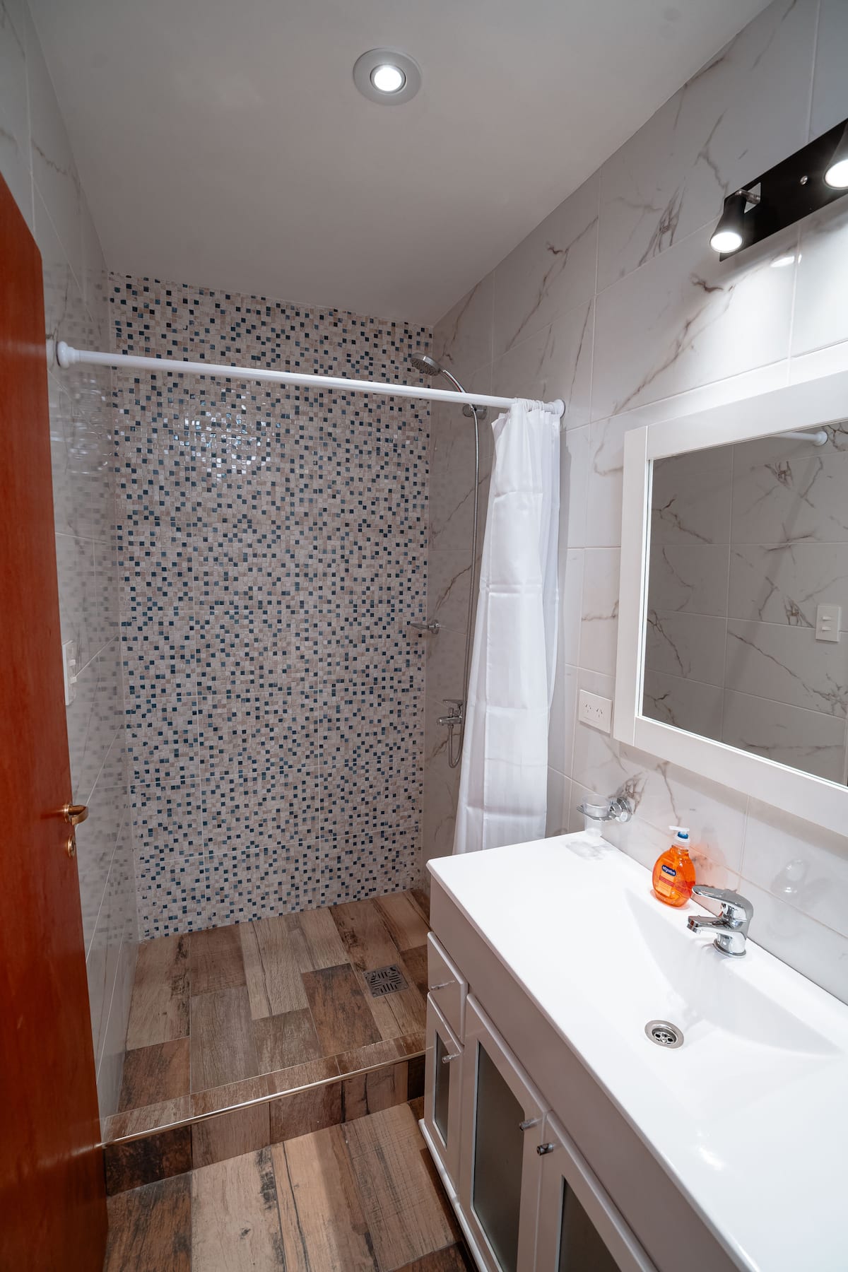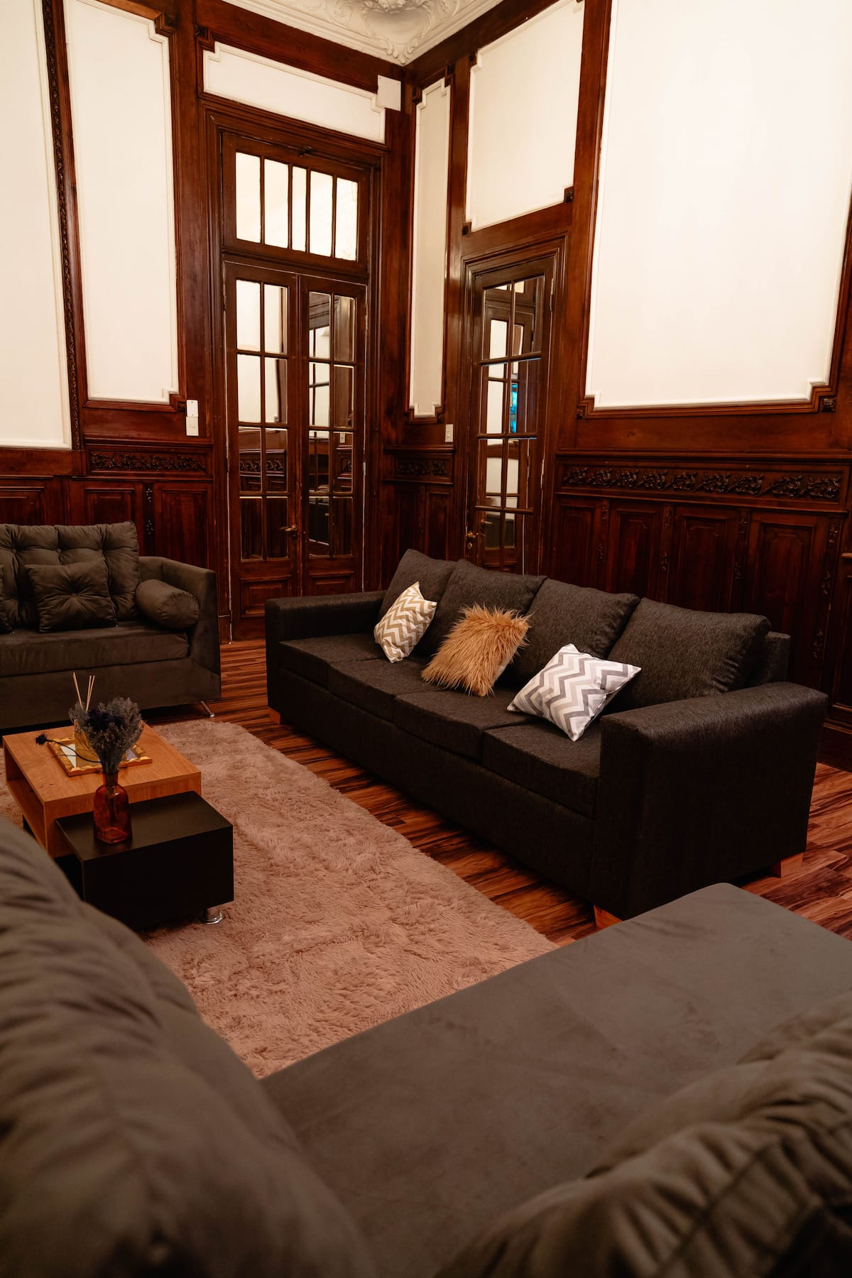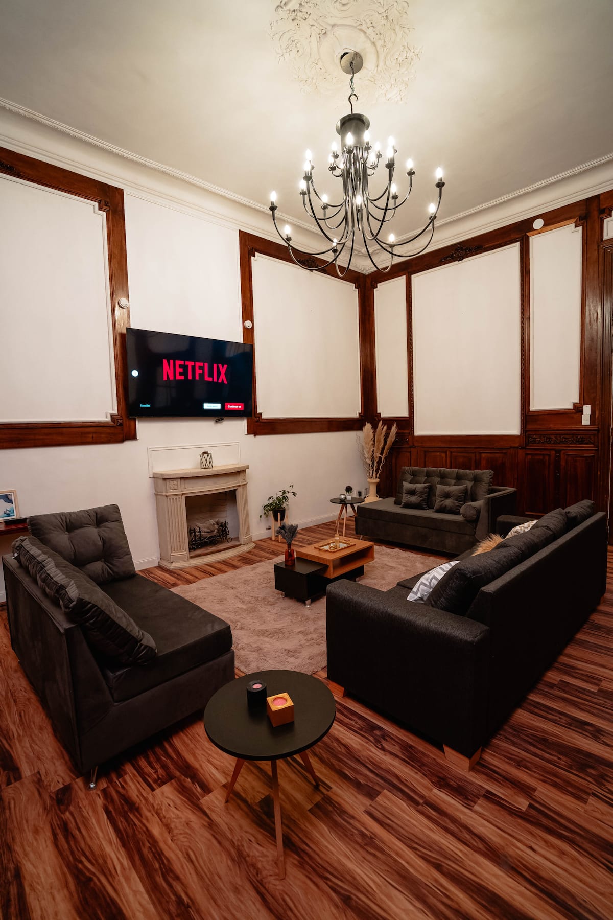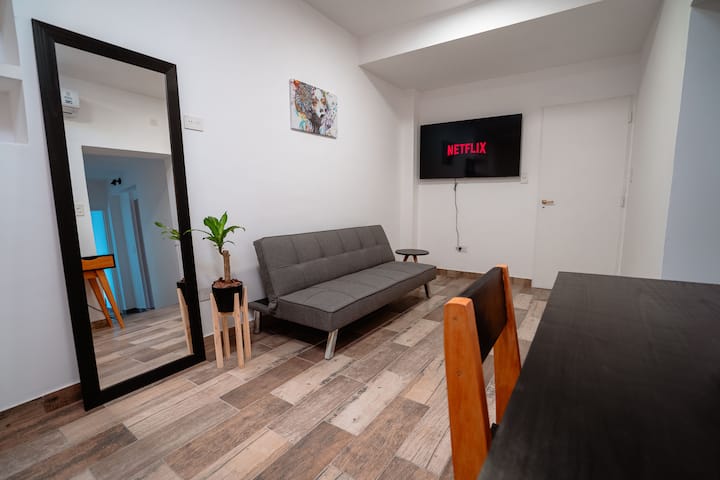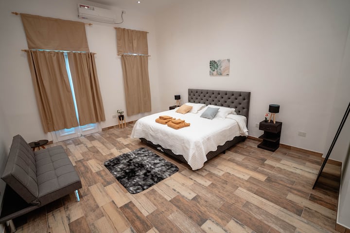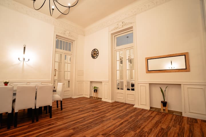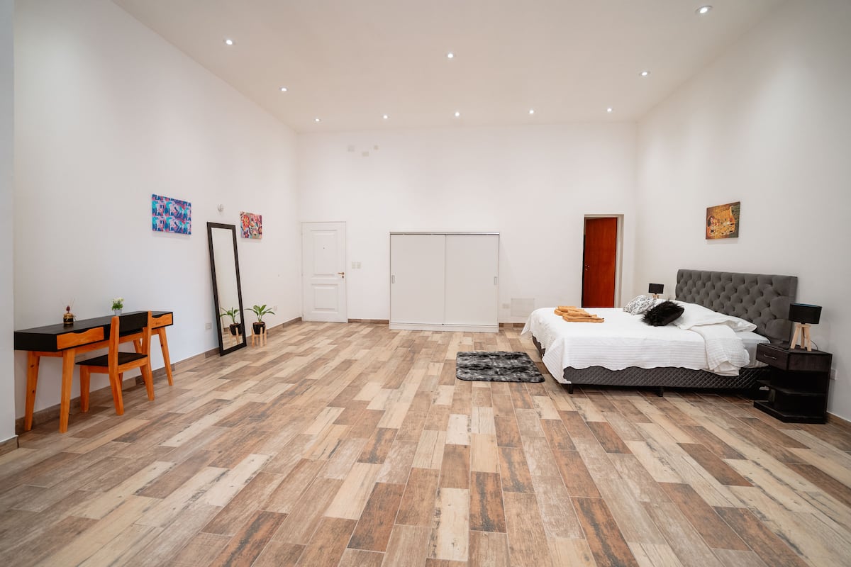 Renovated apartment with 700 m², configured as a six-bedroom mansion in Retiro. Each of the 6 bedrooms has an en-suite bathroom, with sleeping capacity for up to 19 people. Entertainment and connectivity include LED TVs with Netflix and Amazon in each bedroom, 75" Samsung TVs in the living room and on the rooftop terrace, and high-speed internet with a router on each floor. The rooftop terrace has a jacuzzi, outdoor shower, grill, covered bar area and a half bathroom.