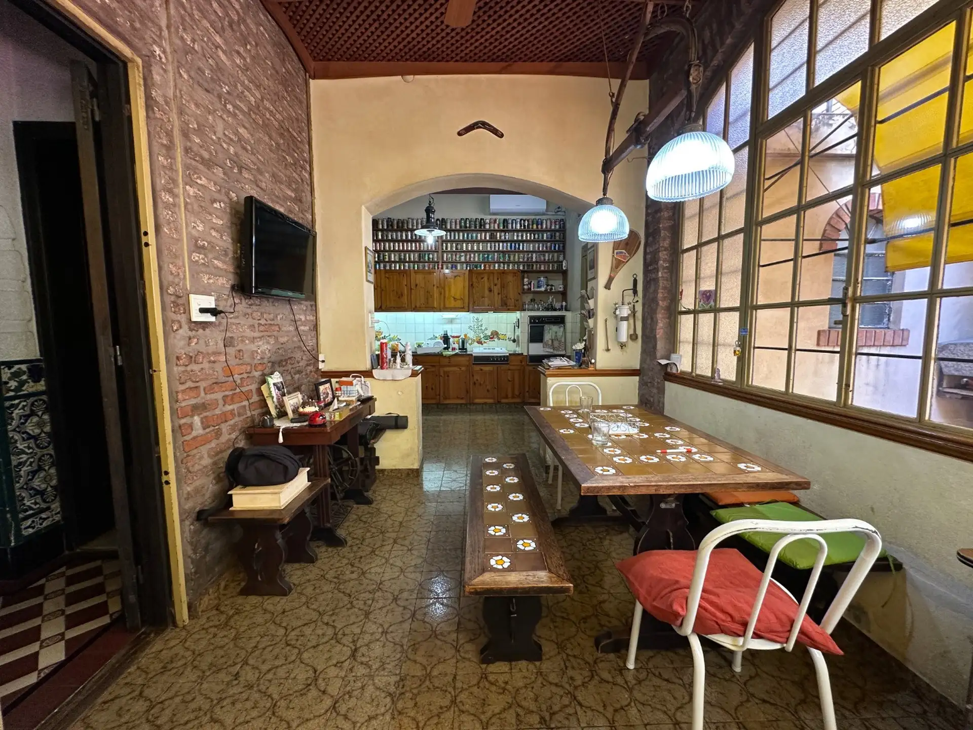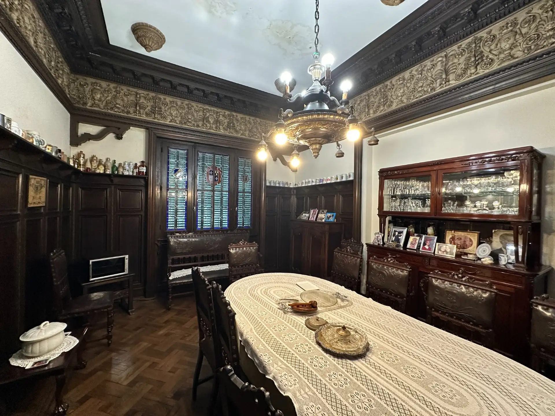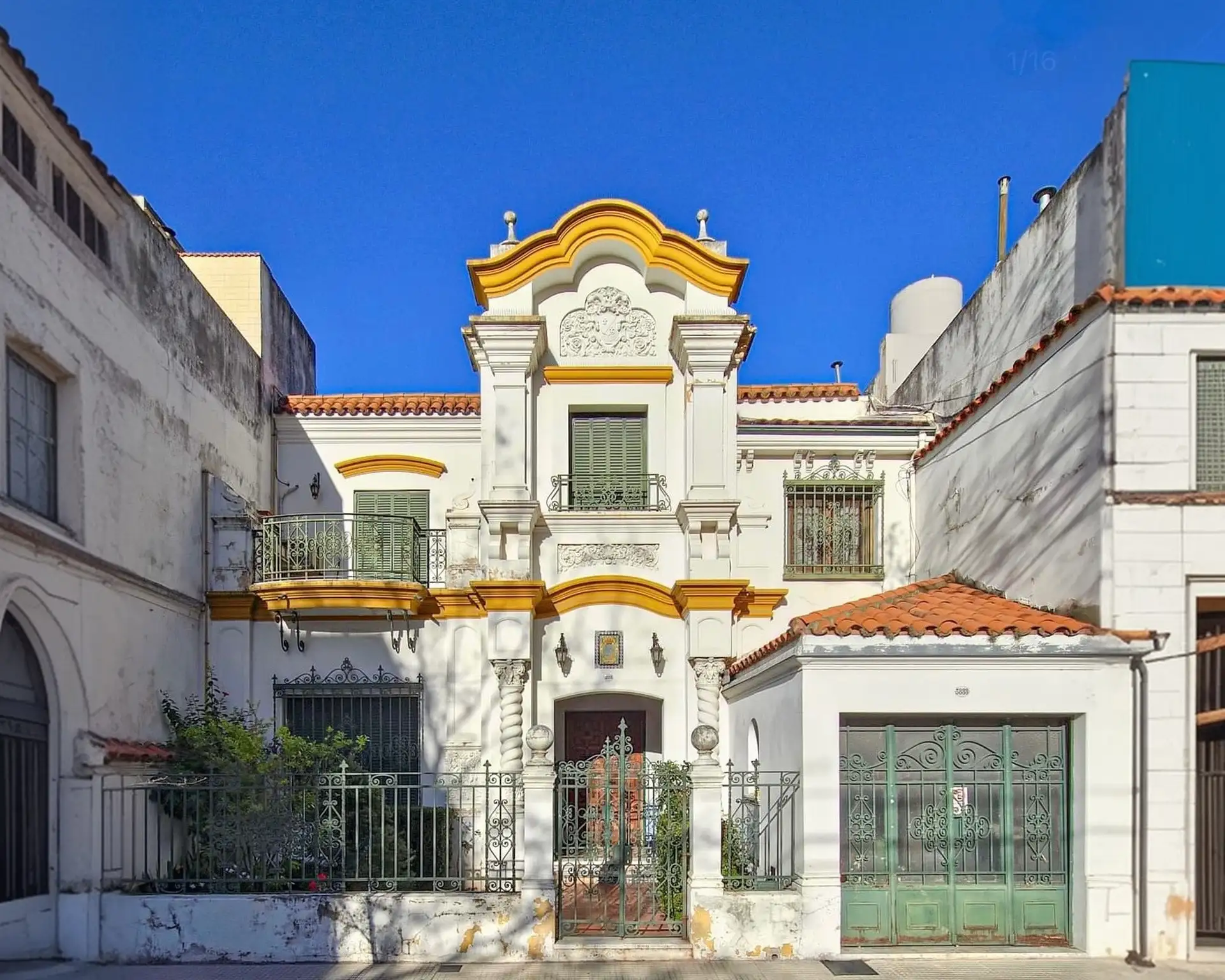 Neocolonial house built around 1930 by the architects-builders Arriaga and Tomassoni. 5 bedrooms, 1 full bathroom, a separate toilet, a service room with bathroom, laundry area, a large separate kitchen and daily dining room, and an independent main dining area. Living room with a functioning fountain, garage, 30 m² rear patio, 6 m² terrace, 29 m² front garden, front balcony, and storage room under the stairs. White render with mouldings in ochre, colonial tile roof, ironwork grille at the entra