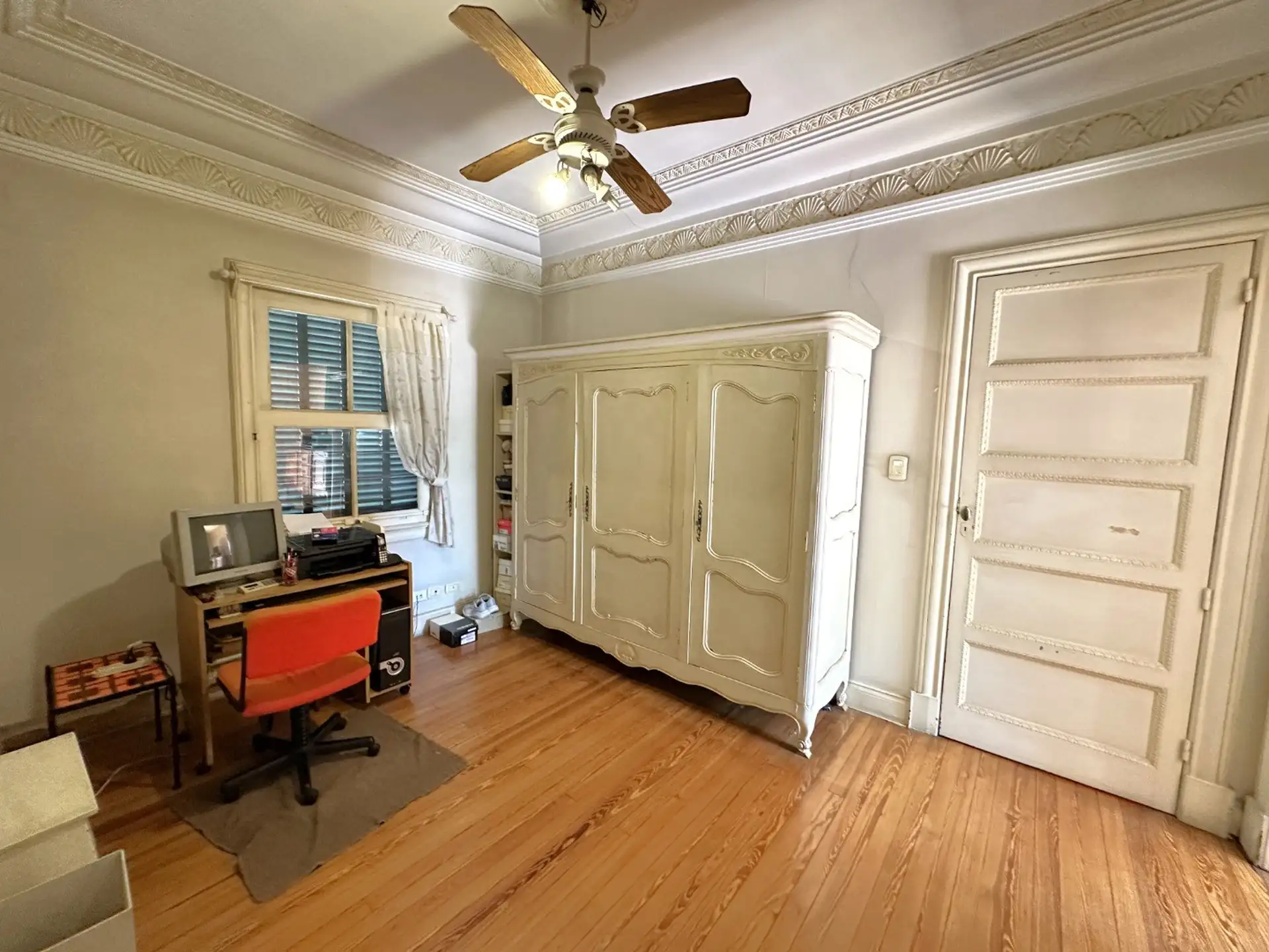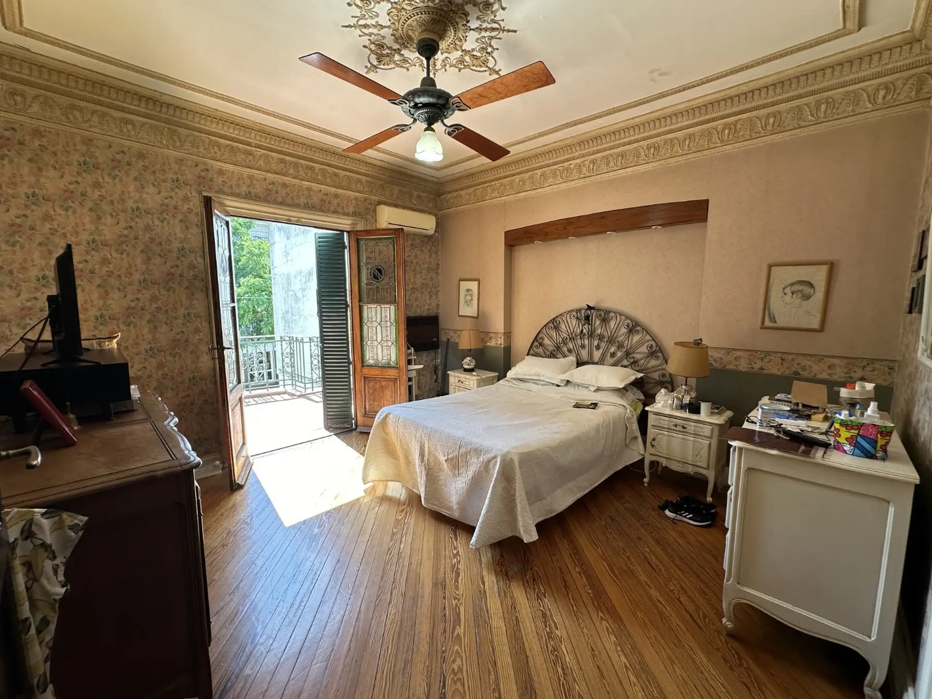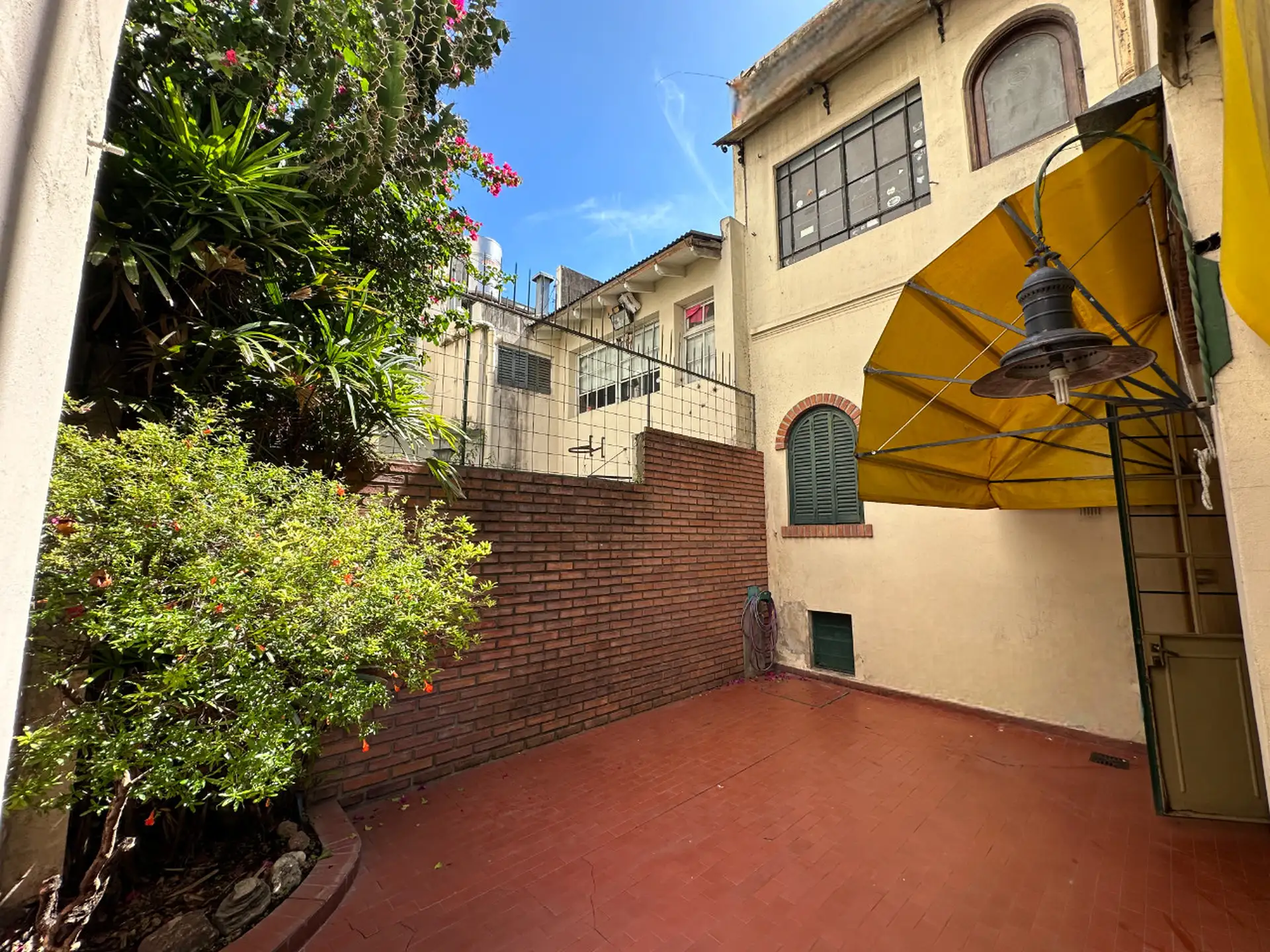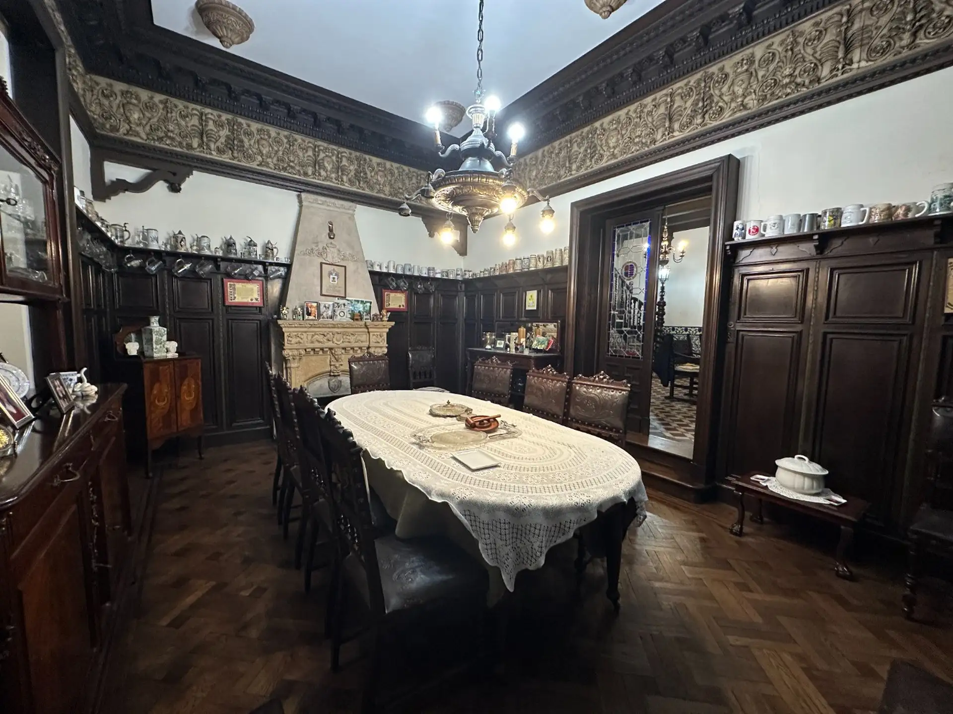 Neocolonial house built around 1930 by the architects-builders Arriaga and Tomassoni. 5 bedrooms, 1 full bathroom, a separate toilet, a service room with bathroom, laundry area, a large separate kitchen and daily dining room, and an independent main dining area. Living room with a functioning fountain, garage, 30 m² rear patio, 6 m² terrace, 29 m² front garden, front balcony, and storage room under the stairs. White render with mouldings in ochre, colonial tile roof, ironwork grille at the entra