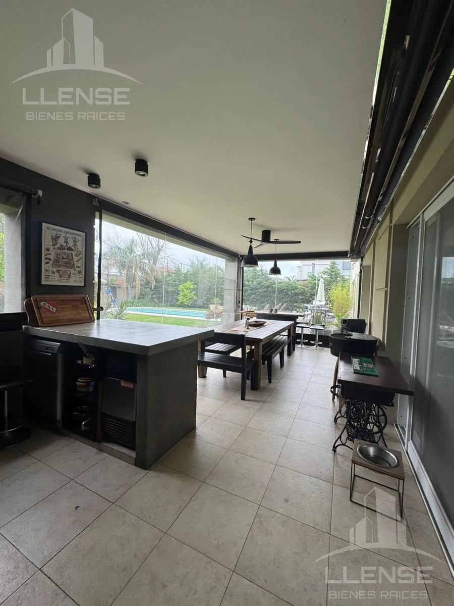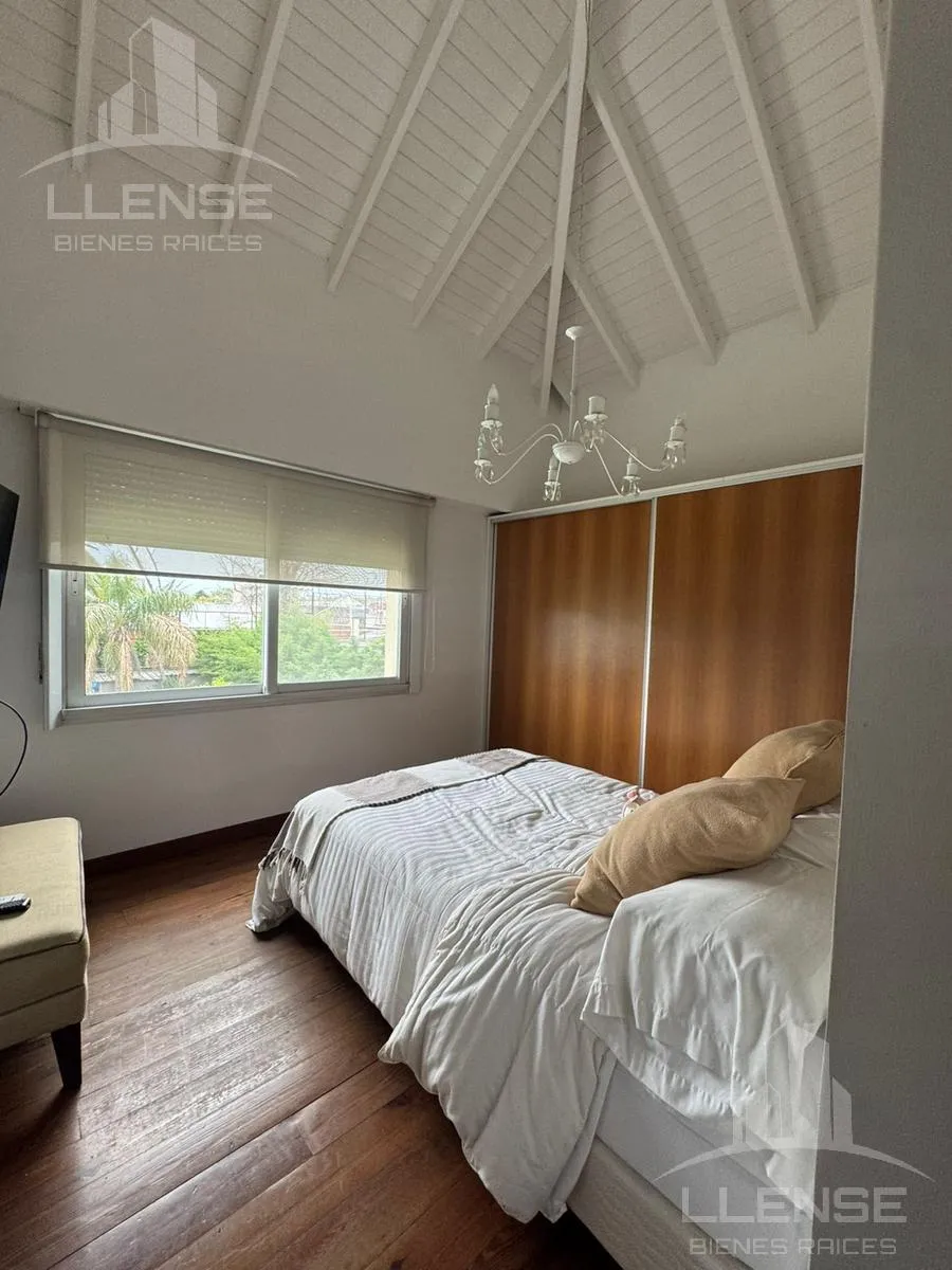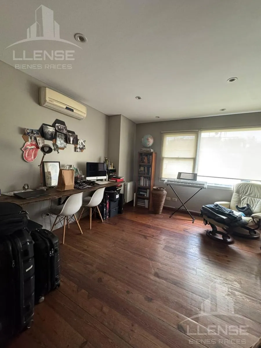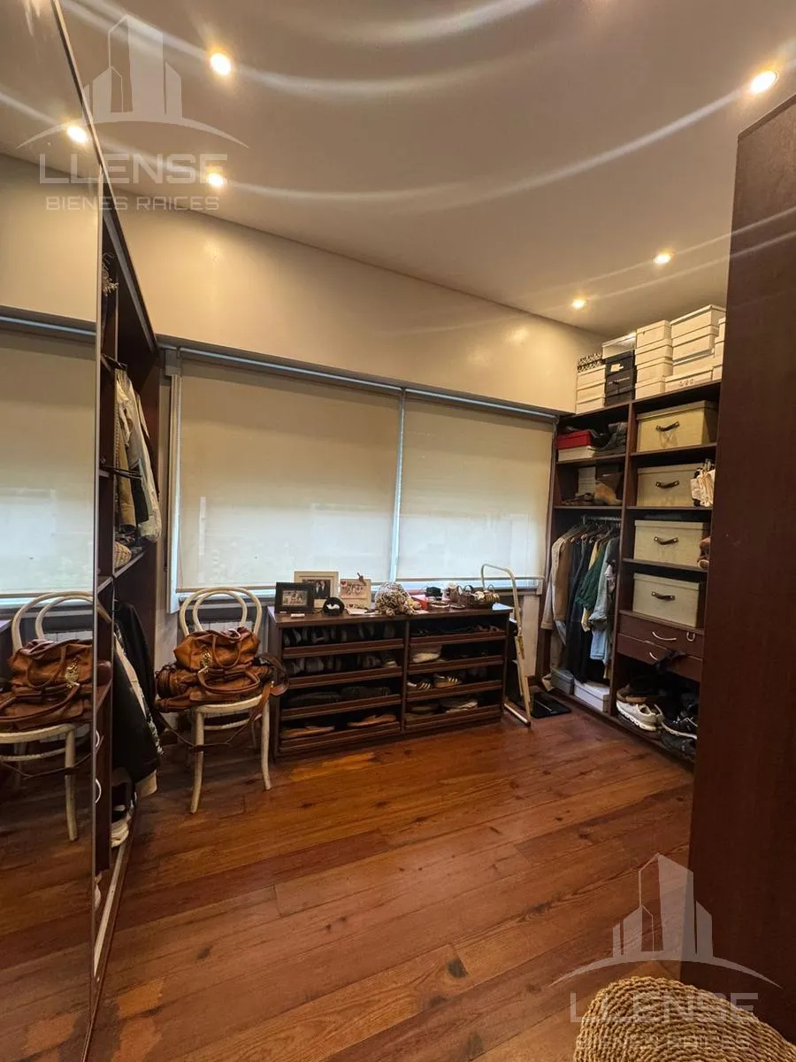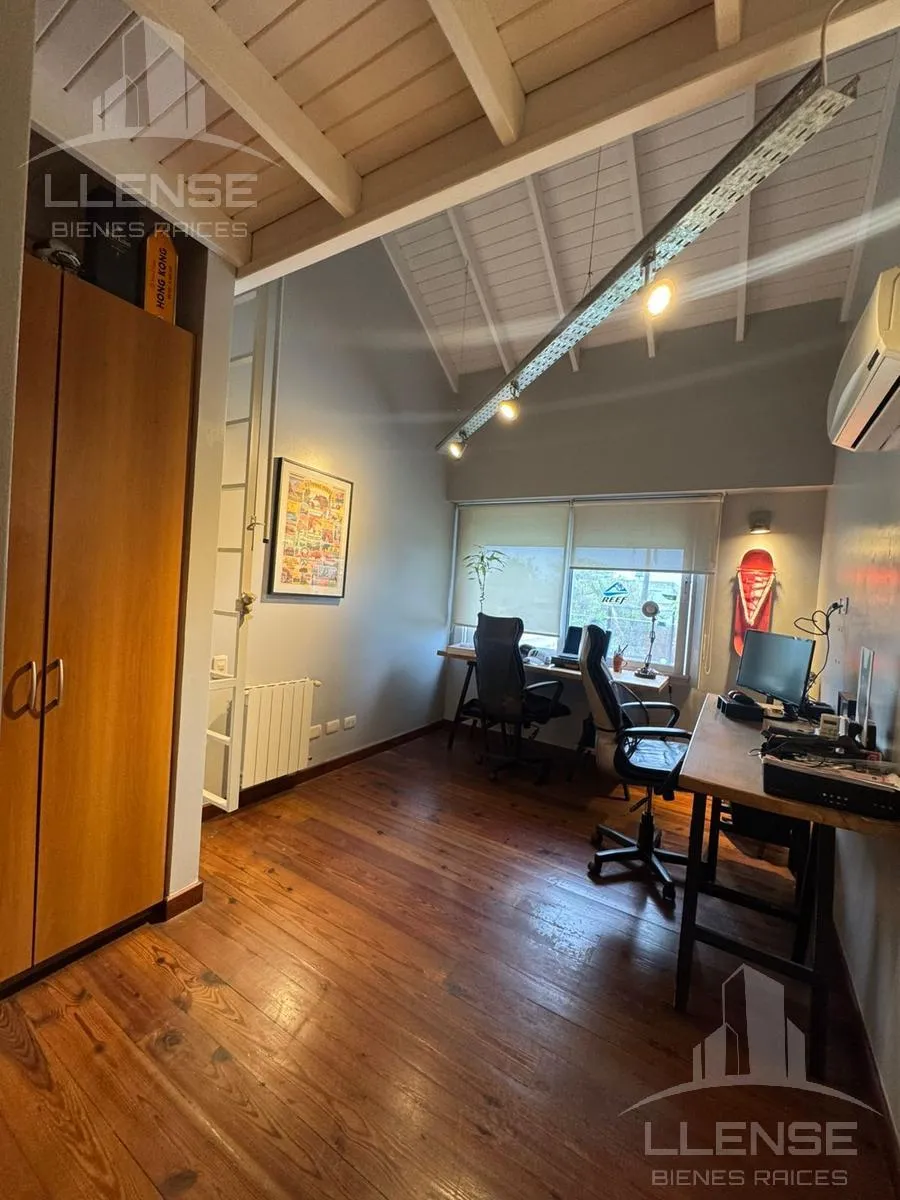 Two-storey house with 8 rooms on two lots in Barrancas de Guido, Quilmes, with a pool. Ground floor includes a living-dining room, a secondary living room, a kitchen with breakfast area, a guest toilet, a visit wardrobe, a service bedroom with a full bathroom, an independent laundry area with storage and a machine room, and a covered gallery with a grill and heating. There is enclosed parking for 2 or 3 vehicles, plus open space for 4 cars. Upper floor comprises a primary en-suite bedroom with a
