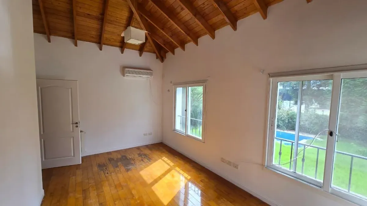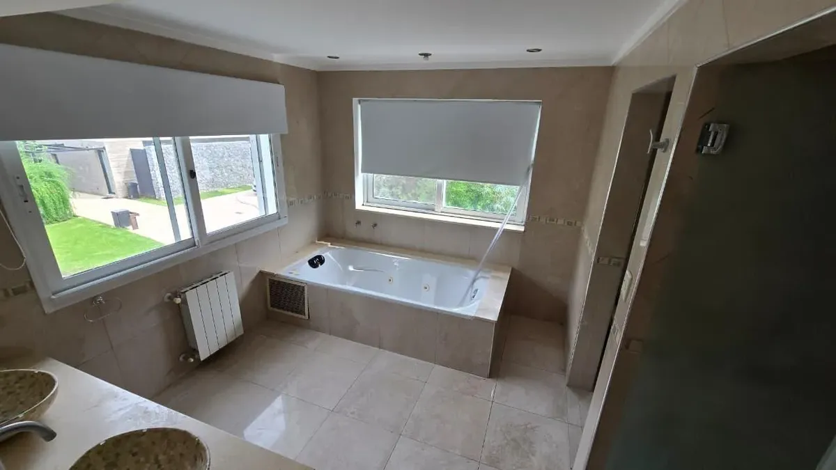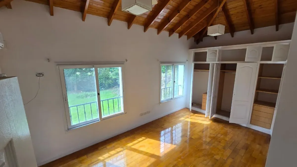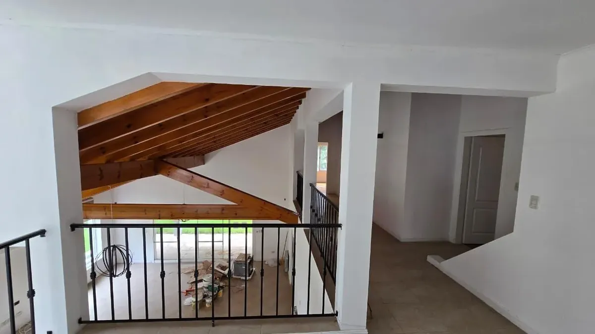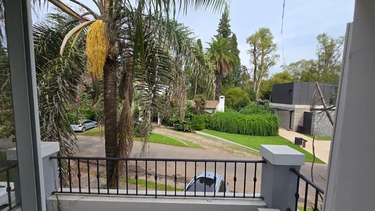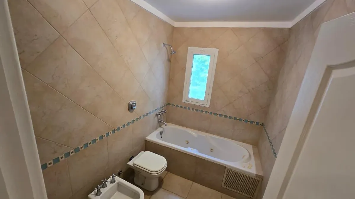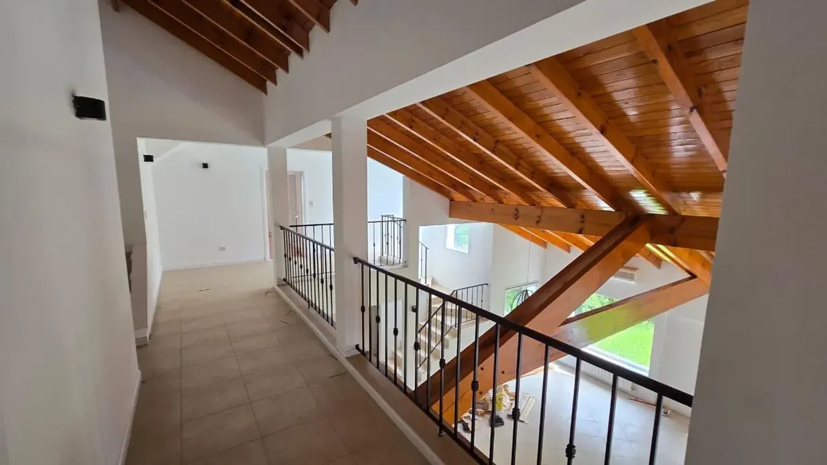 House in the private neighbourhood La Arboleda (Benavídez) in Tigre, set over two levels with 8 rooms and 6 bedrooms. The layout includes 3 suites, including a master suite with a dressing area and a private balcony, plus 6 bathrooms (including a guest toilet and a service bathroom) and separate full staff quarters with independent access. There is a playroom on the third level, a basement suited for a wine cellar or storage, and a garden with a pool and a covered grill. Heating is provided by i