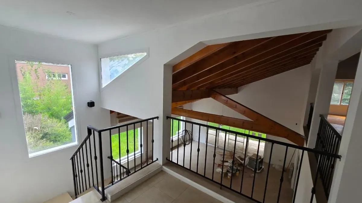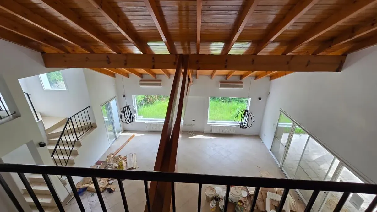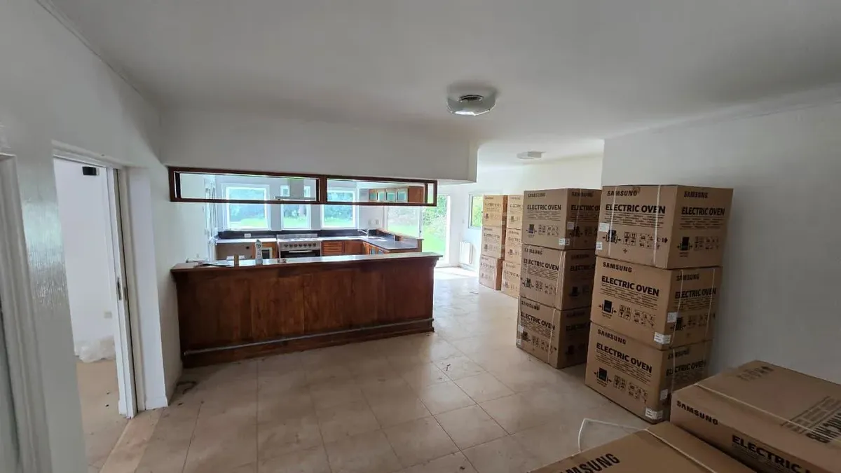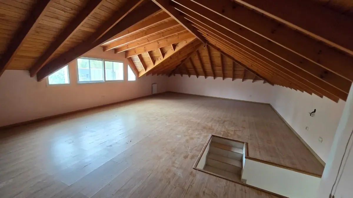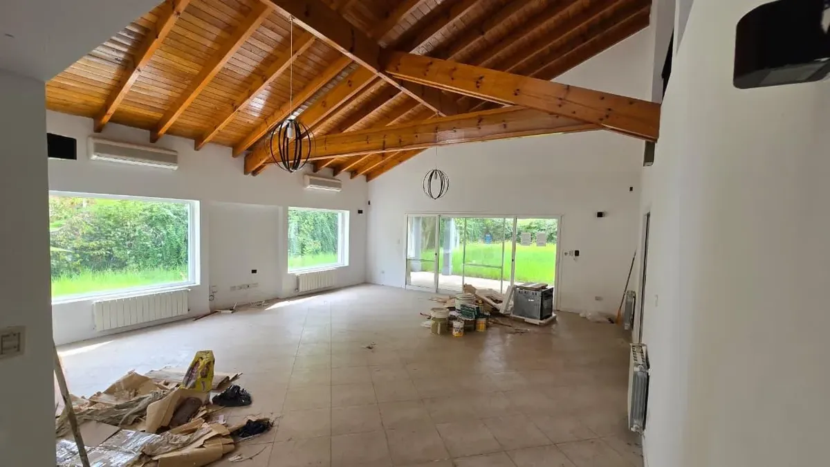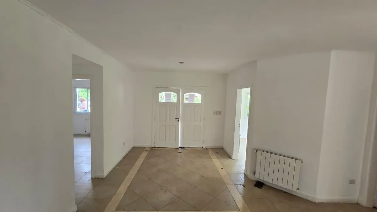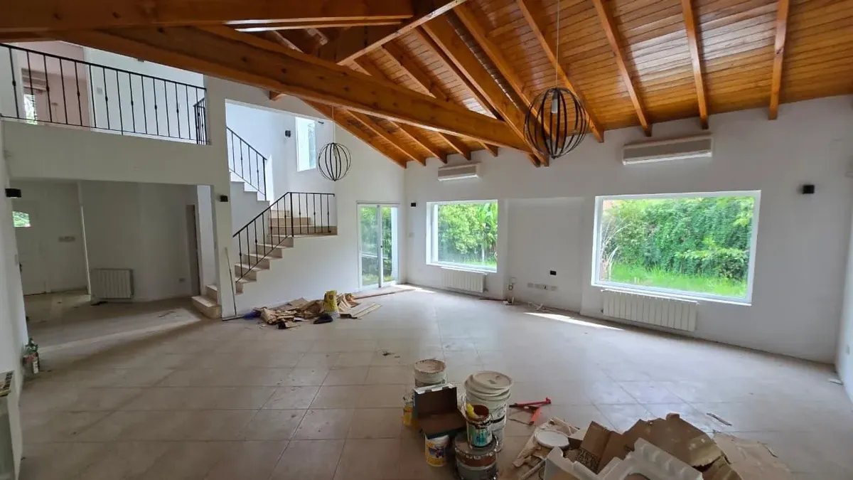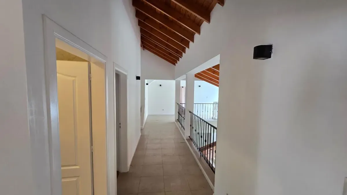 House in the private neighbourhood La Arboleda (Benavídez) in Tigre, set over two levels with 8 rooms and 6 bedrooms. The layout includes 3 suites, including a master suite with a dressing area and a private balcony, plus 6 bathrooms (including a guest toilet and a service bathroom) and separate full staff quarters with independent access. There is a playroom on the third level, a basement suited for a wine cellar or storage, and a garden with a pool and a covered grill. Heating is provided by i