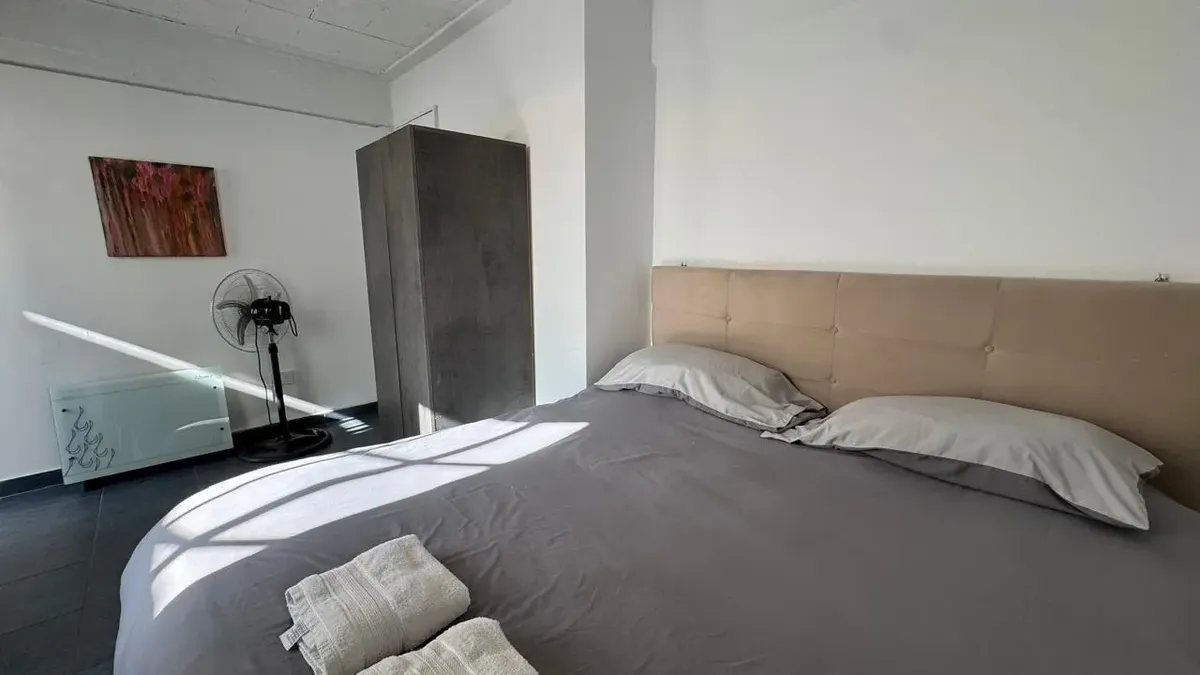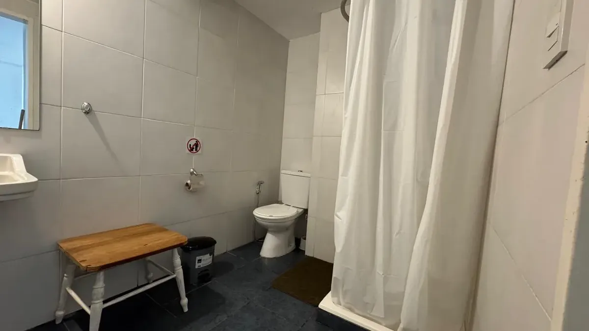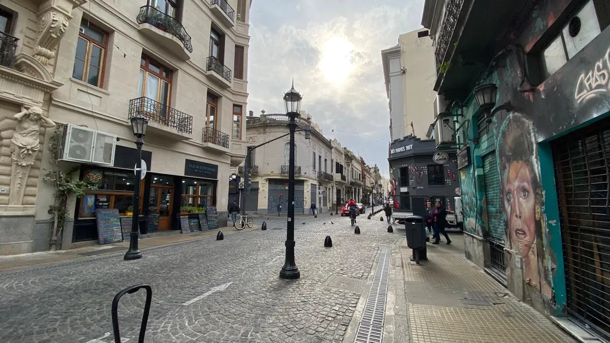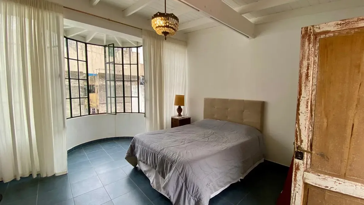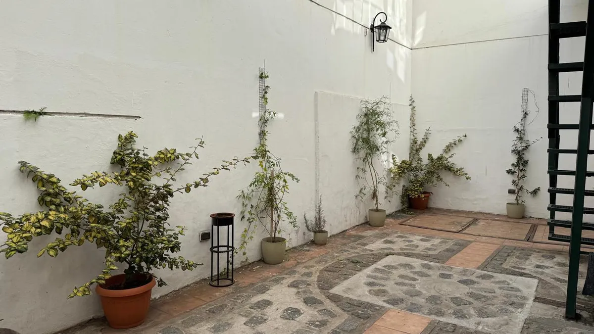 Daily rental house in San Telmo with capacity for 20 guests. The property has 8 private rooms and 4 bathrooms, with 3 rooms and 1 bathroom on the ground floor. The layout includes a patio area with stairs to a fourth room with a private bathroom, 3 additional rooms with a bathroom on the upper floor, and one further room with a bathroom on the top floor. Beds include double and single options; the kitchen and terrace include a grill (parrilla) and a gas oven. Wi-Fi covers the entire house, and t