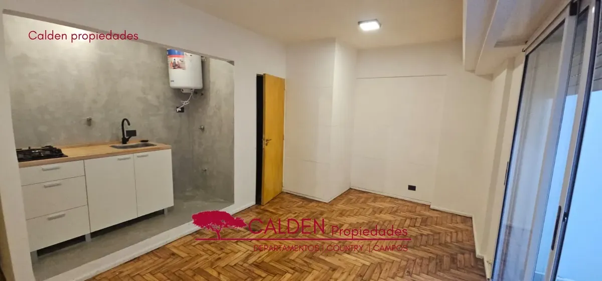 Studio apartment of 25 m² for rent in Balvanera. The unit combines a living-dining area with a kitchenette and has access to an interior courtyard patio for ventilation and natural light. There is a full bathroom in good condition.