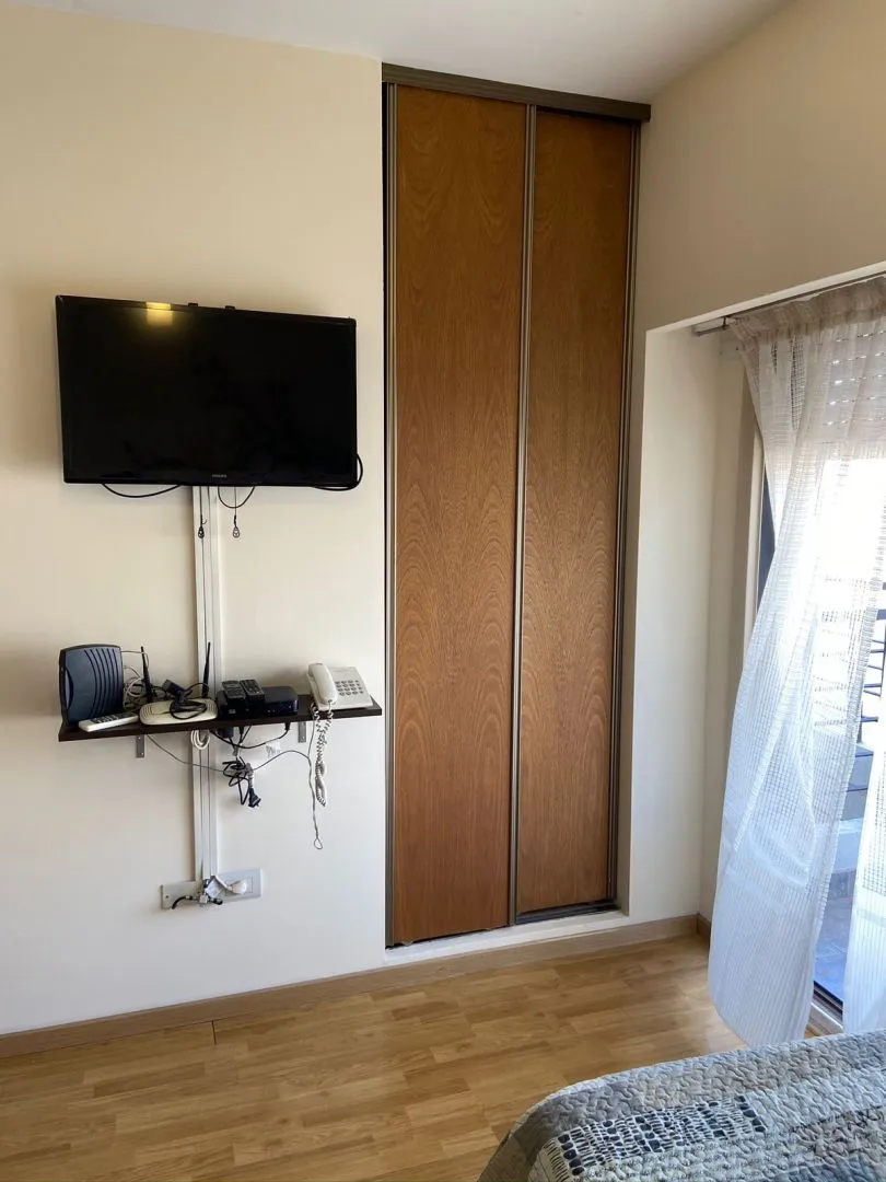 Studio apartment in Almagro for short-term rental, about 25 m², fully refurbished. Studio with kitchenette and balcony, furnished with 2 single mattresses, a table with 2 chairs and a 32-inch LCD TV, plus a DVD player and a music centre. Electric oven, microwave, electric cooktop, built-in under-counter fridge, and shower bathroom. Building fees and utilities are paid in addition to the rent: electricity, water and cable/internet are covered by the tenant.