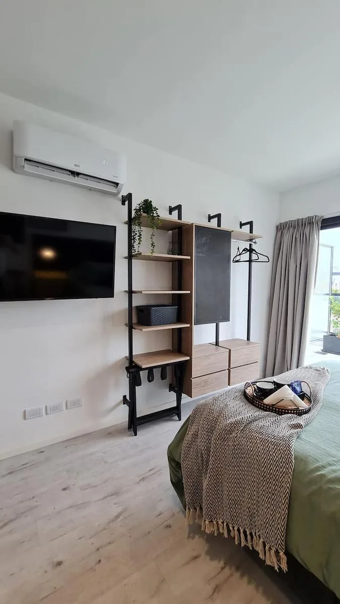 Studio apartment for rent in Almagro, on Guardia Vieja between Bulnes and Mario Bravo. On the 5th/6th level by elevator, street-facing with northeast orientation. Approximately 37 m² total, of which 35 m² are covered. Equipped kitchen with upper and lower cabinets, main room with built-in storage, and a full bathroom. Includes a balcony and air conditioning.