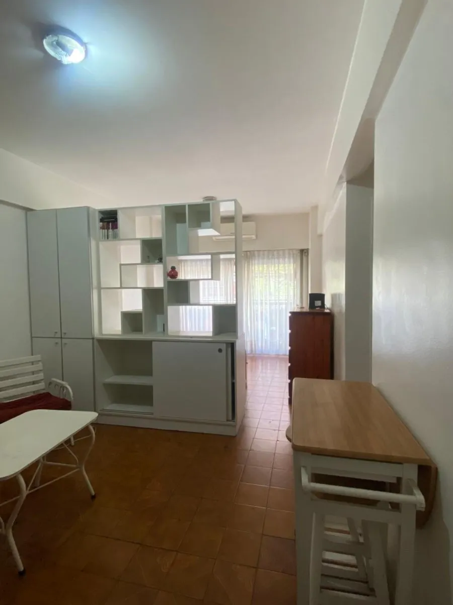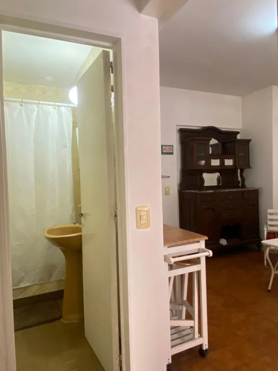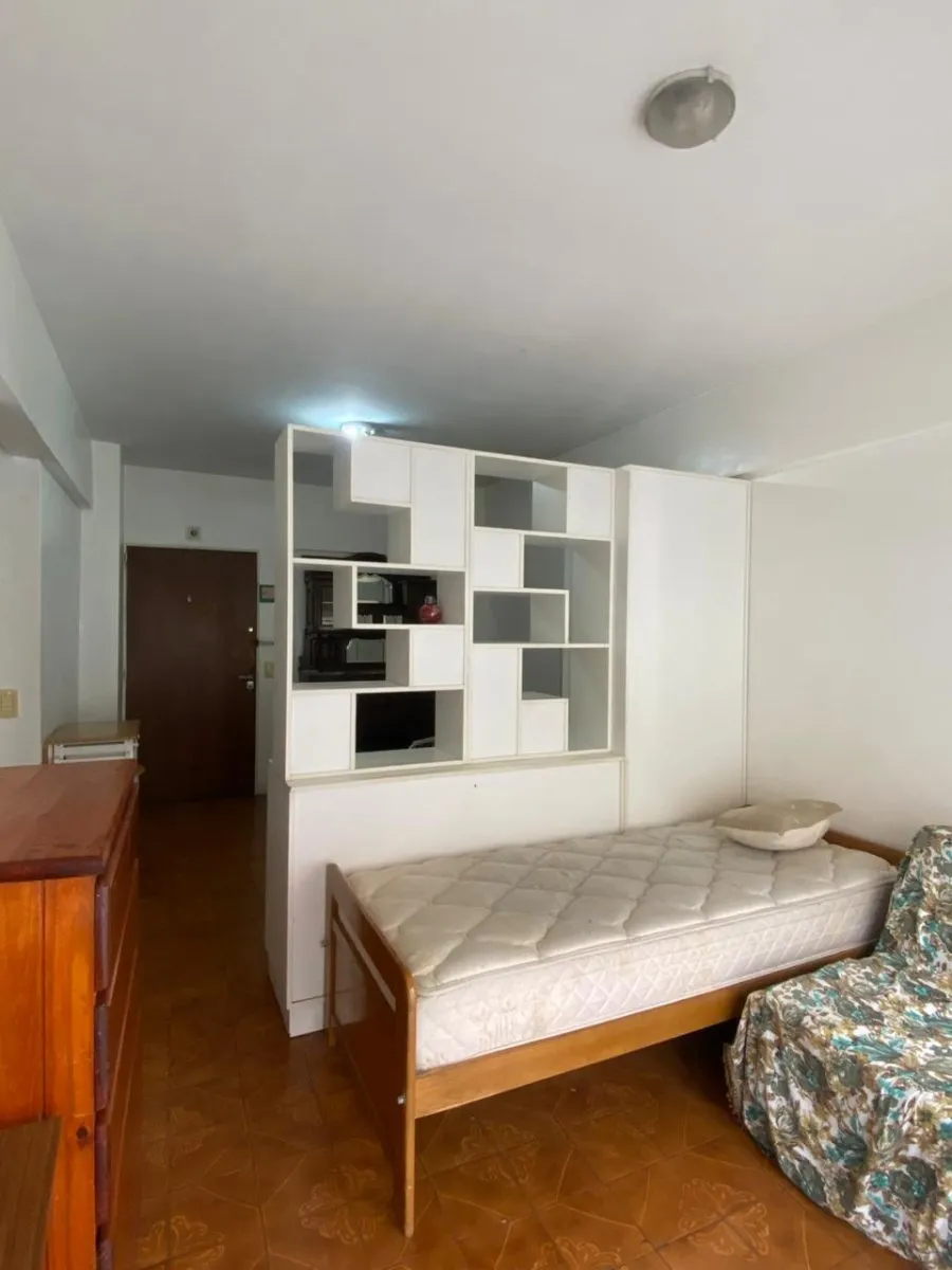 Furnished studio apartment with separate kitchen, street-facing balcony and full bathroom. The unit includes a fridge, washing machine, microwave and air conditioning. Located a short distance from Av. Estado de Israel.