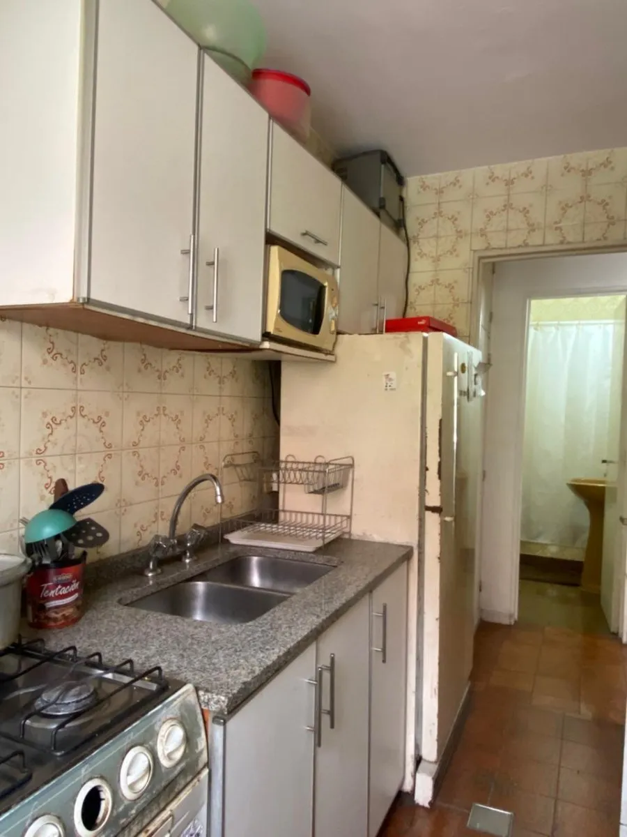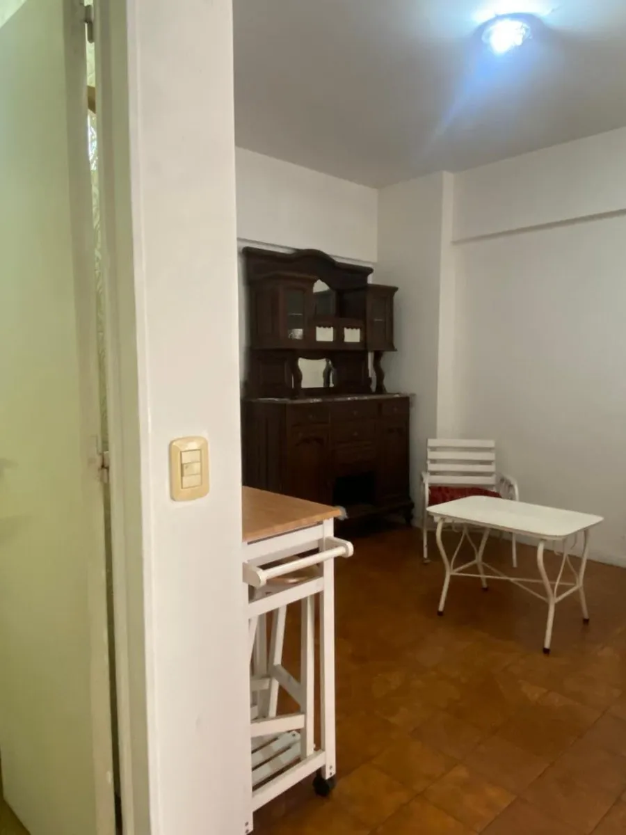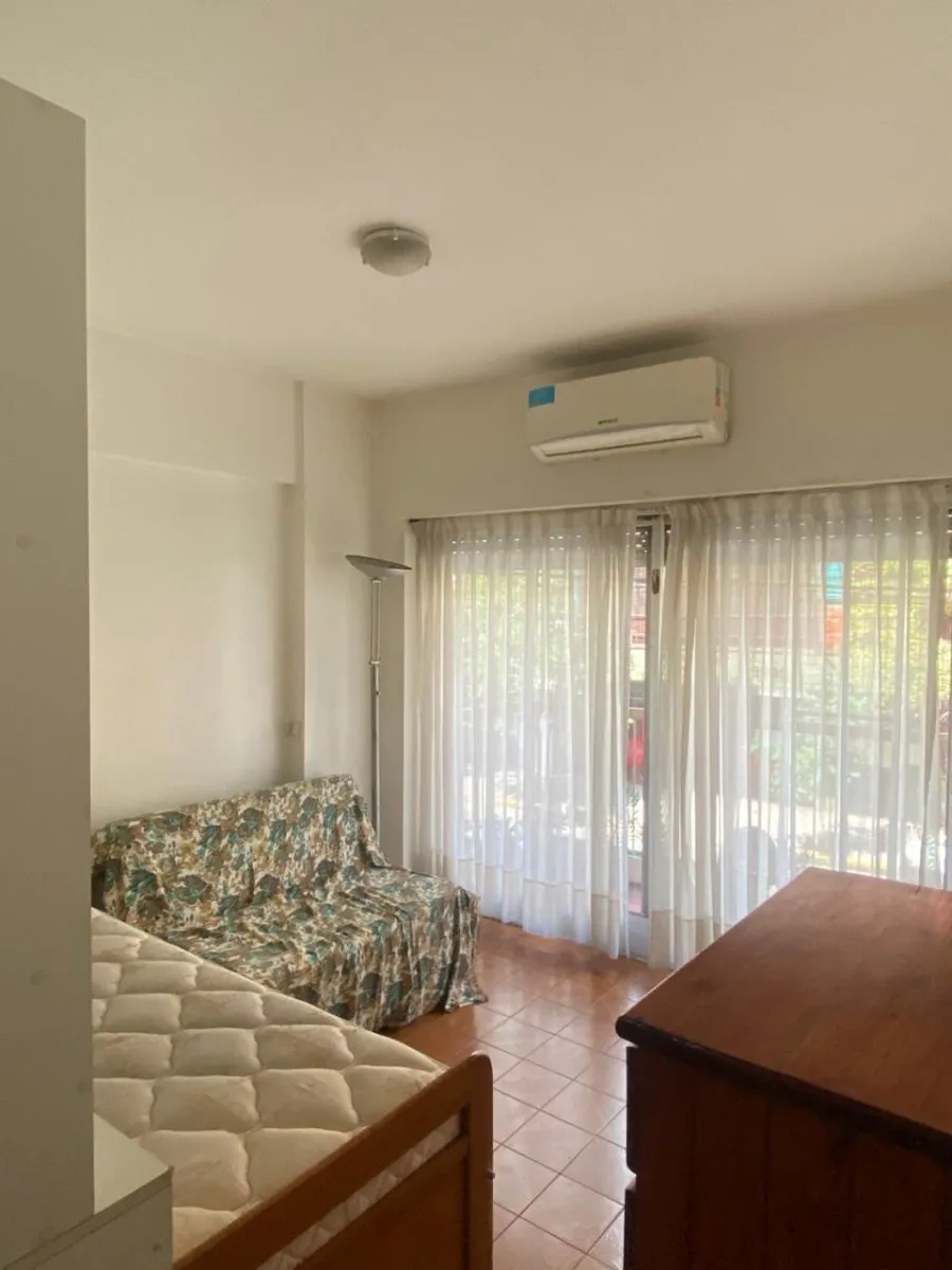 Furnished studio apartment with separate kitchen, street-facing balcony and full bathroom. The unit includes a fridge, washing machine, microwave and air conditioning. Located a short distance from Av. Estado de Israel.