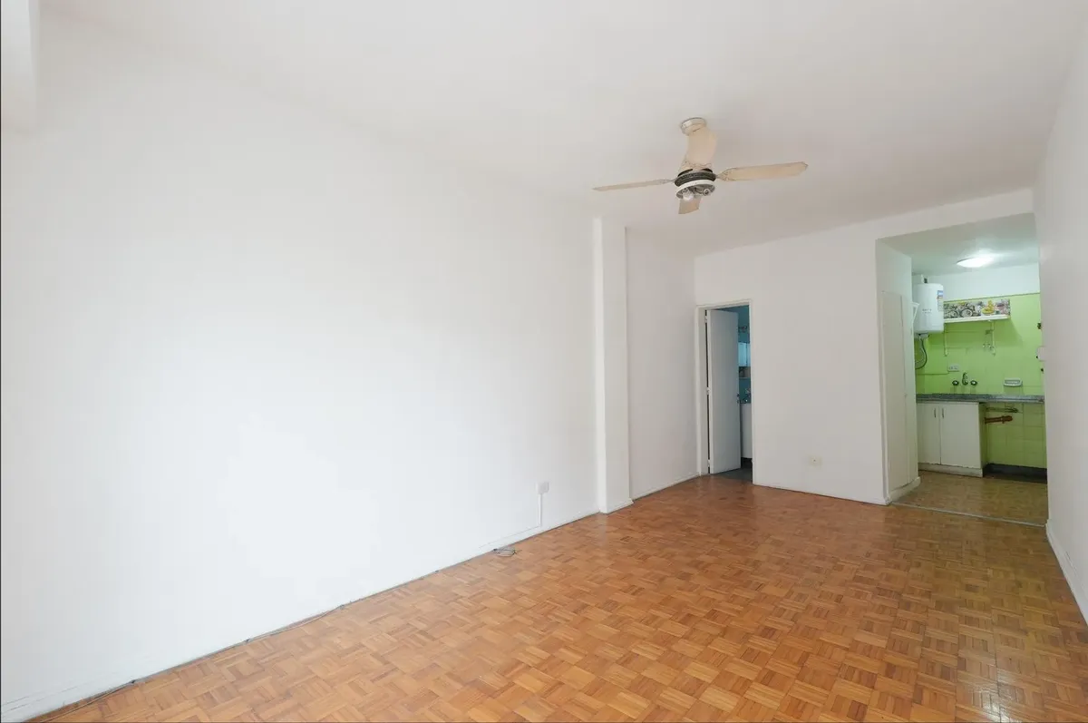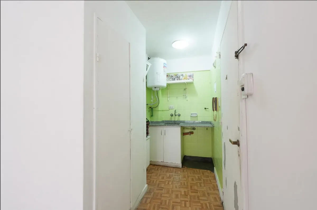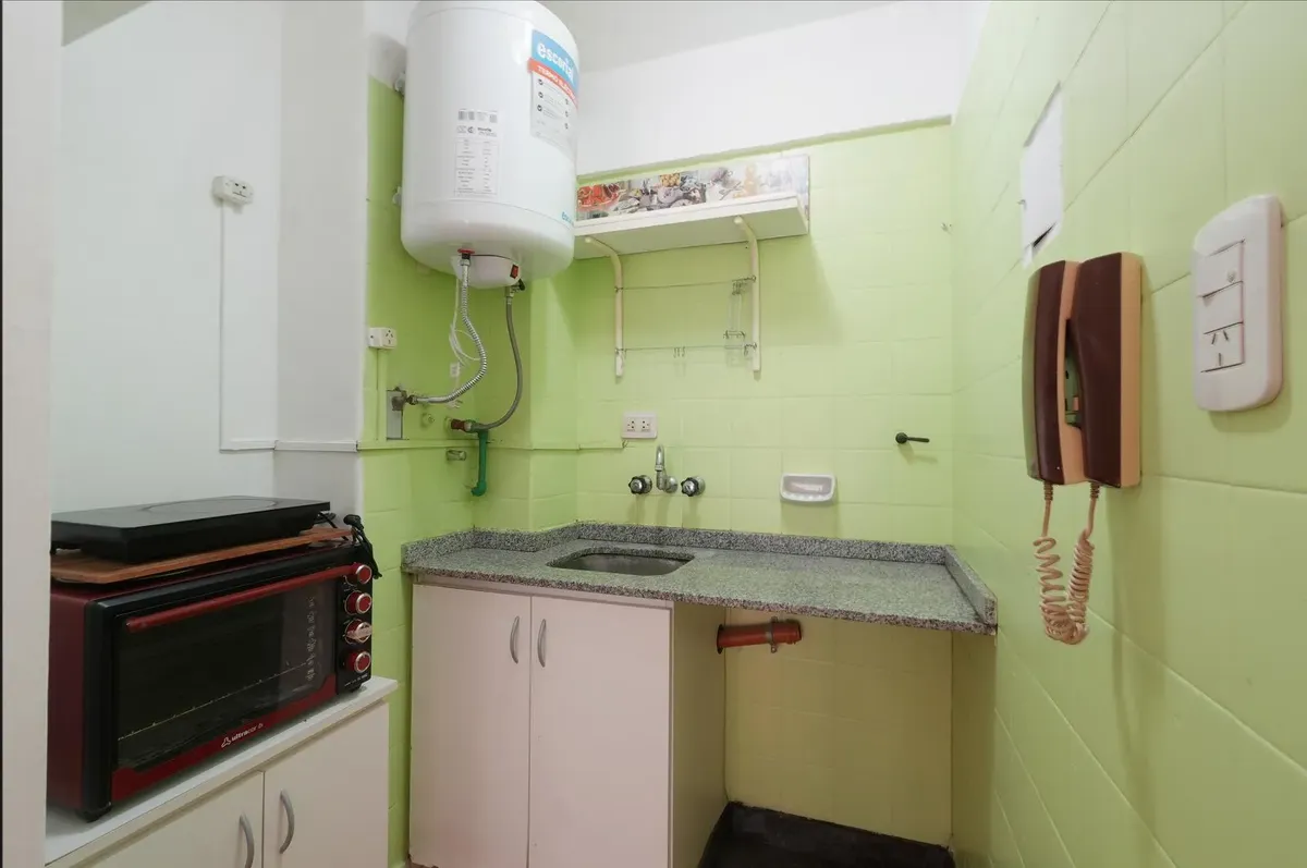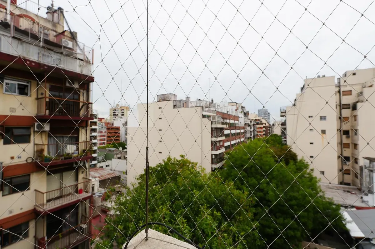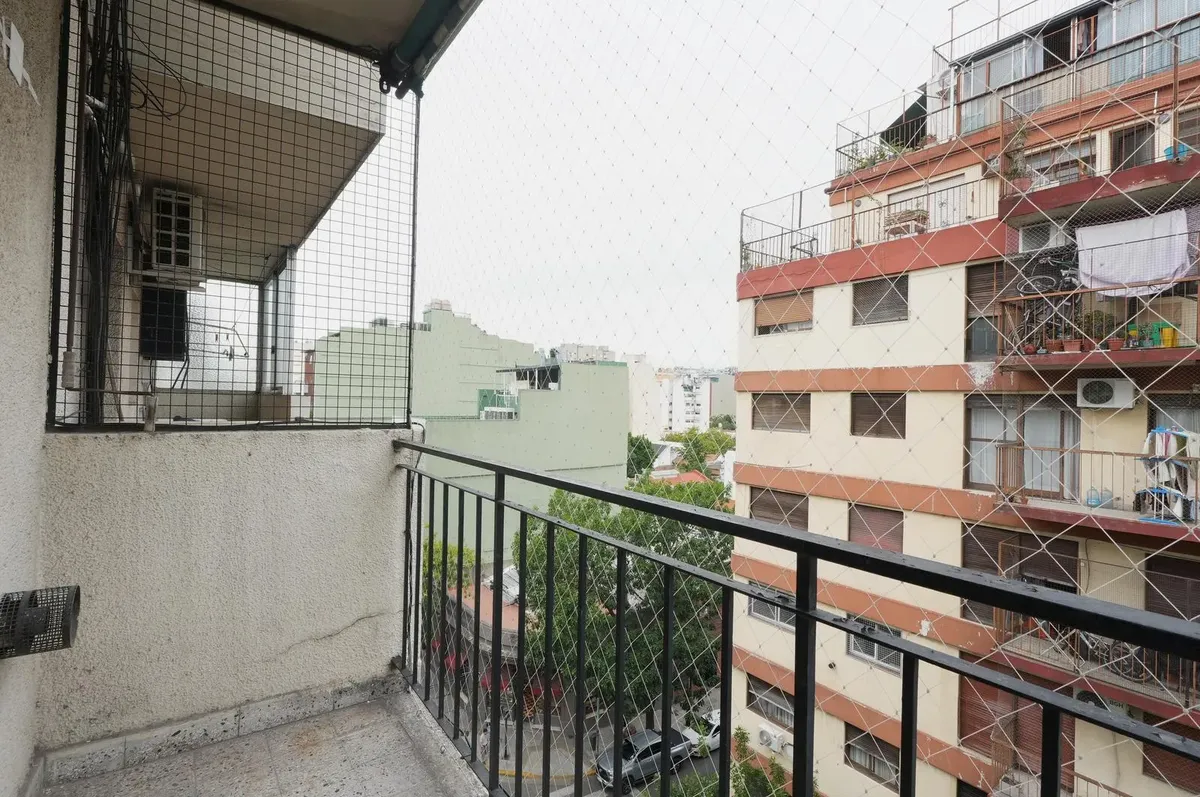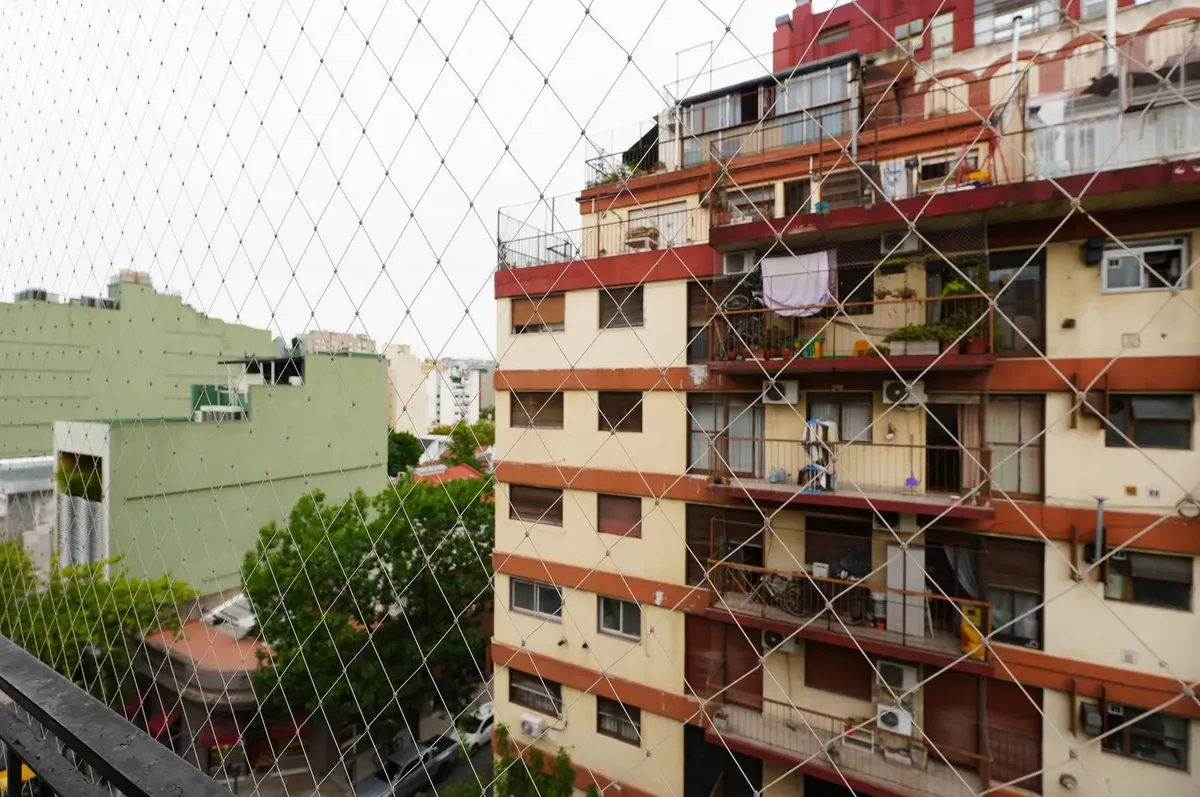 Studio apartment with a balcony, on the 6th floor. The main room measures 3 x 5.80 m and can be left open or divided. Electric water heater (termotanque), electric cooktop (anafe) and electric oven (hornito), and a ceiling fan. The balcony glazing has a roller shutter and a pet protection net. Building fees are 92,000 ARS, with AYSA at 18,000 ARS and ABL at 10,000 ARS. Rental guarantee bond requires a CABA owner guarantor or a Seguro de Caucion. Contract is for 2 years with quarterly adjustment
