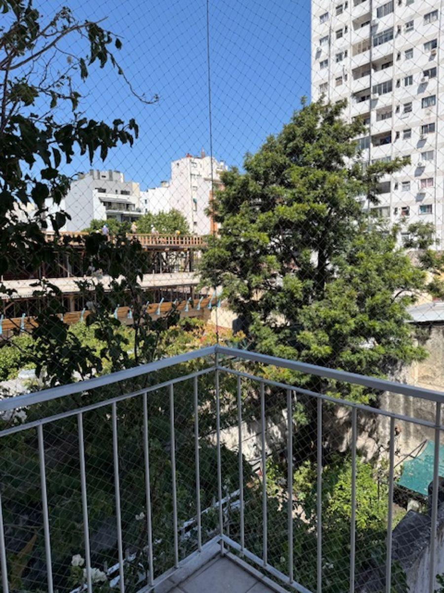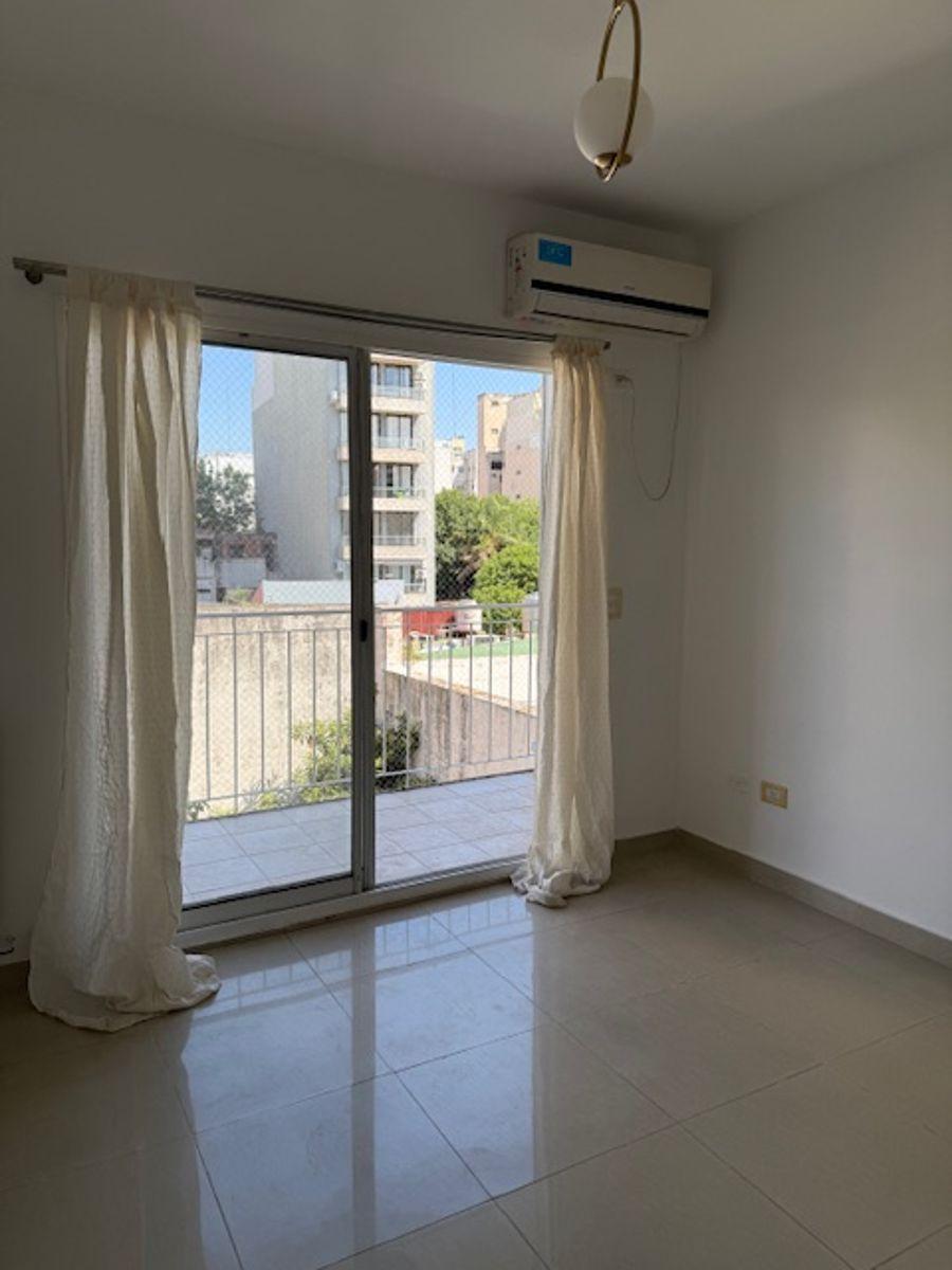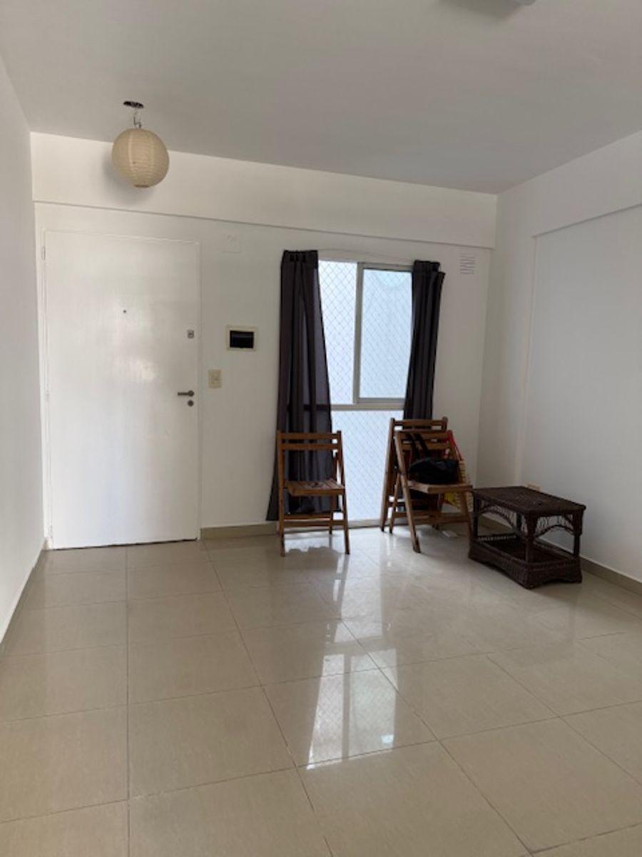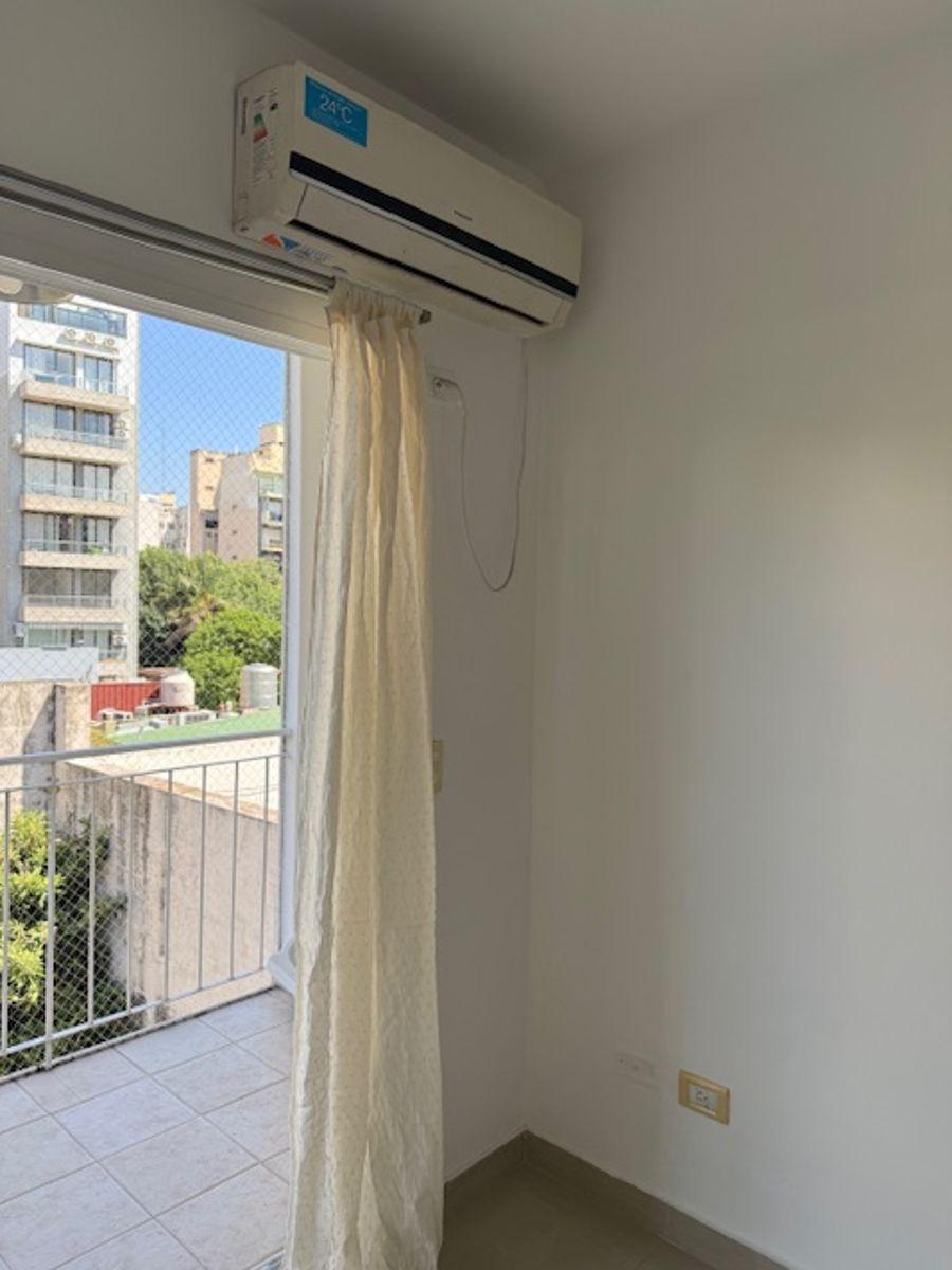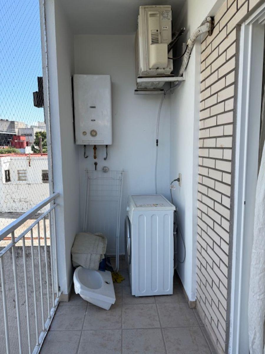 Studio apartment for rent in Almagro Norte with 1 bathroom. The unit has an integrated kitchen and a balcony facing the courtyard (contrafrente). It measures 31 m² covered and 35 m² total, and is in a building with 10 floors, lift access and facilities for people with reduced mobility. Amenities include a communal residents' lounge (SUM) and a grill area. The apartment has cold/warm air conditioning, balanced-flue heating and a gas water heater (calefón), plus a washing machine; building fees in
