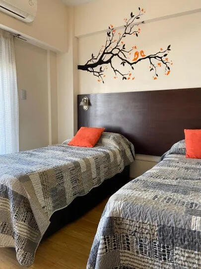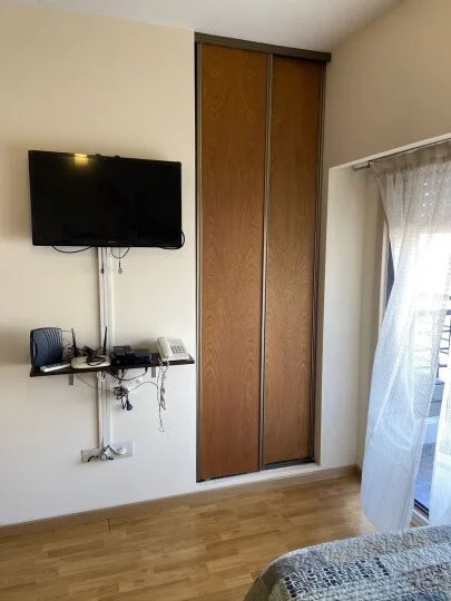 Studio apartment of 25 m² in Almagro, Buenos Aires. Fully refurbished and in good condition, with a kitchenette equipped with an electric oven, electric hot plate, microwave and under-counter fridge. The main room opens to a balcony and includes two single beds, a table with two chairs, a 32-inch LCD TV, a music centre, DVD player and a phone. Full bathroom with shower. Rent excludes building fees and utilities, which are paid by the tenant (electricity, water, cable and internet).