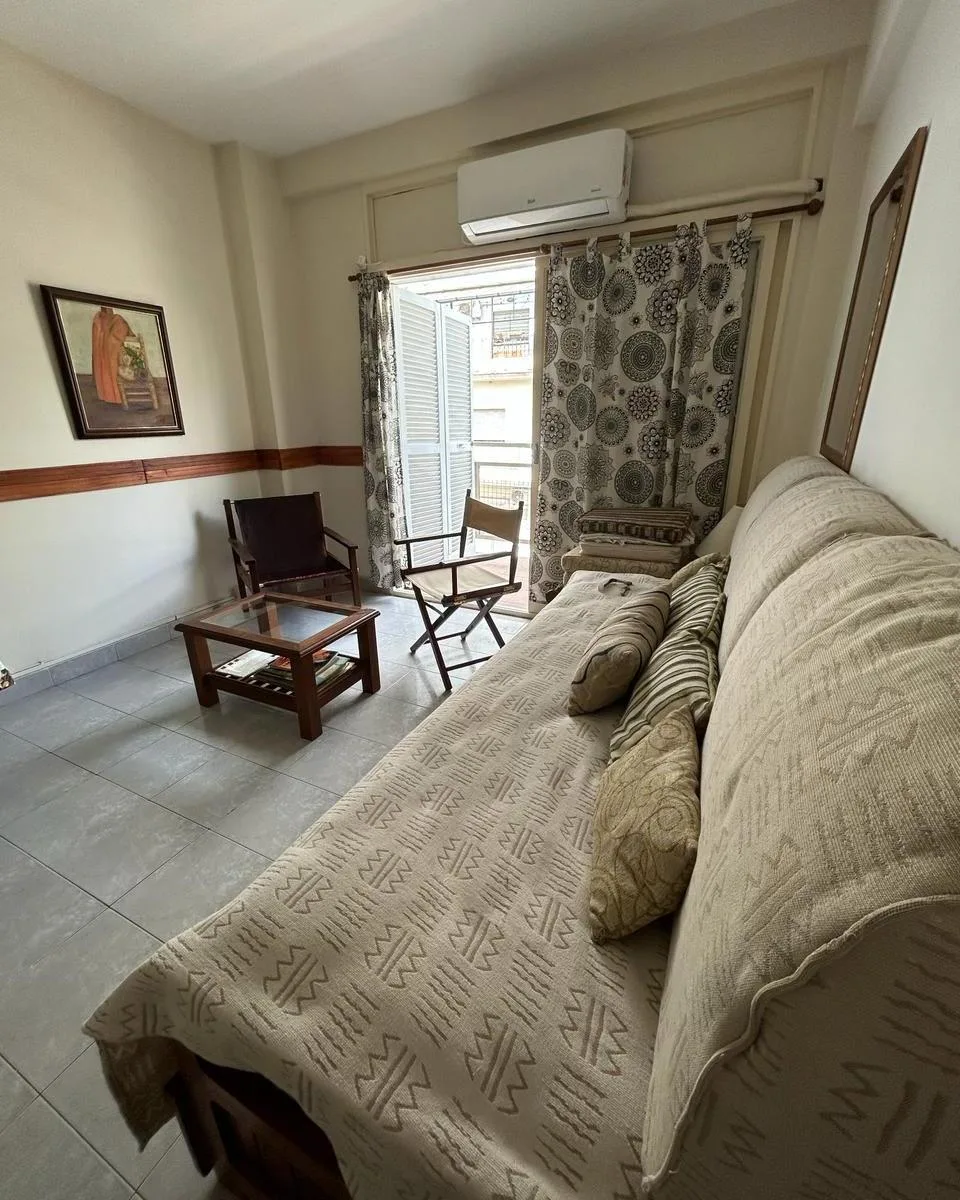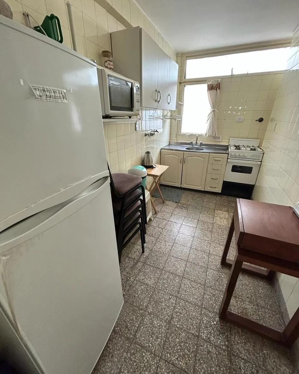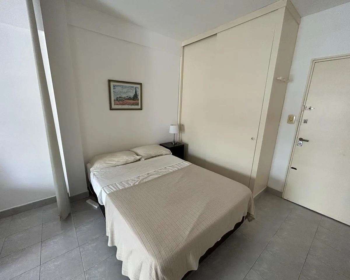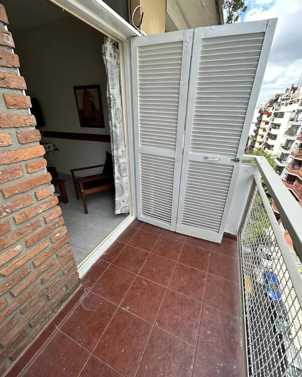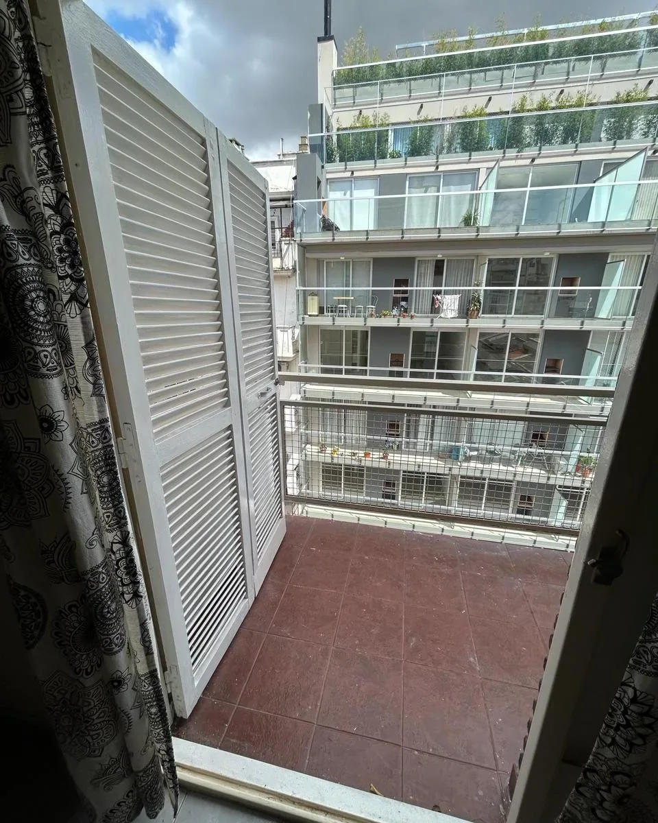 Studio apartment for temporary rent in Almagro with a front balcony. The unit is fully equipped, with a double bed and sofa bed, a large wardrobe, and a dining table for 4 with cable TV and internet. Separate kitchen includes a fridge with freezer, gas cooktop and microwave; bathroom has a shower. Covered area is 31.65 m², plus a 2.67 m² balcony; located near Subte Línea B, station Angel Gallardo, and close to Parque Centenario.