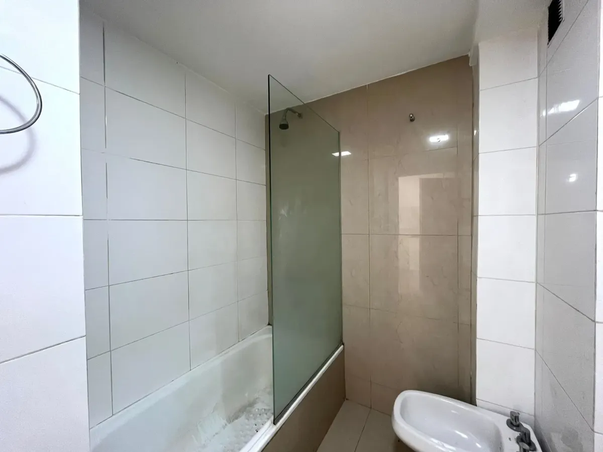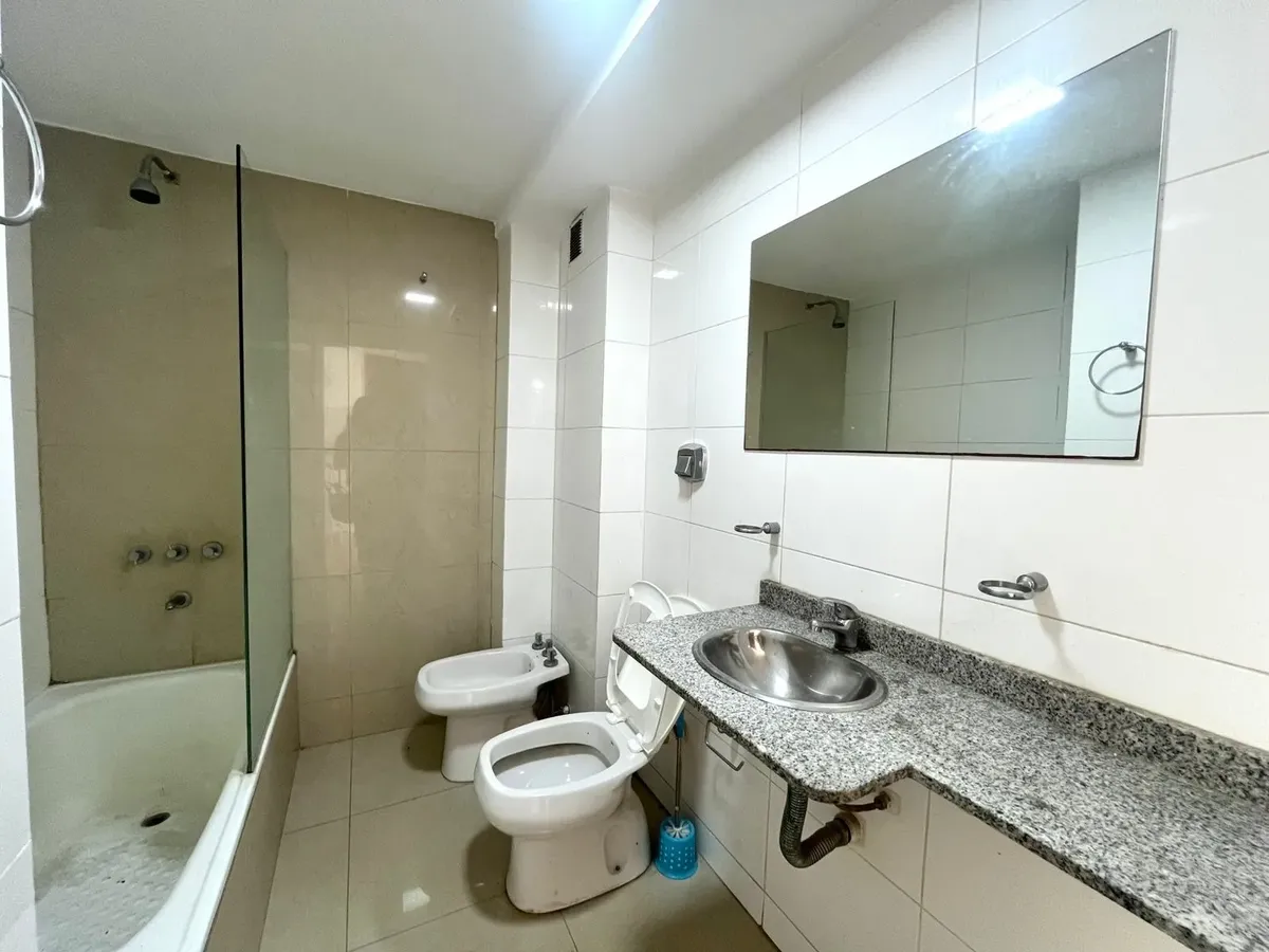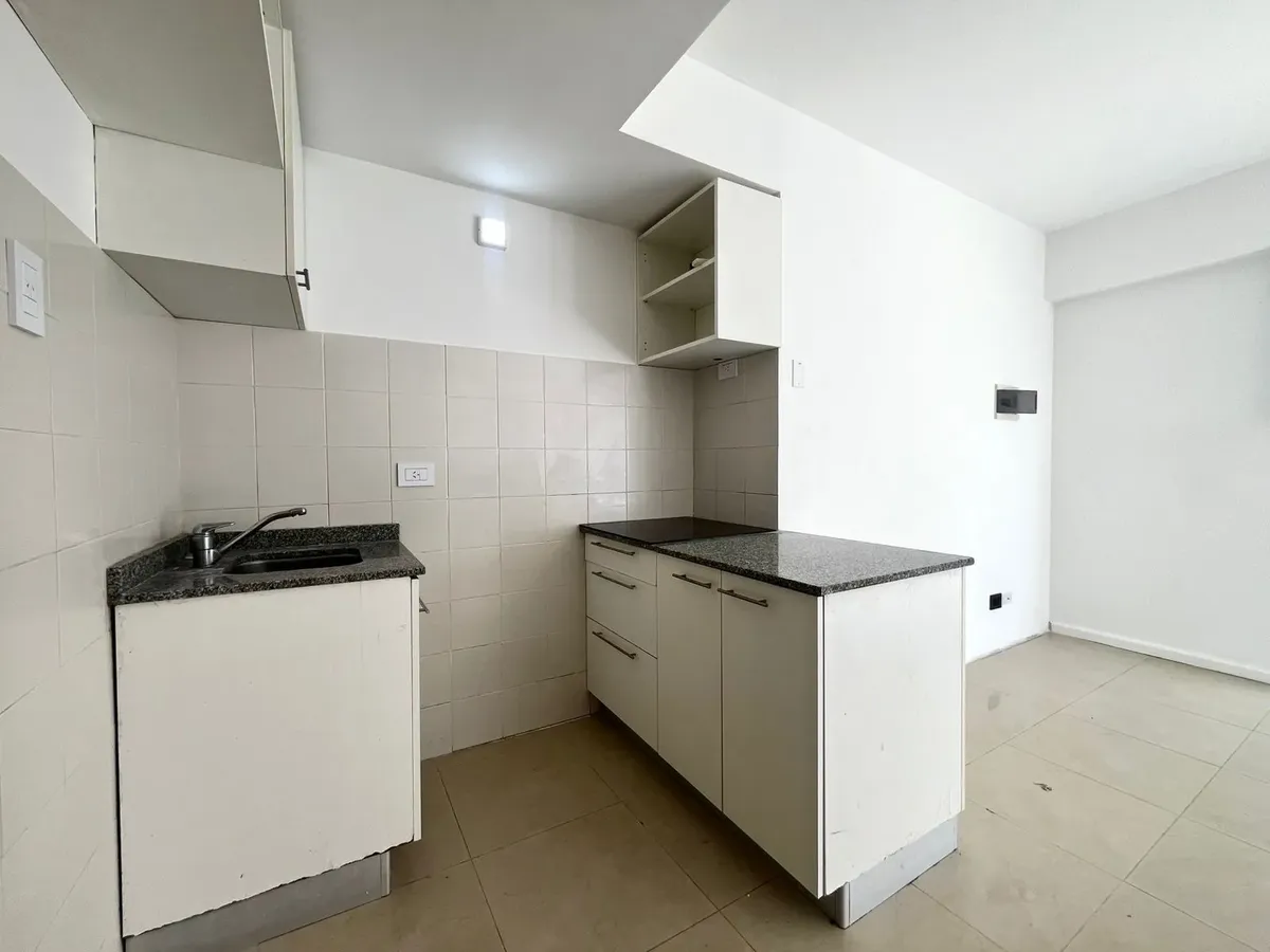Studio apartment with a front balcony. It includes a semi-integrated kitchen, a full bathroom with a bathtub, built-in wardrobe space, and a split air-conditioning unit (hot and cold). Hot water is provided by a boiler. Located on Sánchez de Bustamante 600 in Almagro.