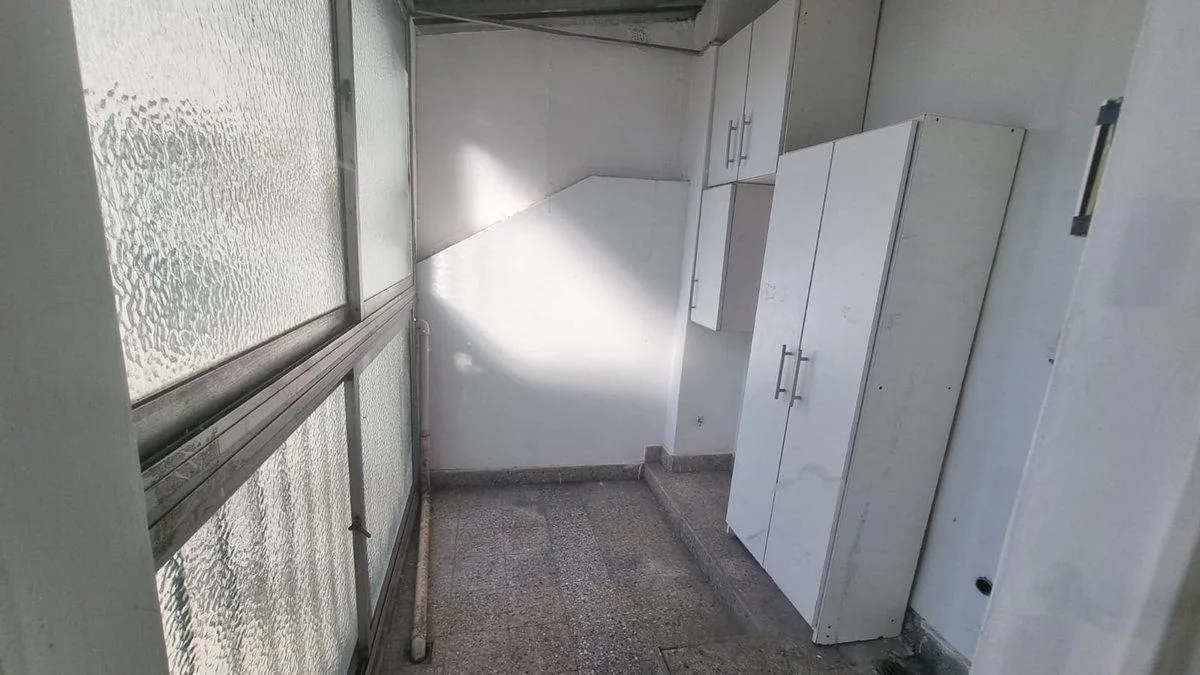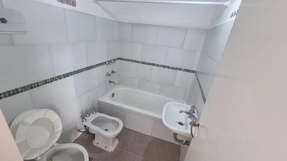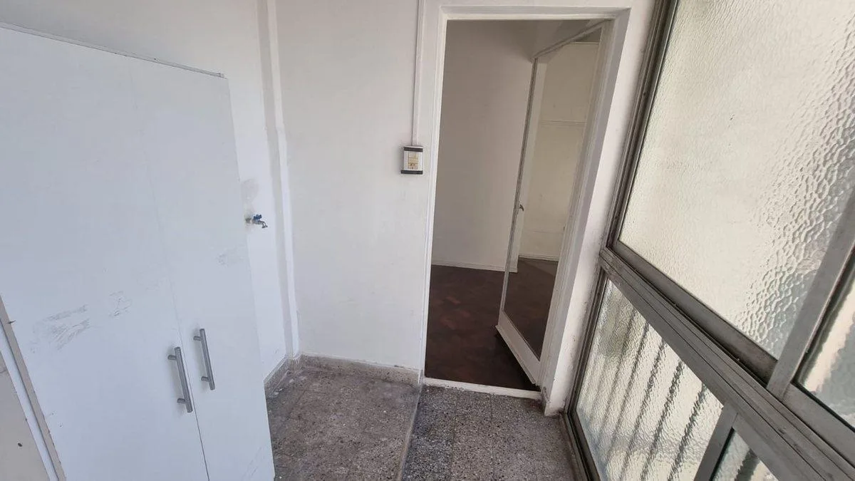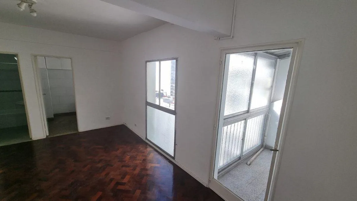 Studio apartment of 29.6 m² on the 9th floor of a nine-storey building in Almagro, street-facing on Castro Barros. The layout combines a kitchen, a full bathroom and an integrated laundry area within a single room. The unit is in very good condition and retains its original features.