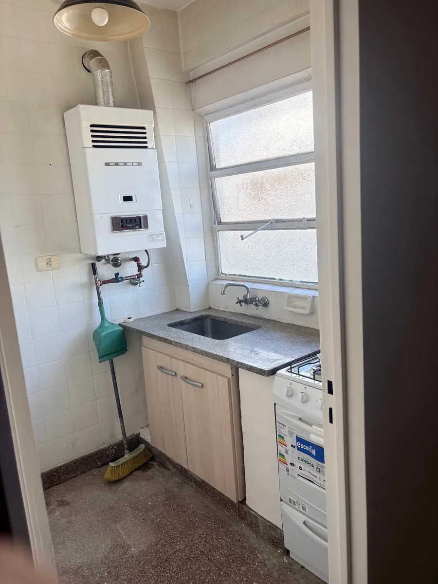 Studio apartment on the 7th floor, courtyard-facing (contrafrente). Separate kitchen. Building fees are low, and the property is about 20 metres from Av. Rivadavia and one block from the Subte. Entry requires a rental guarantee bond; the stated terms are ARS 450,000 paid in advance and ARS 450,000 as a deposit.