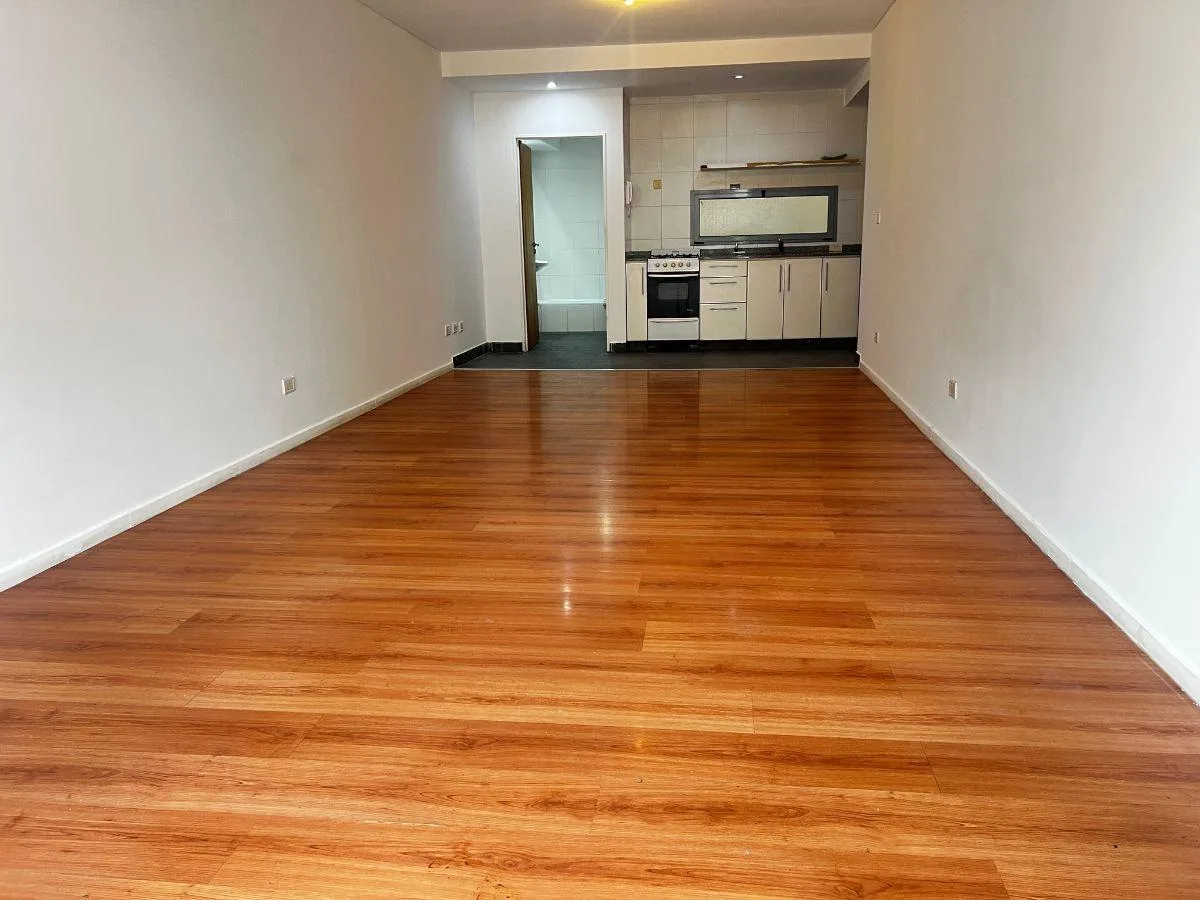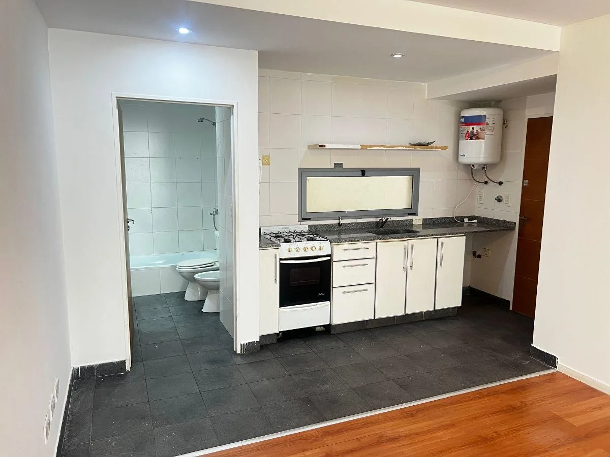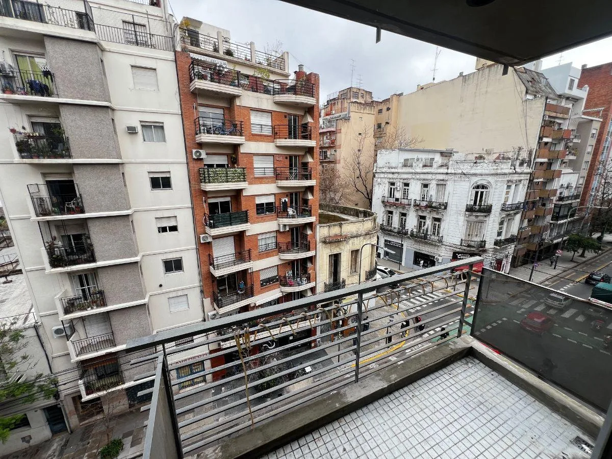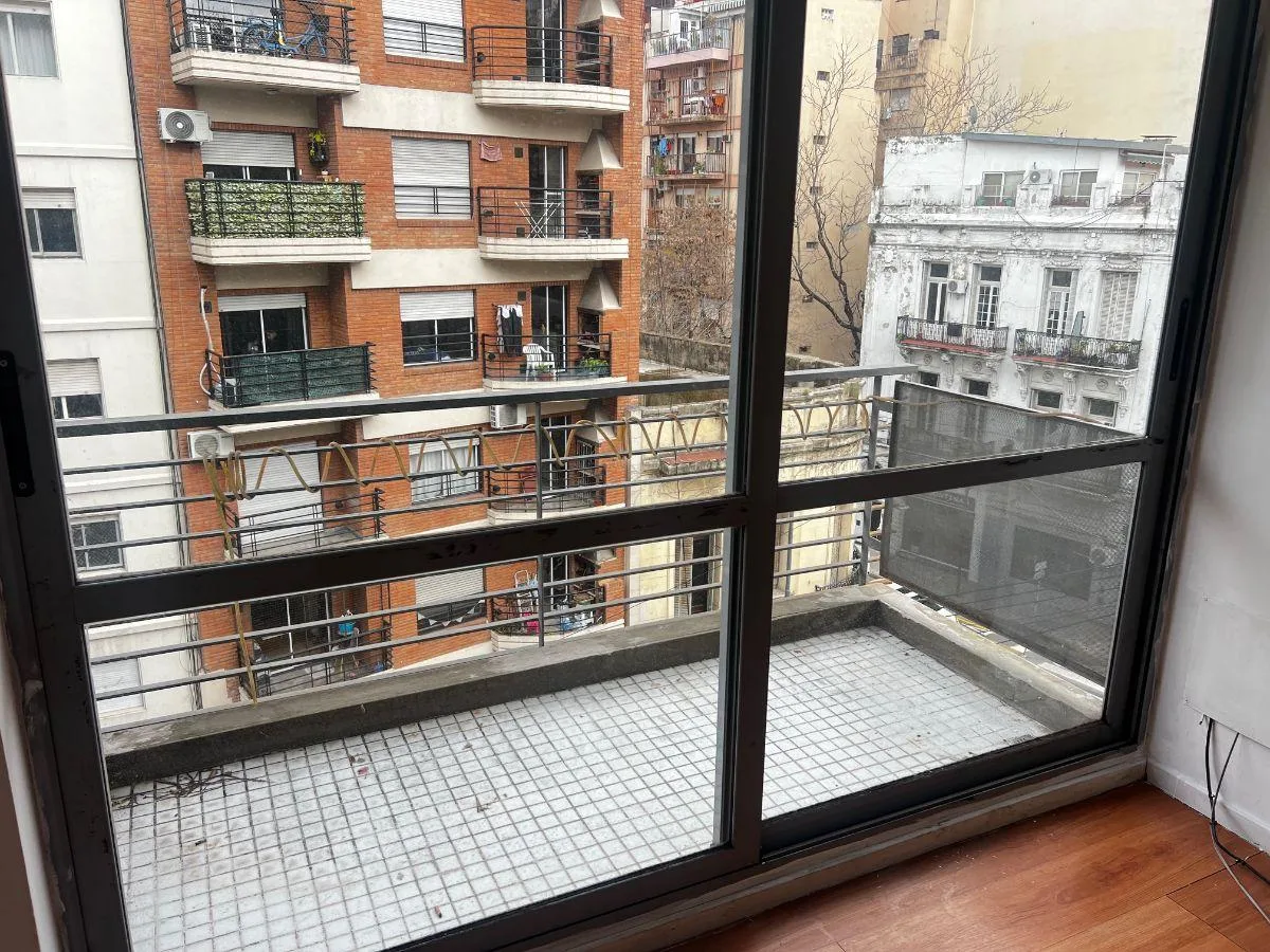 Studio apartment on the 3rd floor, street-facing with a balcony. Total area 39 m² (36 m² covered and 3 m² uncovered), with a kitchen area, connection for a washing machine, and a full bathroom. Building is 18 years old and has a communal room (SUM), grill area, and bicycle storage. Rent is ARS 500,000 plus building fees of ARS 125,000, with SUM and grill areas in the building; lease term is 2 years with updates every 4 months using the IPC index. Location: Perón 3400, about 2 blocks from Plaza A