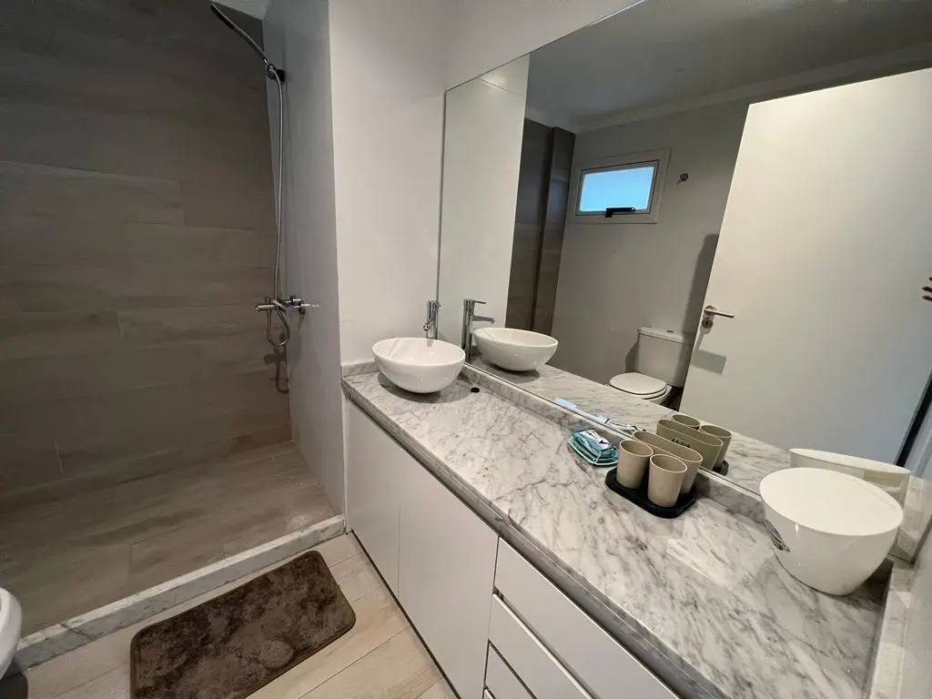 Furnished studio apartment in Almagro. 41.7 m² total, high floor, street-facing, with full bathroom and balcony. Includes split air conditioning (hot and cold), washer/dryer, fridge, built-in storage, beds, and WiFi service. Building has a doorman and is suitable for people with reduced mobility. Temporary rental is available from 3 nights up to 3 months, with renewal option; prices listed are ARS 45,000 per day and ARS 1,000,000 per month.