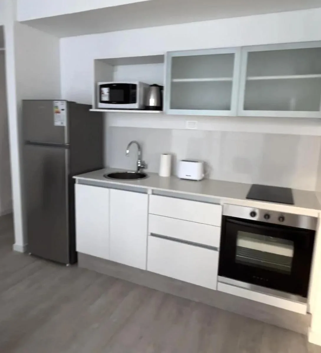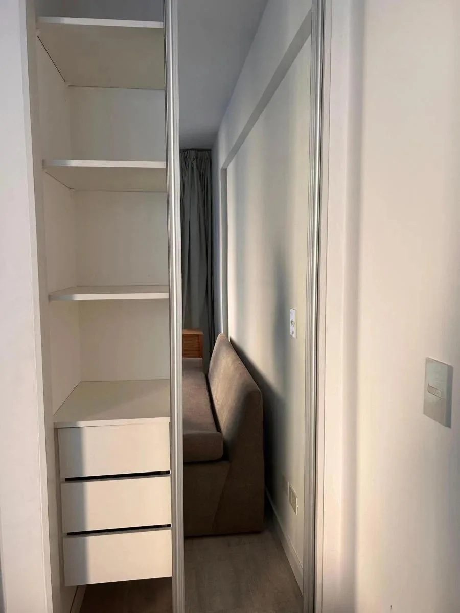 Studio apartment for rent on Av. Corrientes, between Bulnes and Mario Bravo, in Villa Crespo, Buenos Aires. Located on a high floor reached by elevator, street-facing with north orientation. Covered area is 32 m², total area is approximately 34 m²; the unit has an equipped kitchen with upper and lower cabinets, a main room with built-in storage, and a full bathroom. Building fees are approximately $250,000 as of 22/12/2025.