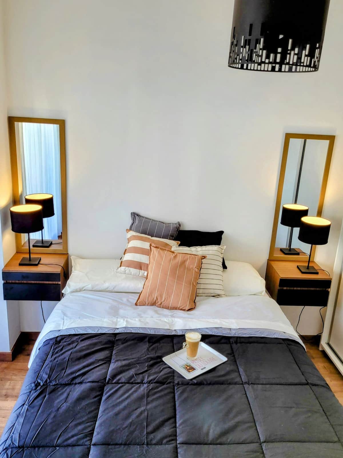 Large studio apartment with 2 bathrooms, a double bed, a dining table and a double sofa bed. There is a balcony with a wide view. The property is near Hospital Italiano and UTN, with a subway station about 300 metres away.