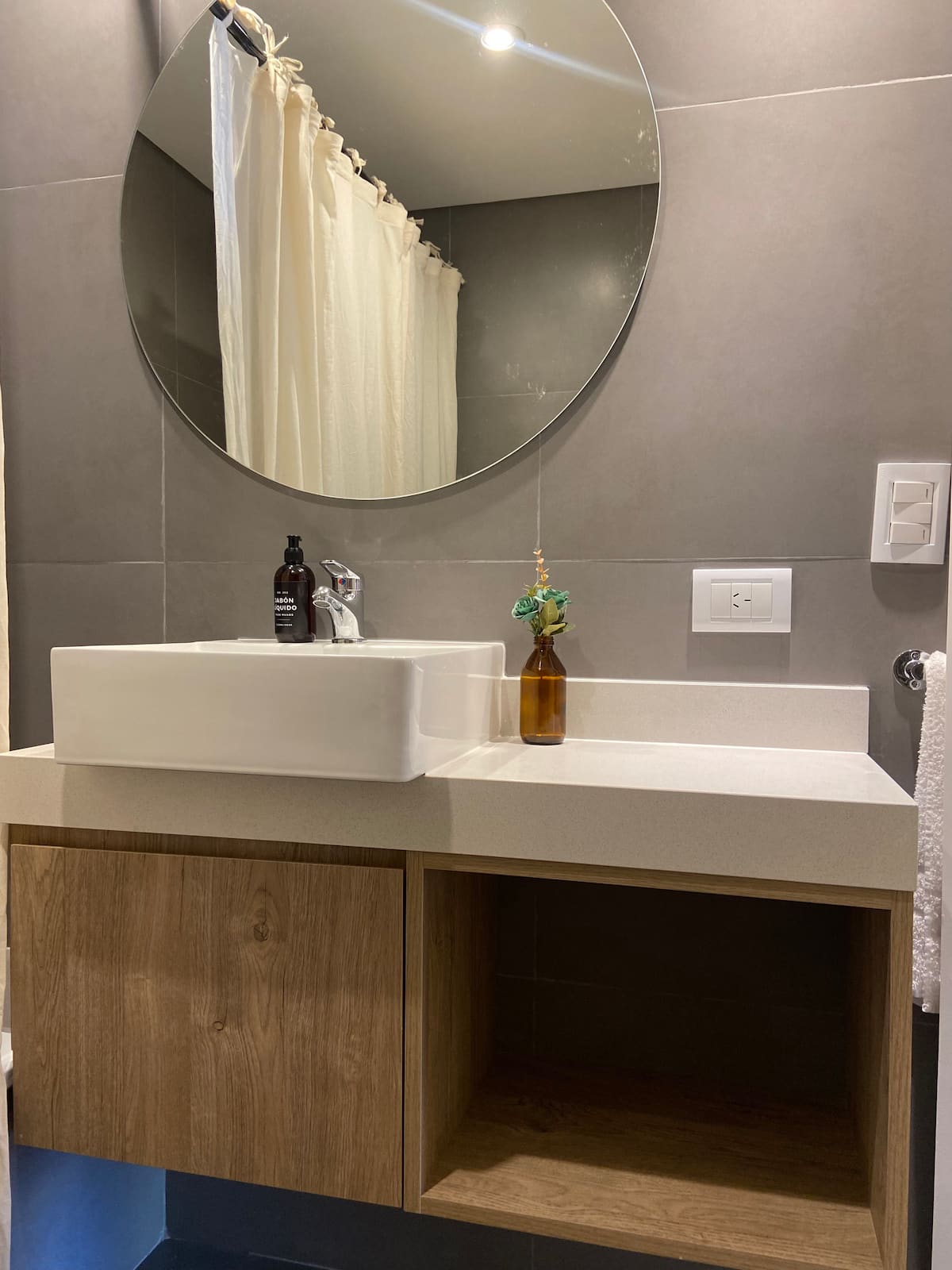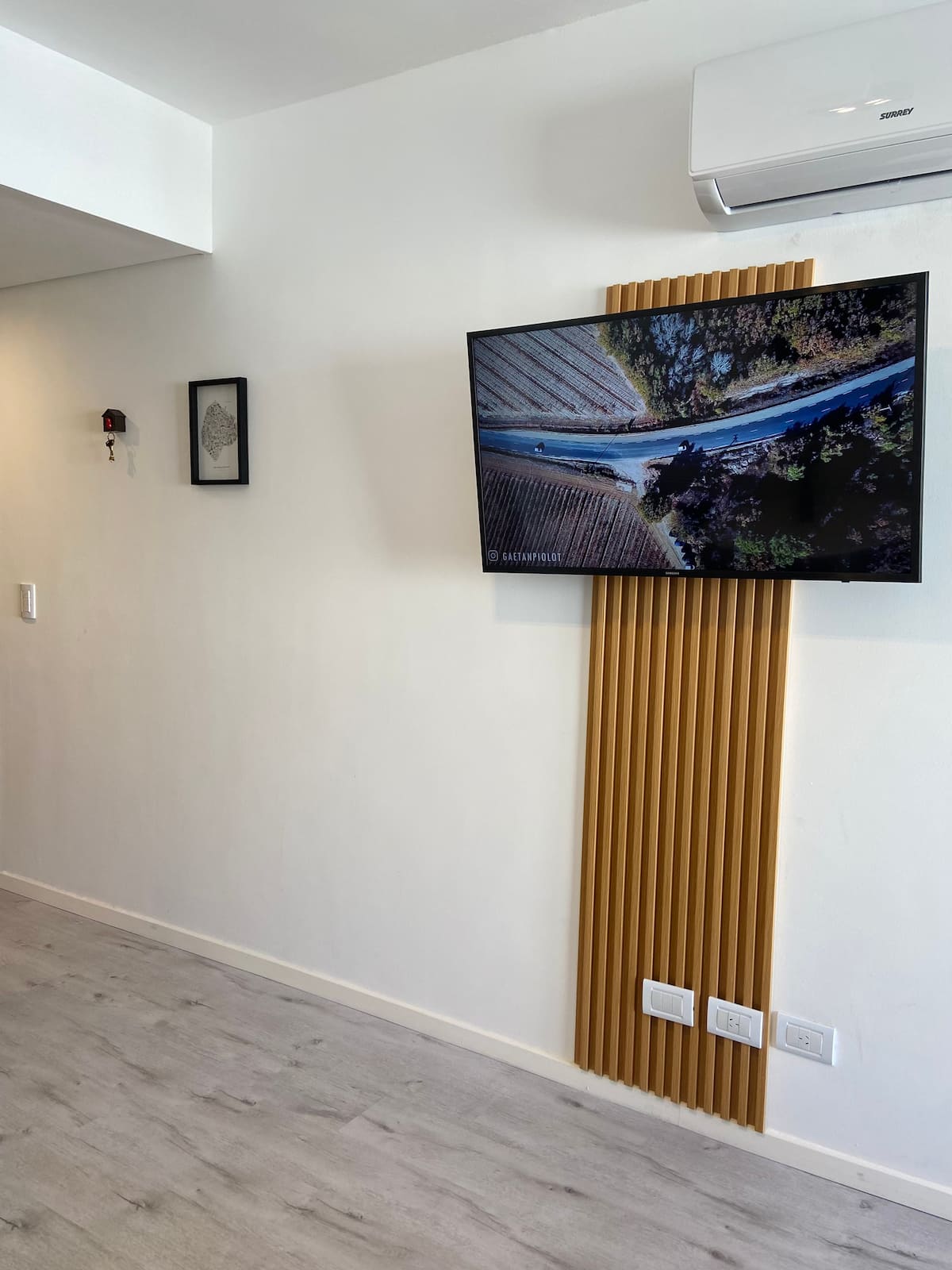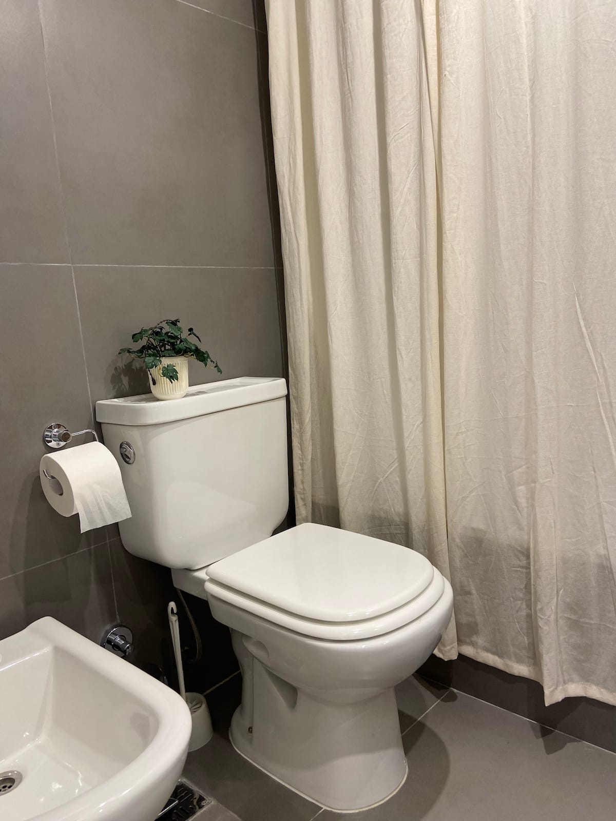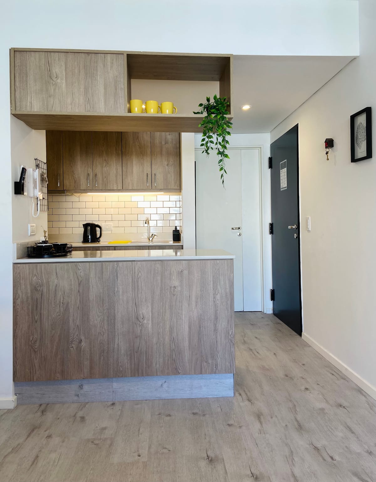 Modern studio apartment. The listing describes a large, bright unit with all necessary conditions for a stay. The surrounding area is described as having bars, theatres, shopping and tango dance venues.