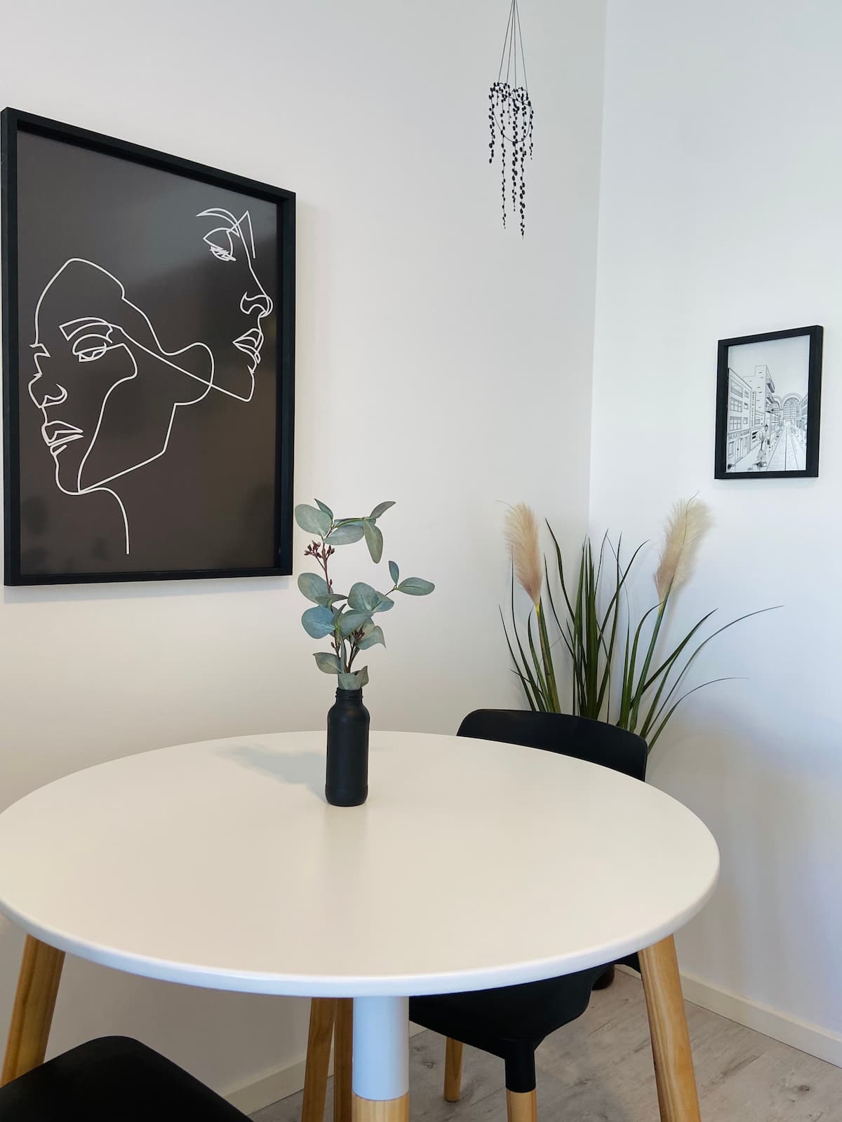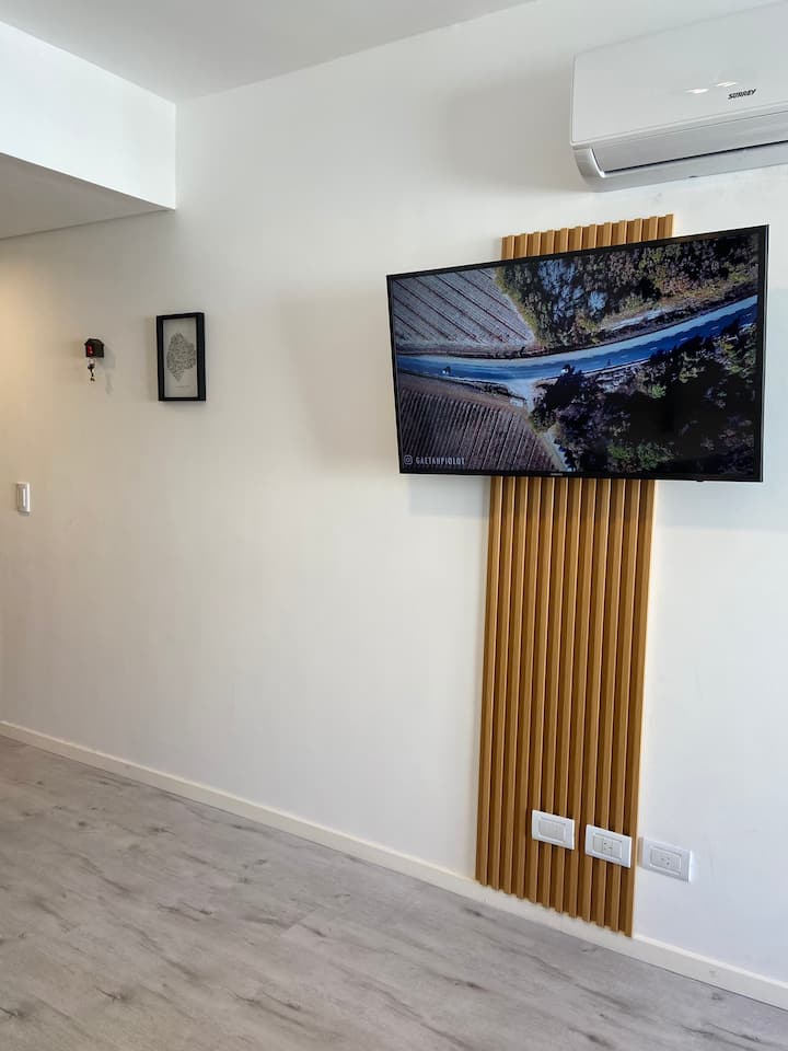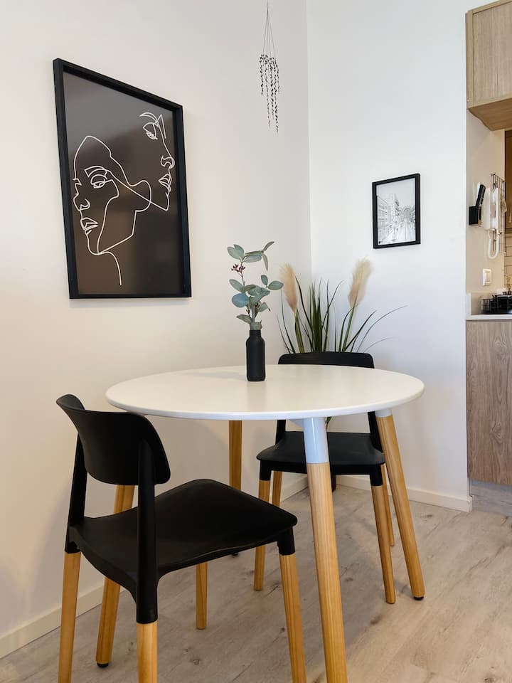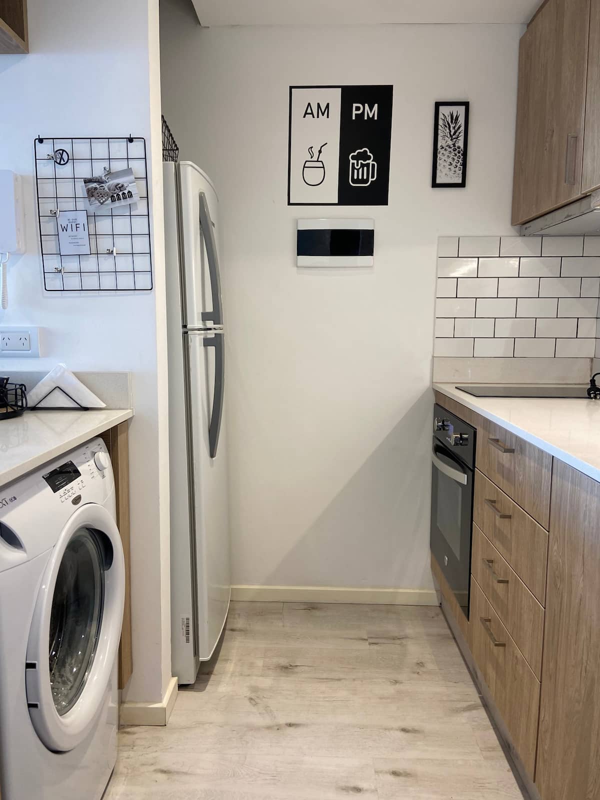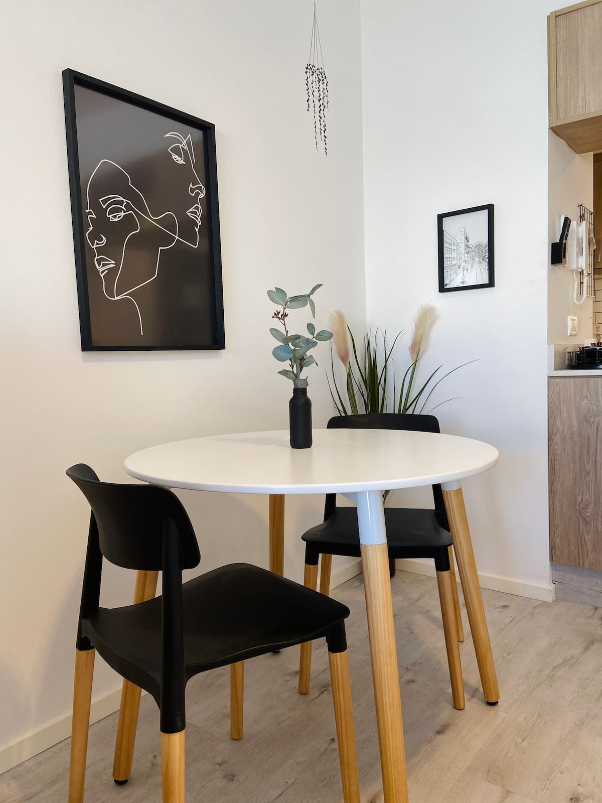 Modern studio apartment. The listing describes a large, bright unit with all necessary conditions for a stay. The surrounding area is described as having bars, theatres, shopping and tango dance venues.