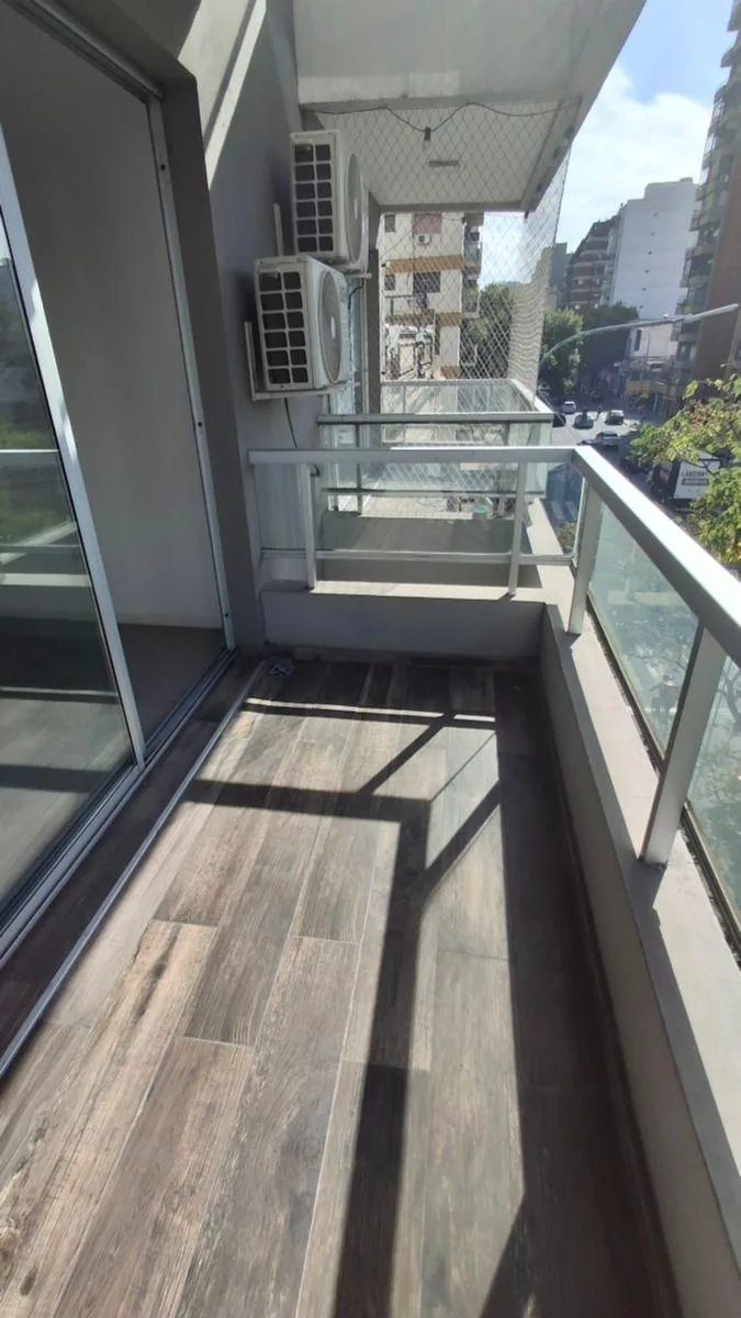 Studio apartment with a front balcony/terrace in Almagro. Integrated kitchen and a full bathroom. Building amenities include a communal room, pool, covered grill area and laundry.