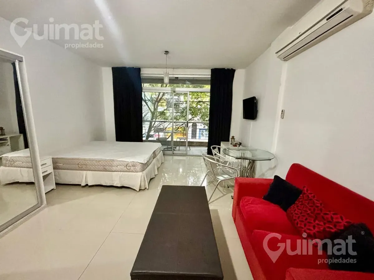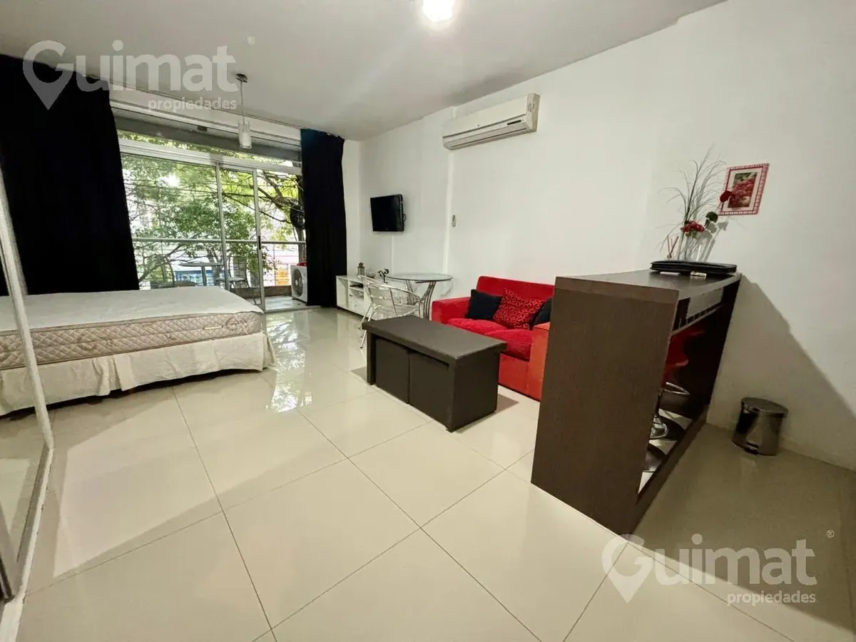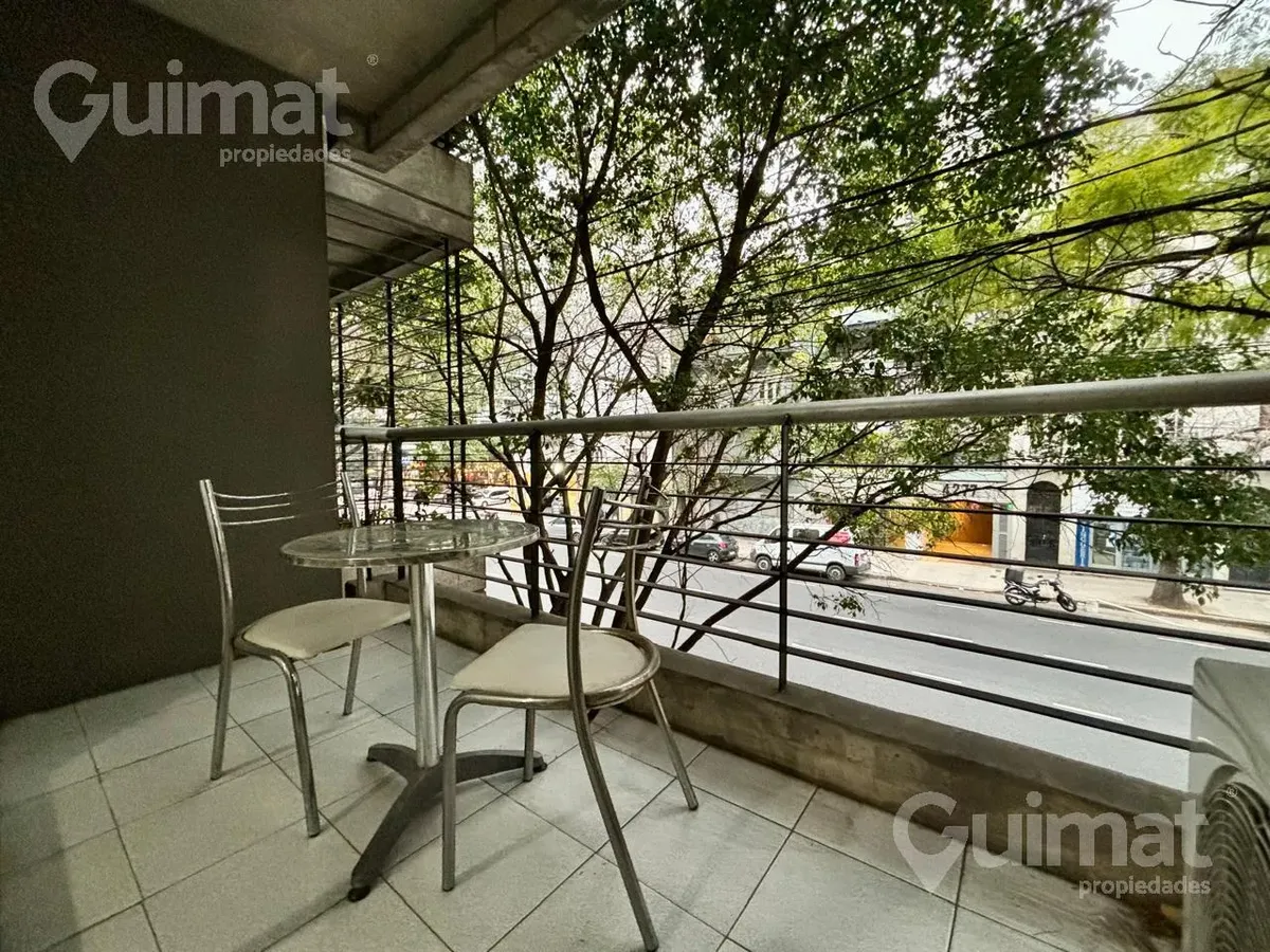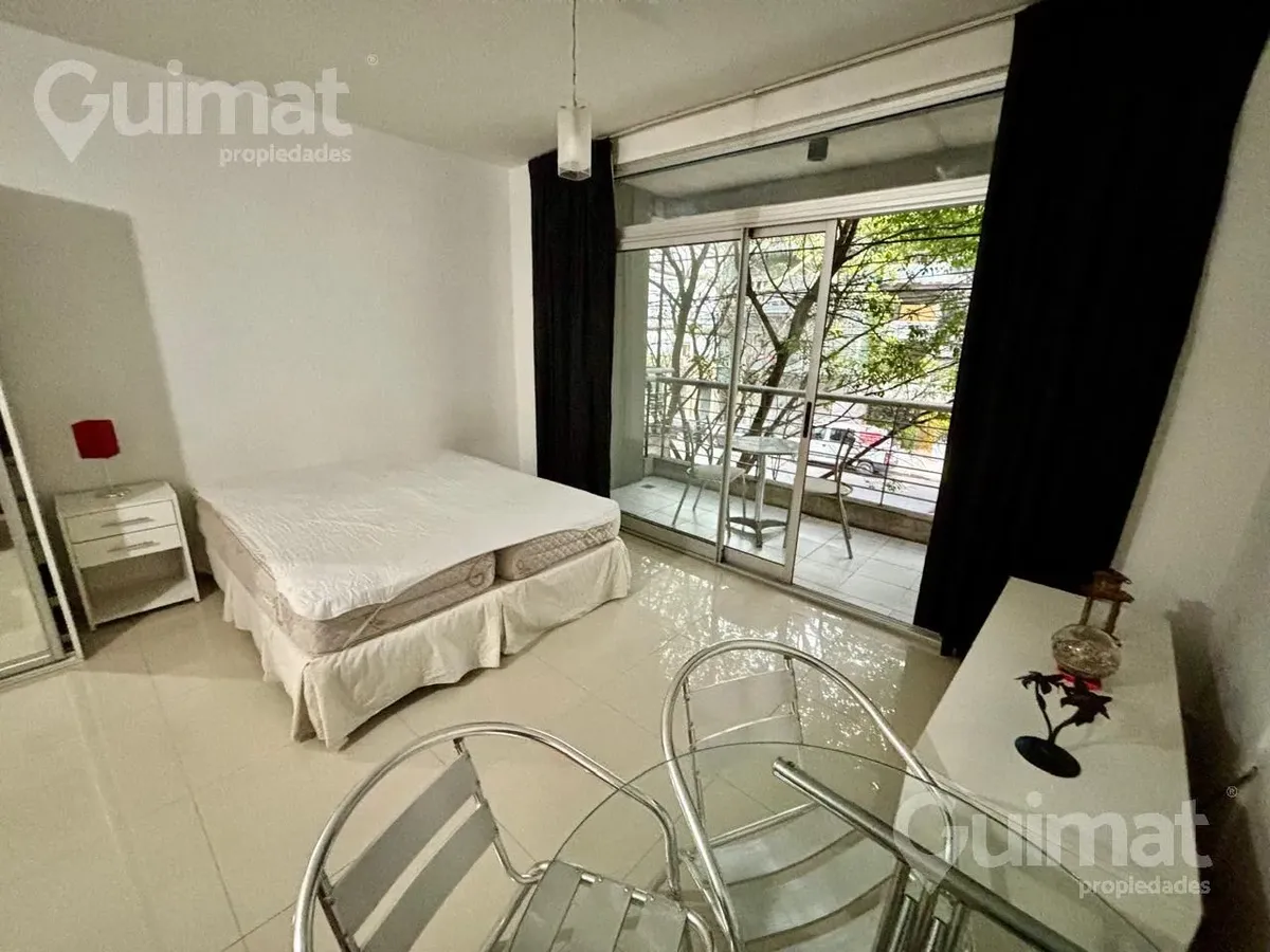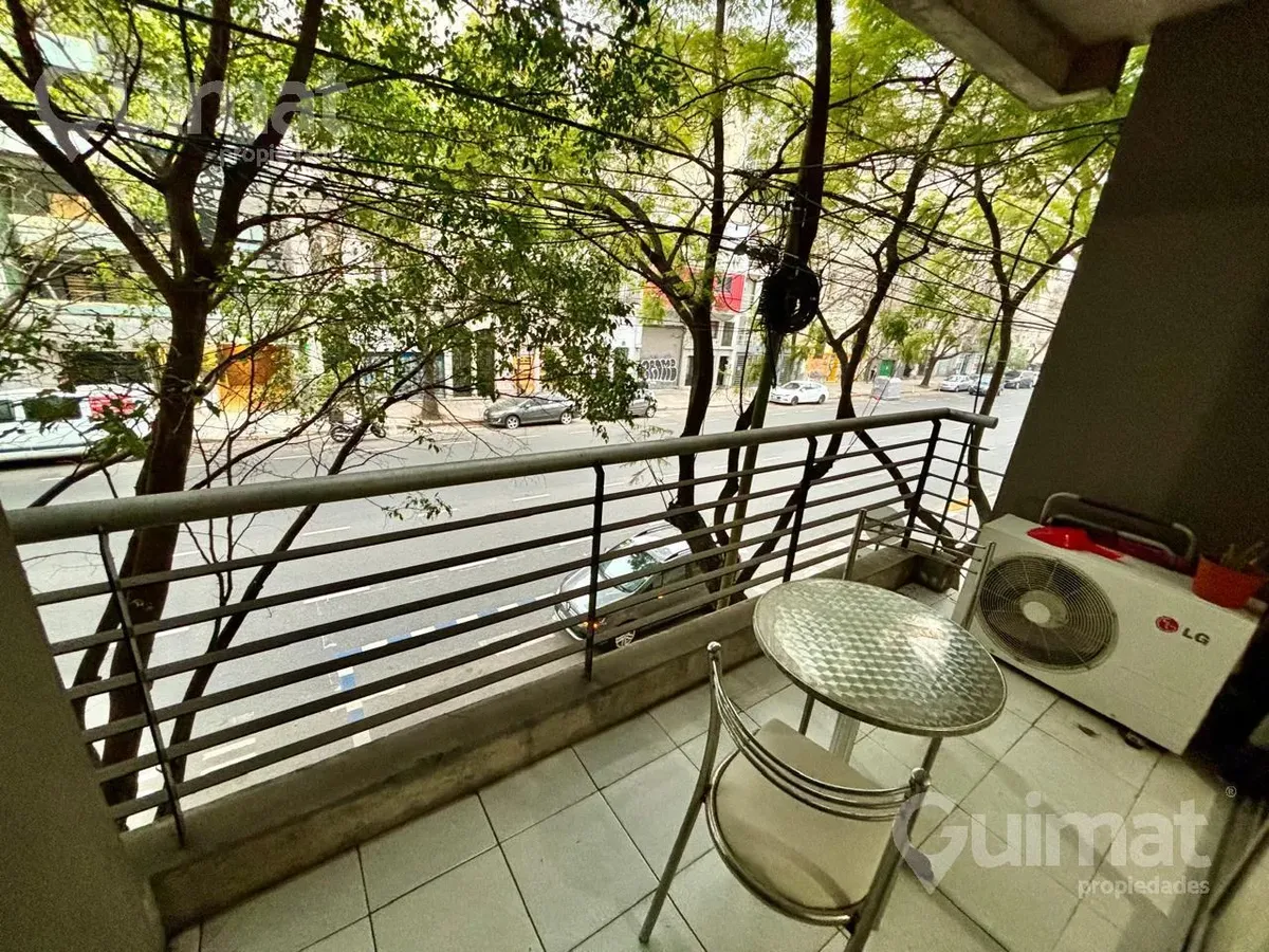 Furnished studio apartment in Almagro with a front balcony. Rental is for up to 2 people. Rent is ARS 650,000 per month, including water and ABL; electricity, internet and building fees are additional, with expensas of about ARS 150,000. The building has a laundry area, pool and communal room (SUM). Public transport includes colectivos 19, 36, 90, 92, 99, 106, 109, 127, 140, 151, 160, 168.